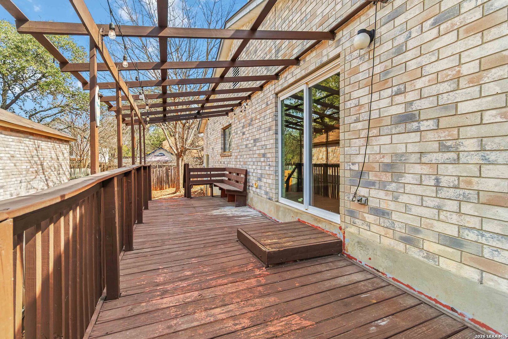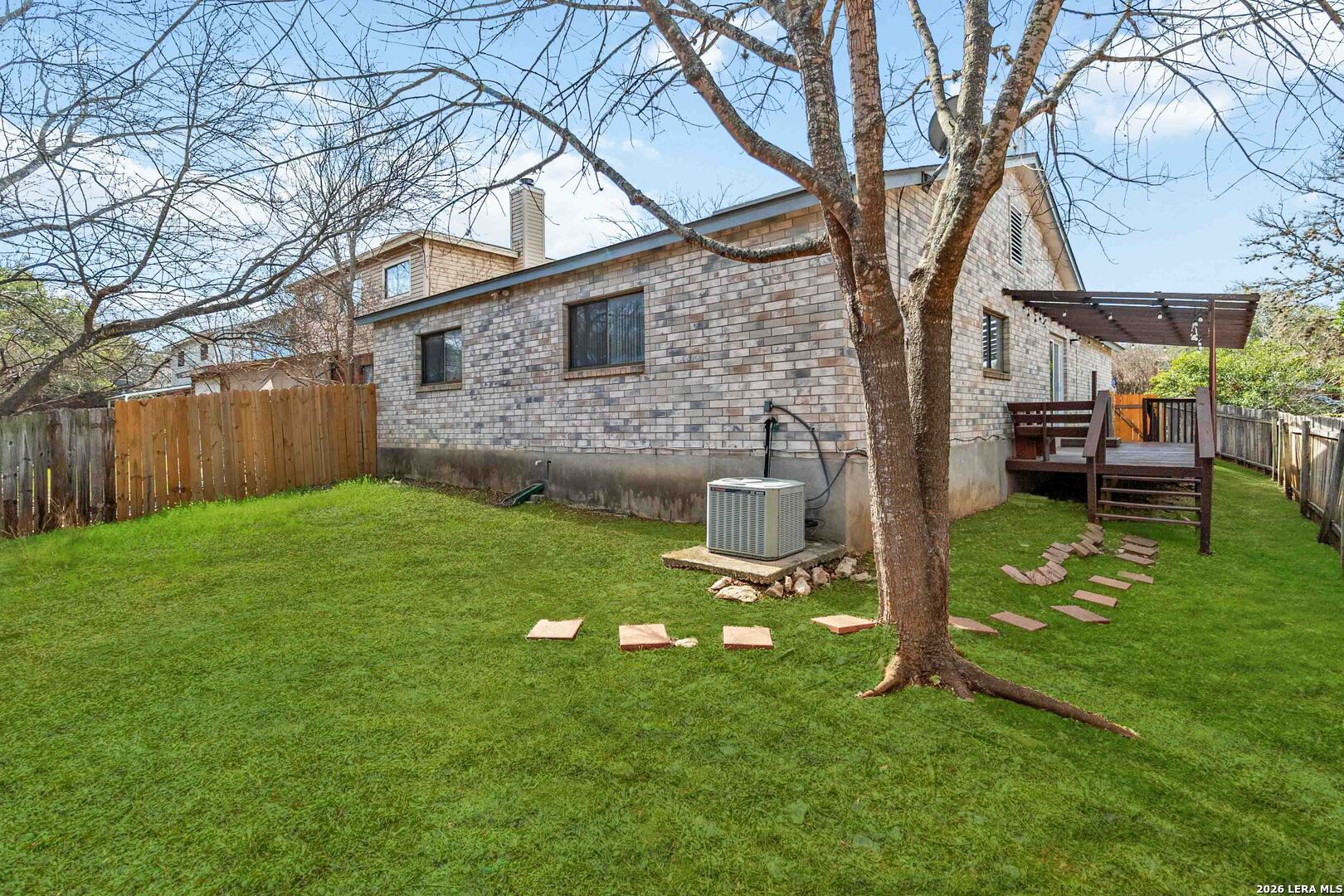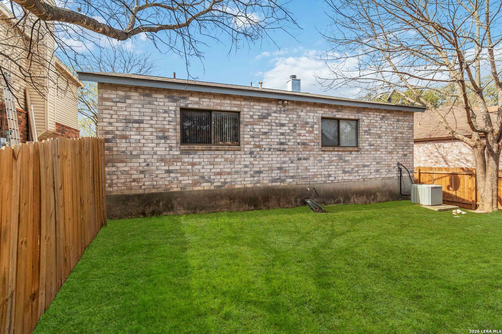 Welcome to this charming 3-bedroom, 2-bath home nestled in the desirable Hunter's Chase neighborhood in Central San Antonio. Ideally located just minutes from major highways, this home offers both comfort and convenience in one perfect package. Designed with ease of living in mind, this single-story home features a functional layout with no steps, making it an excellent option for first-time buyers, those looking to downsize, or anyone seeking one-level living. Enjoy direct access to the neighborhood park located right across the street making it perfect for morning walks, playtime, or simply enjoying the outdoors. The backyard offers a spacious setting complete with a deck ideal for entertaining, plus plenty of room for pets, gardening, or relaxing. Whether you're starting a new chapter or simplifying your lifestyle, this home offers the perfect blend of location and comfort! Located minutes from the highways, entertainment, shopping and more! Schedule your showing today!