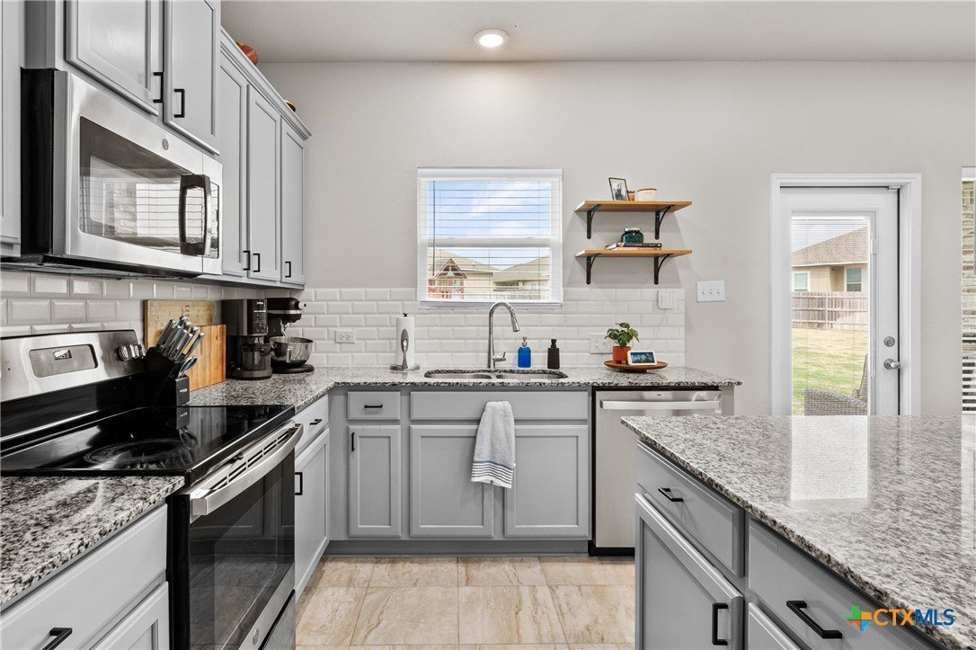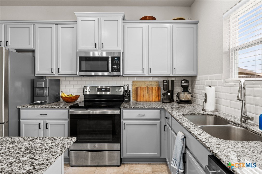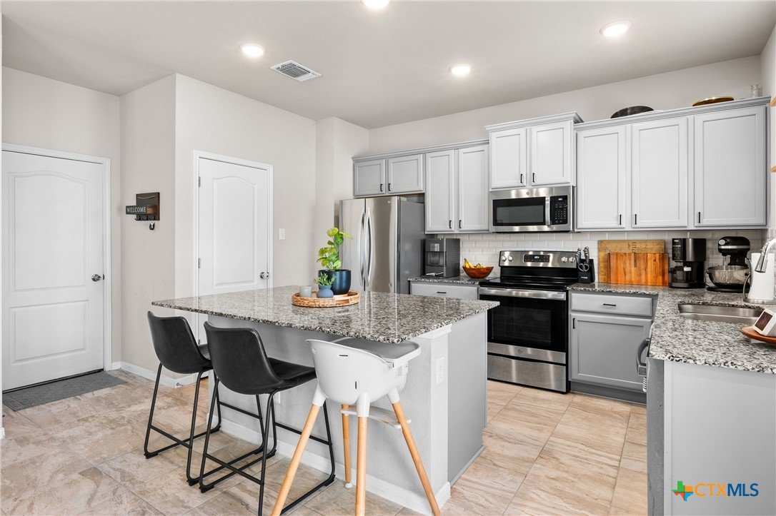 0.3 mi to Crossroads Park & pickleball courts • Near Pepper Creek Trail, Lake Belton Middle School & Tarver Elementary • Cul-de-sac lot with oversized backyard Built in 2022, this 4-bedroom, 2.5-bath home sits on a cul-de-sac lot in West Temple with convenient proximity to Crossroads Park (approx. 0.3 mi), pickleball courts, Pepper Creek Trail, Lake Belton Middle School, and Tarver Elementary. The oversized backyard offers extended depth with space for a future pool, sports setup, or outdoor entertaining. Covered front and back porches provide additional outdoor living areas. The interior features an open living, dining, and kitchen layout designed for everyday use and gatherings, with natural light throughout and direct access to the backyard. The kitchen includes granite countertops, a large center island, and oven and microwave appliances. Flooring includes tile in main areas and carpet in bedrooms and upstairs spaces. All four bedrooms are located on the second level, with a convenient half bath on the main floor for guests. Additional features include a 2-car garage and newer construction completed in 2022. Located near the West Adams Avenue corridor, it is 6.3 miles to Belton Lake, 6.2 miles to HEB, .5 miles to dining, and daily retail. Combination of location, outdoor space, and layout supports a range of living and entertaining needs.