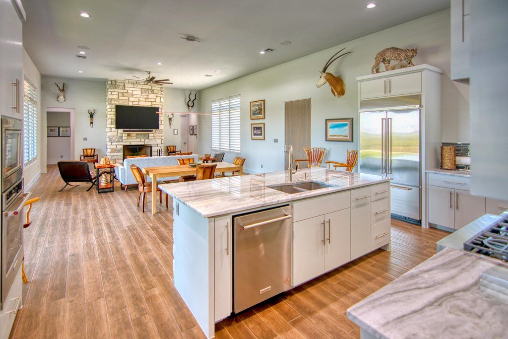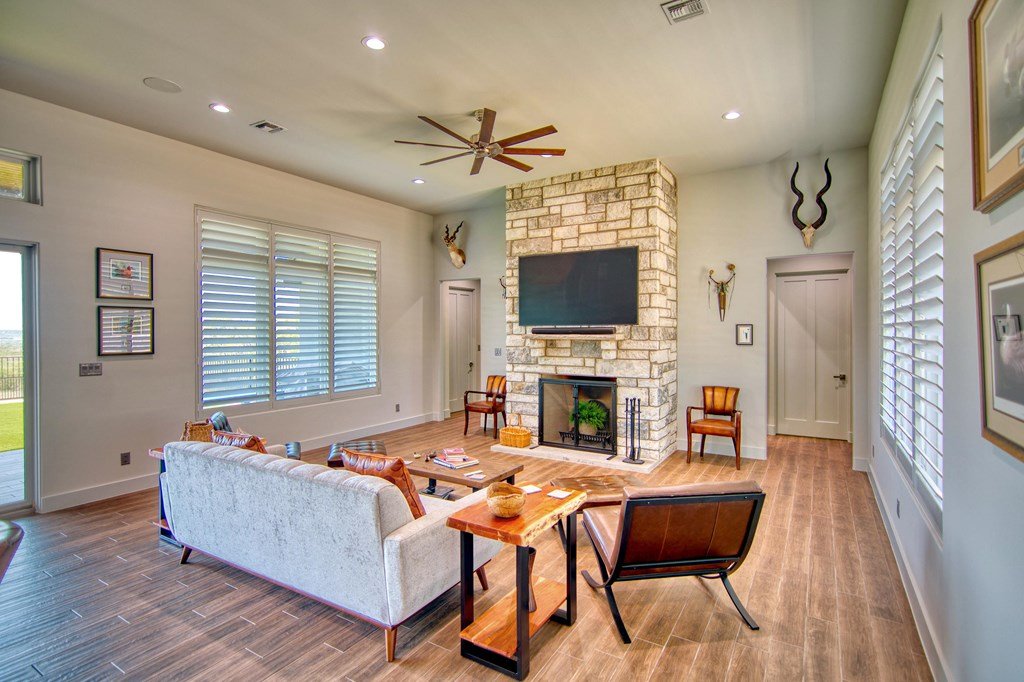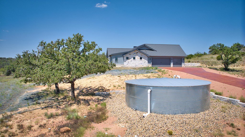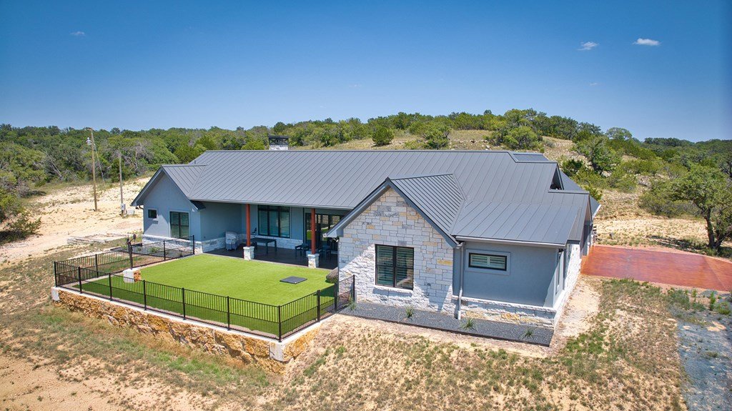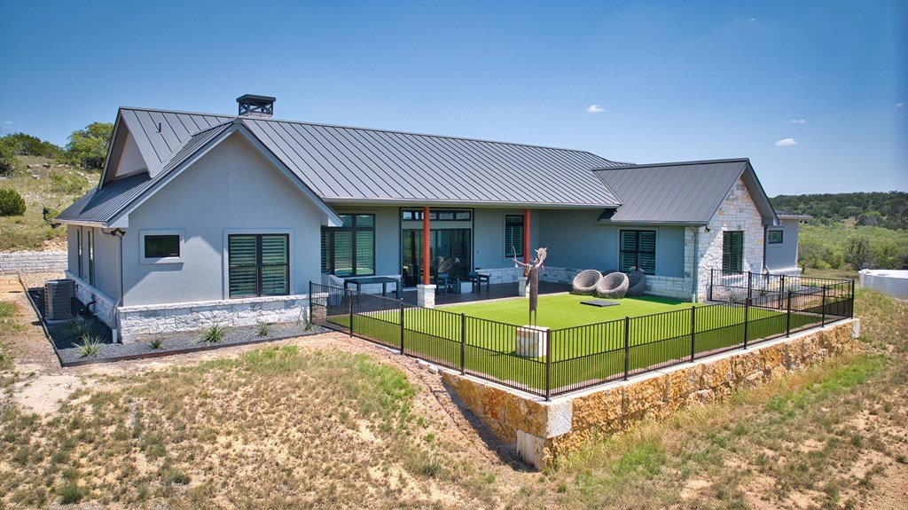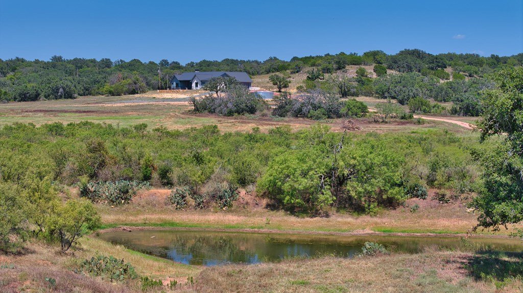 Welcome to Mason Mountain Ranch, an exquisite retreat at 7487 US Highway 87 N, Mason, TX. Nestled in the rolling hills of Mason Mountain, this newly built, move-in ready home offers breathtaking panoramic views of distant hills and lowlands. Protected by a unique Worrell Shaman sculpture, the 4-bedroom, 3-bath "sealed envelope" home is a masterpiece of design, featuring a Horseshoe Bay-inspired open-concept layout. The heart of the home boasts a cozy wood-burning fireplace and west-facing floor-to-ceiling windows that flood the space with natural light, seamlessly blending indoor and outdoor living. The kitchen is a chef's dream featuring state of the art appliances and a butler's pantry. Step outside to the fenced area, where you'll find artificial turf and a custom inset fire pit, the perfect spot for stargazing and enjoying the serenity of the hill country. The front yard features low maintenance xeriscaping that blends with the natural habitat. Set on approximately 124 acres, the ranch is adorned with oak, mesquite, and some cedar trees, creating a perfect environment for whitetail deer, turkey, and other native wildlife.