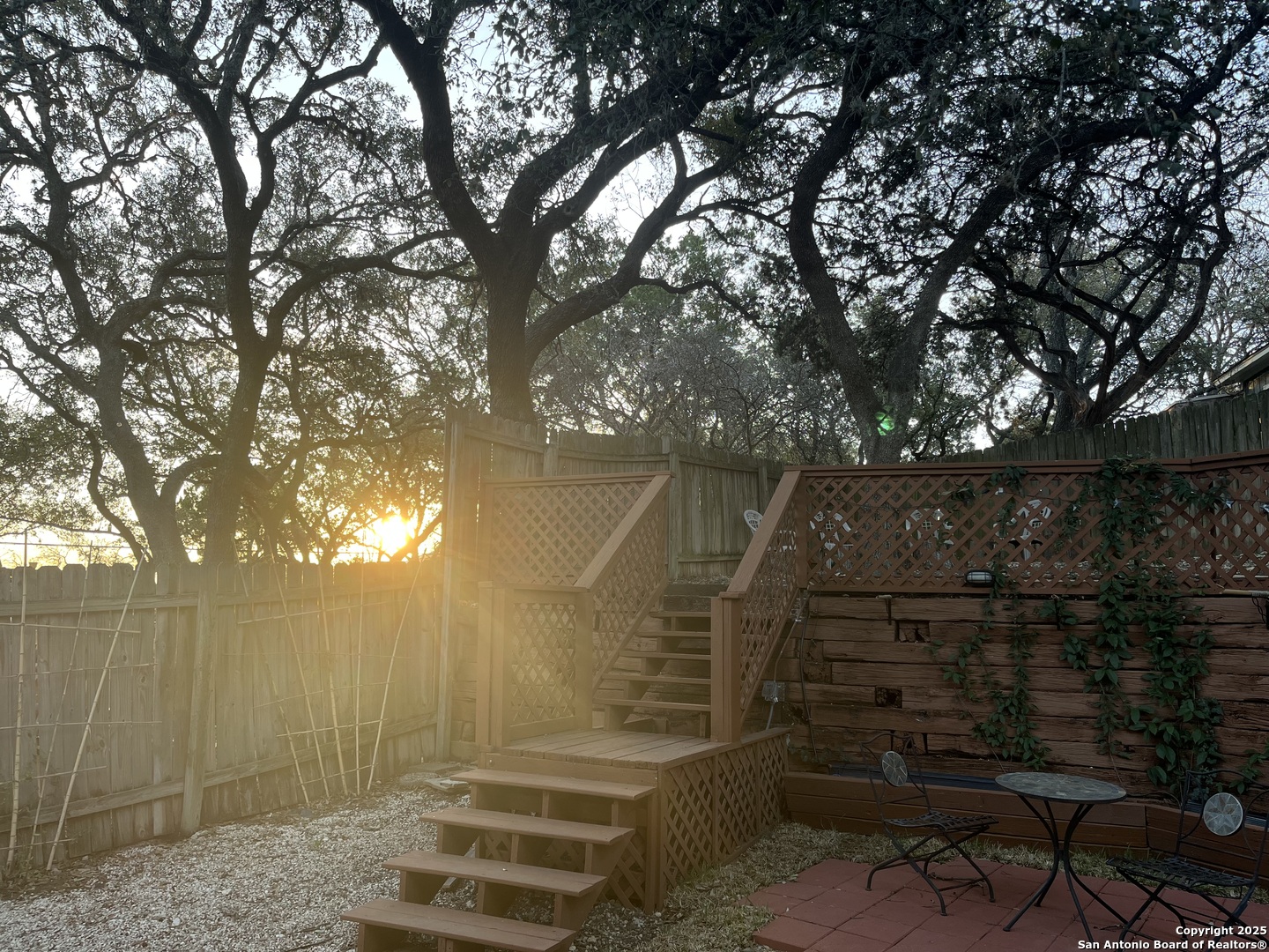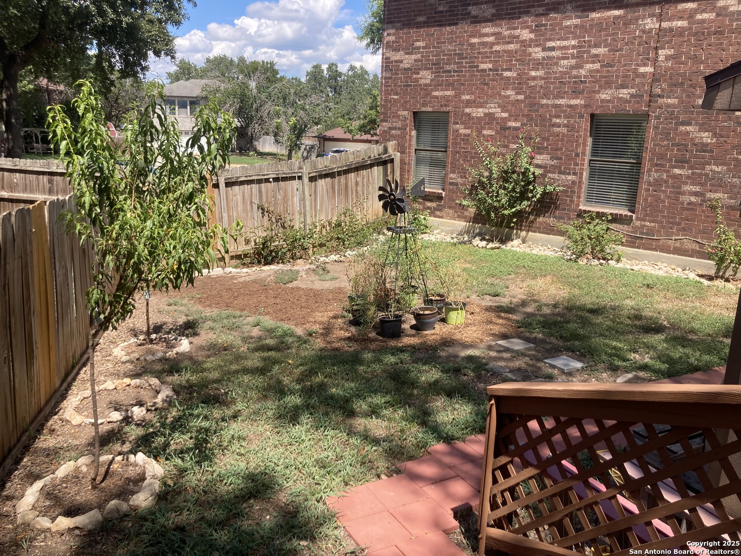 TRANQUIL AND BEAUTIFUL HOUSE, WITH 4 SIDES BRICK, AND LARGE BACKYARD, WITH GARDEN PLANTS, WATERFALL (See VIDEO), FRUIT TREES AND FLOWERS! Watch the sunrise from your kitchen window and patio .. enjoy the shady gardens and waterfall all day ... watch the sunset color the sky from living room windows and side garden. Soon, the sunflowers will rise over 6 ft tall by the side fence & the vines will bloom! Inside, a HUGE PANTRY and BUILT-IN GARAGE STORAGE (extra high garage ceiling), and LARGE MST BDRM CLOSET, will keep you organized. Your EXPANSIVE KITCHEN that flows into the OPEN FEEL LIVING/DINING area will give you so much space for gatherings and parties. The MANY WINDOWS downstairs gives you a view in every direction, so you feel a part of the outdoors and can see your trees and plants! Much recent renovation has been done on walls, plumbing, and fixtures. All carpeting is gone and replaced with NEW WOOD LAMINATE FLOORING! There is a VOLUNTARY HOA, that gives you a wonderful POOL that brings together many neighborhood friends, with a clubhouse, PLAYGROUND and BASKETBALL COURT. Also, you can access the MILES OF BIKING/NATURE TRAILS through the entrance on Chisom Creek. The NEW HEB is SO CLOSE, just a few minutes' walk. The house also features custom BACKYARD LIGHTING, a SECURITY SYSTEM, and GOOGLE FIBER (we can leave you the modem/routers). Make sure to see the waterfall video.