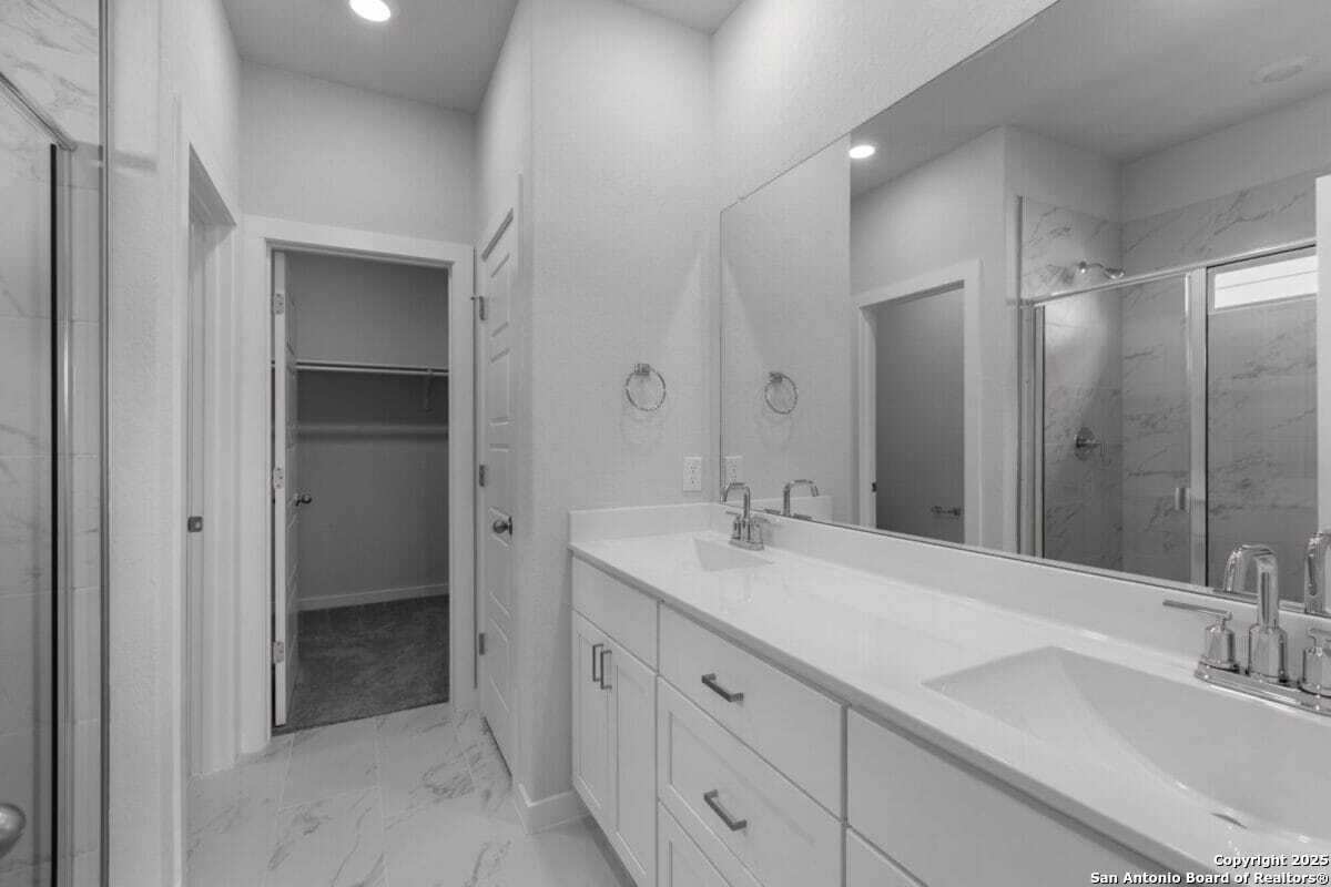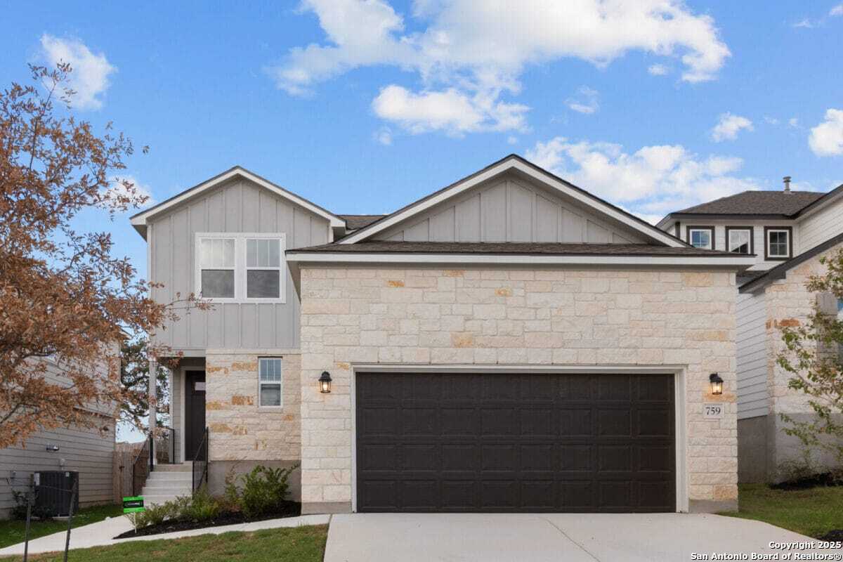 Excellent location close to Lackland. Thoughtful Design: This floorplan is crafted for both comfort and convenience. The grand foyer flows effortlessly into the heart of the home, where natural light brightens the spacious kitchen, seamlessly connected to the living room. The first floor also features the primary suite with convenient access to the laundry room, along with a versatile bonus room that can easily transform into a study, playroom, or guest bedroom. Innovative Lifestyle Options: This home is filled with premium features designed to elevate your lifestyle; the kitchen is equipped with gas appliances, the air-conditioned garage boasts sleek epoxied floors, and upstairs, a flexible loft perfect for a home office, entertainment space, or a kid friendly play zone. Luxurious Owner's Retreat: The primary bath is a luxurious retreat, complete with a walk-in shower, dual sinks with ample counter space, and a spacious walk-in closet offering custom built-ins for optimal organization. Schedule a tour to visit 759 Fort Leonard, nestled in the dynamic community of Weston Oaks, in Far Northwest San Antonio, TX, with easy access to top-rated North Side ISD schools, Lackland AFB, shopping, and entertainment! VA Buyers $1 earnest money & NO Closing Costs.