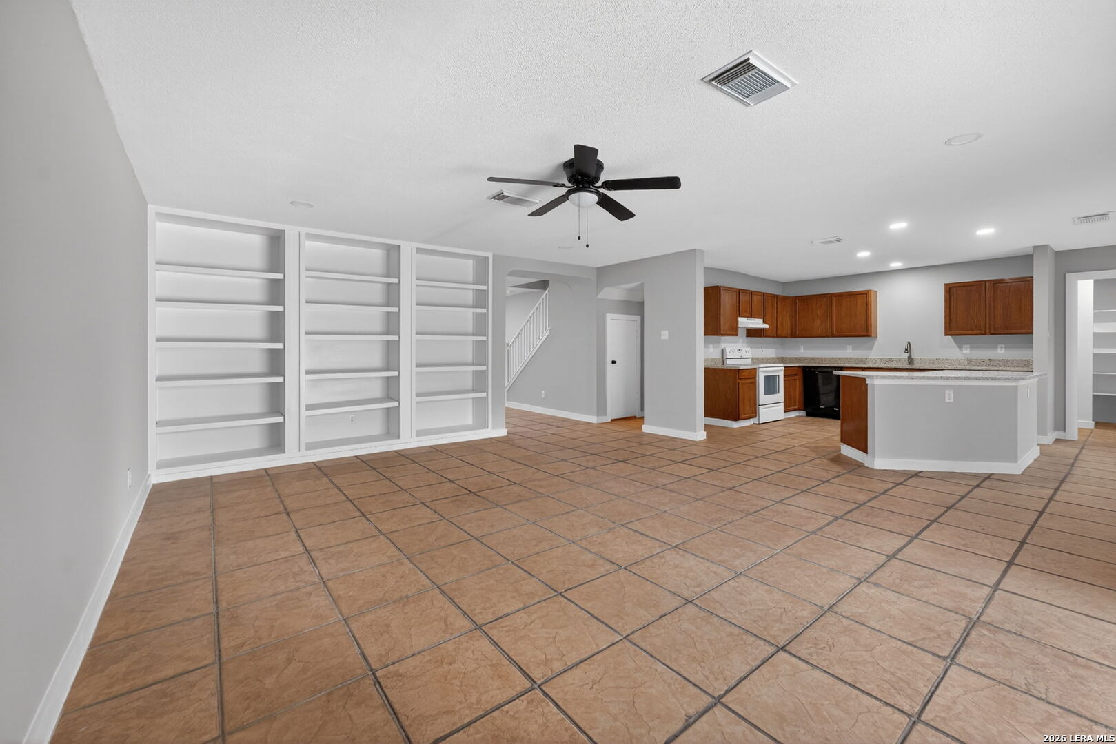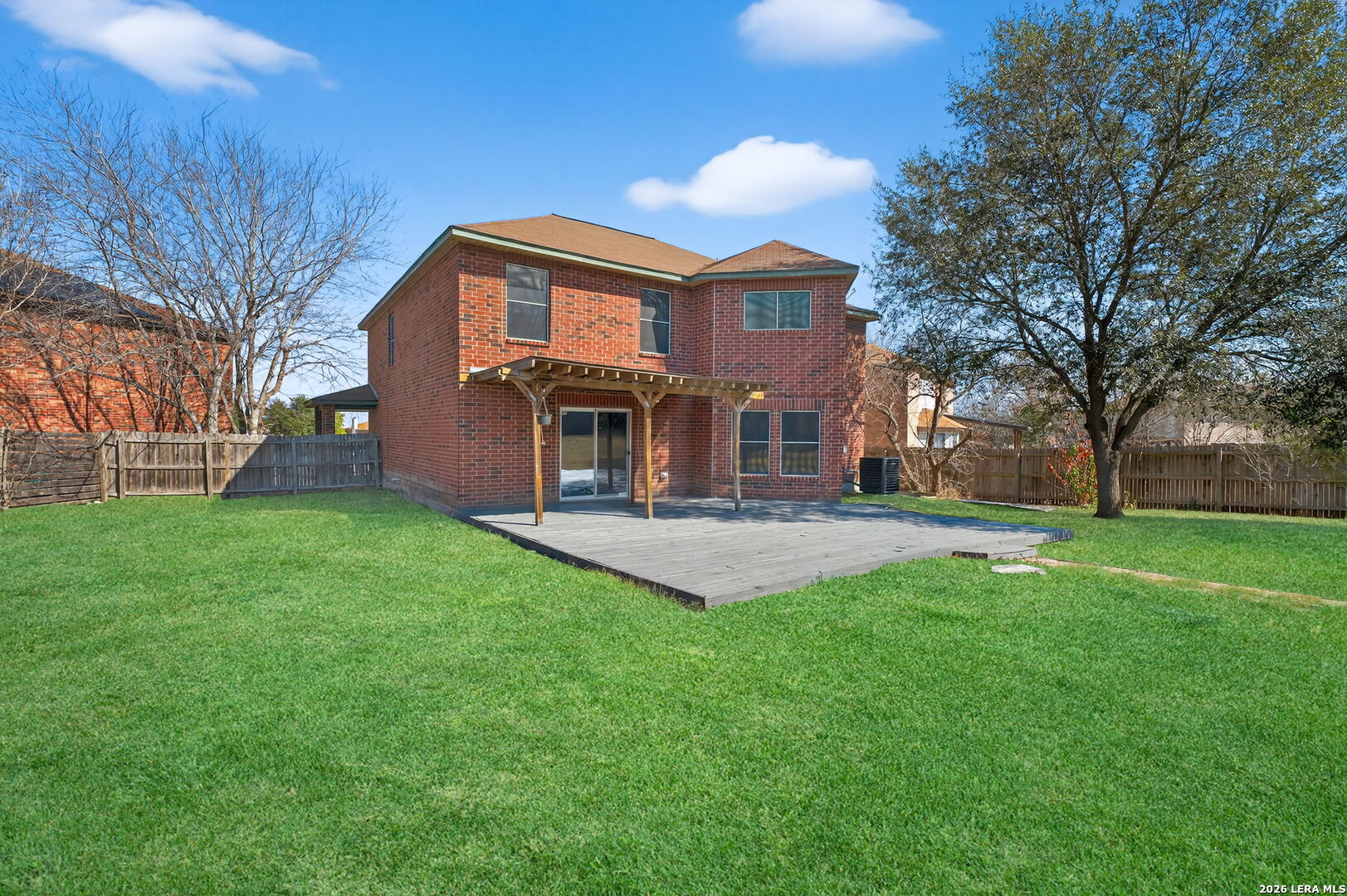 Welcome to 7607 Montford Place in Converse, featuring a park like backyard with lush landscaping, a beautiful large wood deck, and mature trees that make this home stand out. This spacious four bedroom open floor plan offers a large living area with both formal and casual dining spaces, ideal for everyday living and entertaining. The entire downstairs is fully tiled, while the upstairs features laminate wood flooring with tiled bathrooms, making this a truly allergy friendly home. The gourmet island kitchen includes a breakfast bar, walk in pantry, and ample counter space. The primary suite is located upstairs and offers a huge walk in closet, and a fabulous sitting room that adds flexibility and comfort. Secondary bedrooms are generously sized and each includes a walk in closet. Conveniently located near Randolph Air Force Base and other major military installations, with easy access to shopping, dining, and commuter routes.