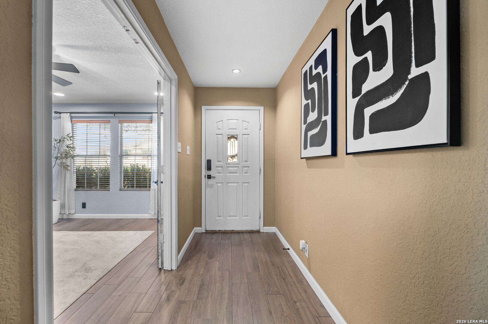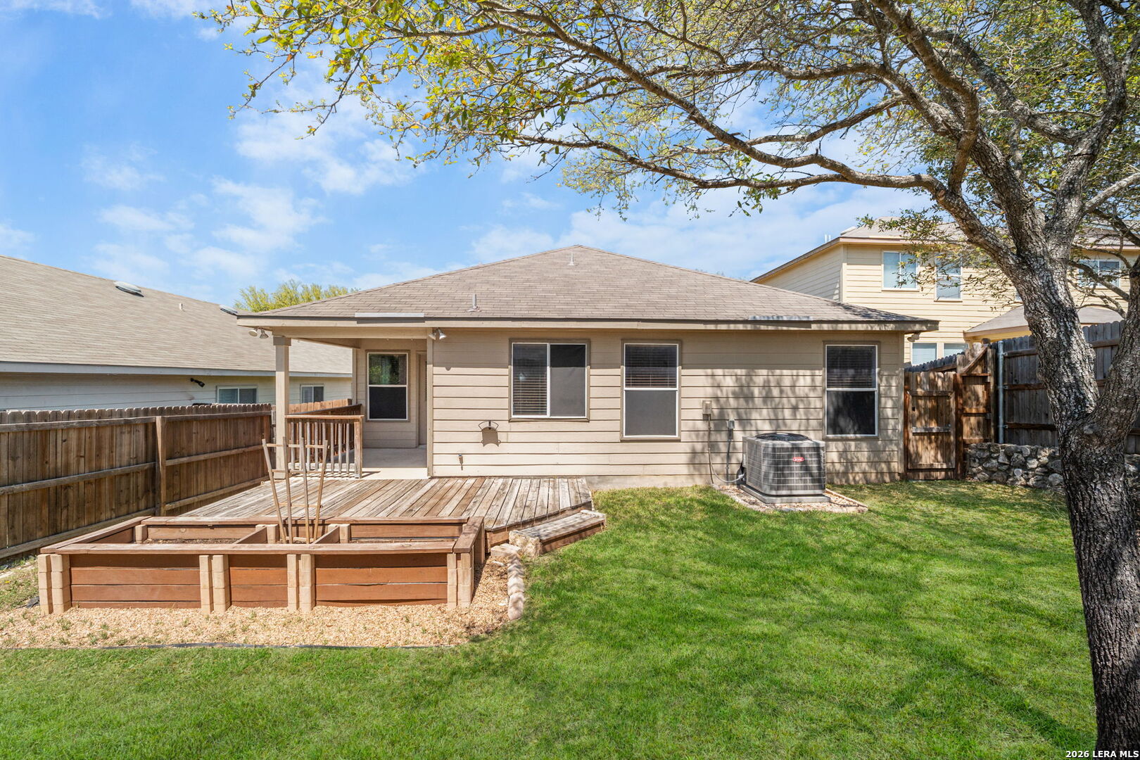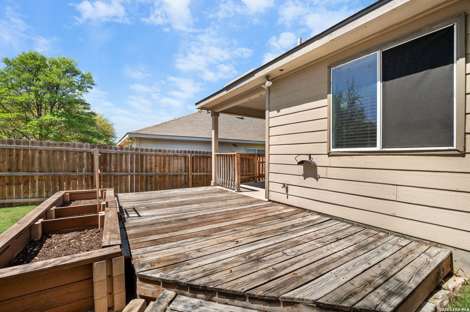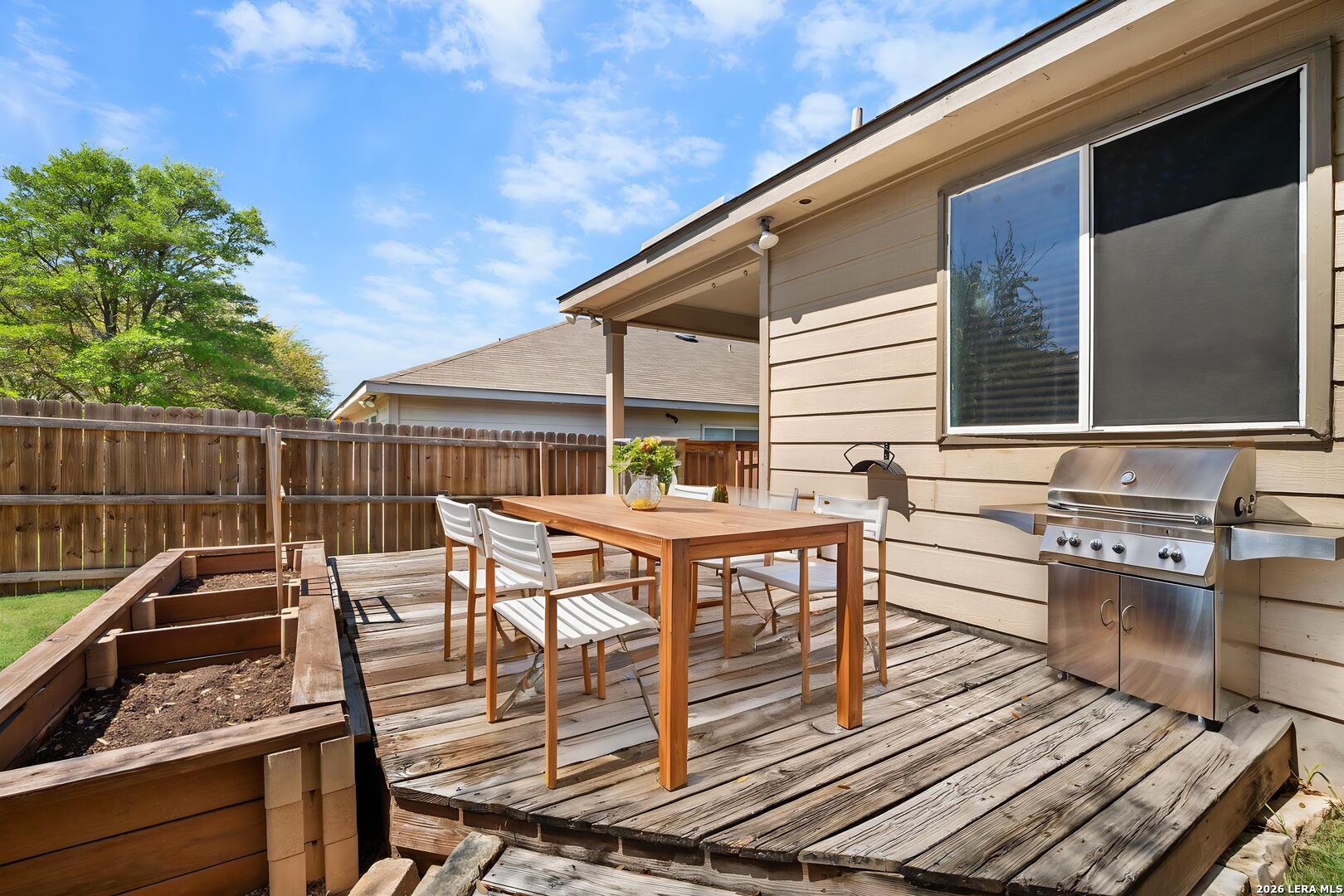 Welcome to this beautifully maintained home in the highly sought-after Presidio of Lost Creek community in Boerne, TX. This thoughtfully updated residence offers a perfect blend of comfort, style, and functionality. Step inside to find new wood porcelain tile flooring flowing seamlessly throughout the home, creating a modern and cohesive feel. A dedicated study provides the ideal space for working from home or a quiet retreat. The oversized primary suite offers a true sanctuary, featuring generous space, crown molding throughout and recessed lighting. The home has been meticulously cared for, with tasteful updates throughout and a roof that is just 7 years old-providing peace of mind for years to come. Step to the backyard and enjoy the expansive deck, perfect for entertaining or relaxing, all complemented by clean, well-maintained landscaping. Located in one of Boerne's most desirable communities, this home combines charm, upgrades, and an unbeatable location-ready for its next owner to move in and enjoy.