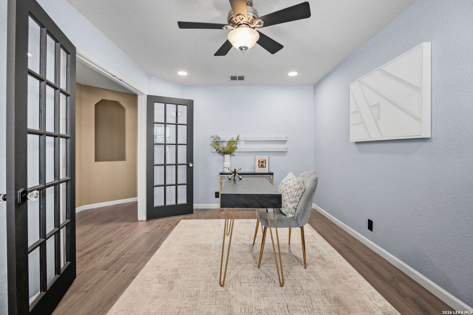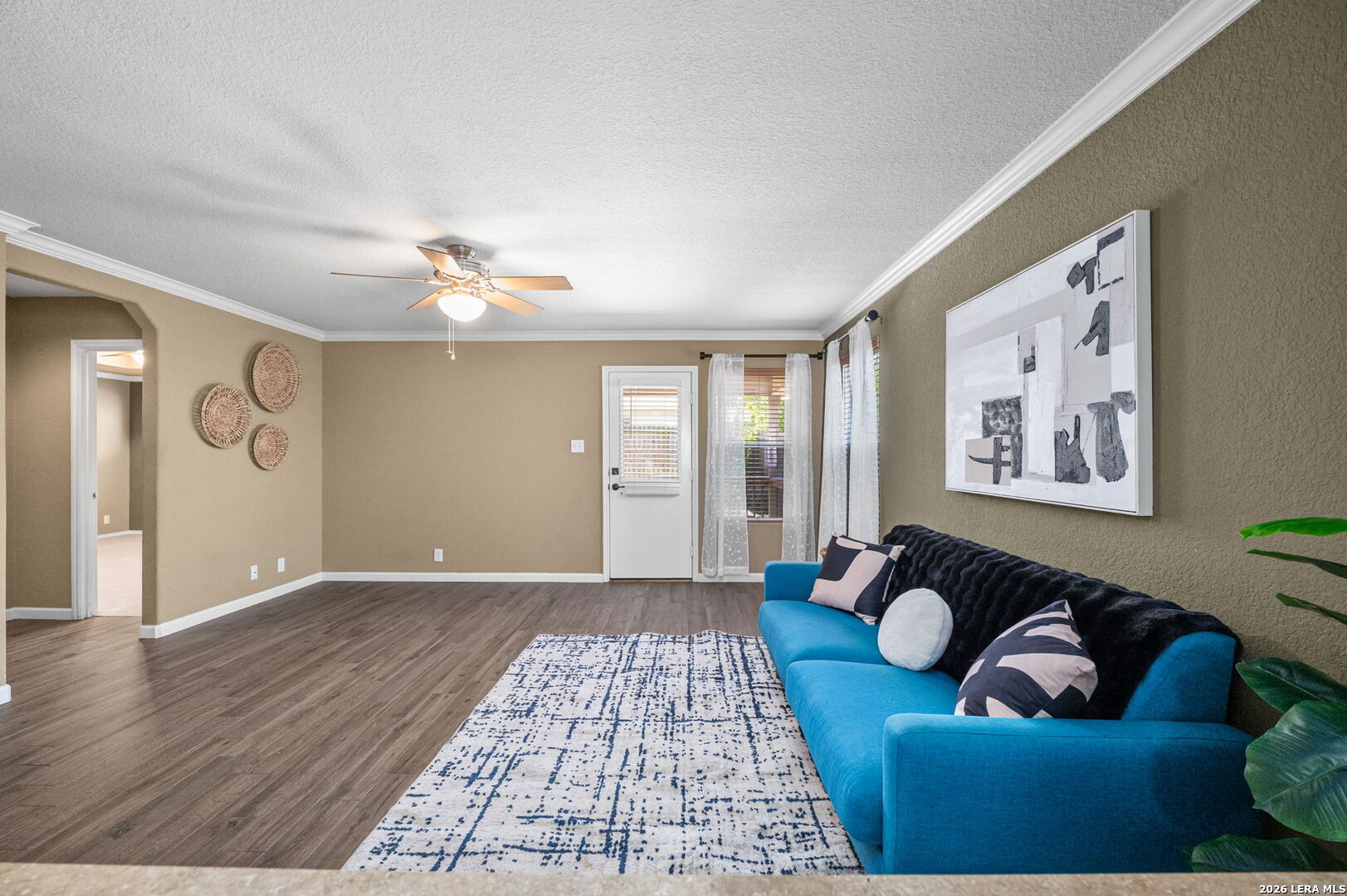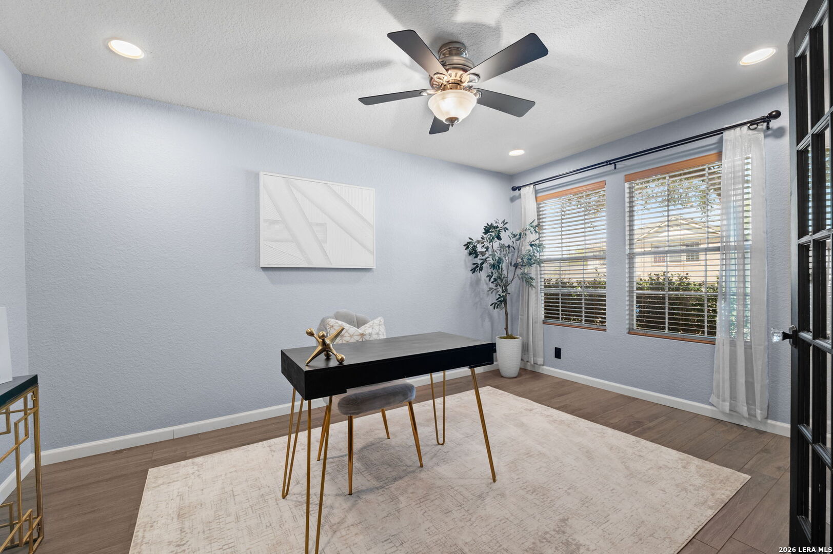 Welcome to this beautifully maintained home in the highly sought-after Presidio of Lost Creek community in Boerne, TX. This thoughtfully updated residence offers a perfect blend of comfort, style, and functionality. Step inside to find new wood porcelain tile flooring flowing seamlessly throughout the home, creating a modern and cohesive feel. A dedicated study provides the ideal space for working from home or a quiet retreat. The oversized primary suite offers a true sanctuary, featuring generous space, crown molding throughout and recessed lighting. The home has been meticulously cared for, with tasteful updates throughout and a roof that is just 7 years old-providing peace of mind for years to come. Step to the backyard and enjoy the expansive deck, perfect for entertaining or relaxing, all complemented by clean, well-maintained landscaping. Located in one of Boerne's most desirable communities, this home combines charm, upgrades, and an unbeatable location-ready for its next owner to move in and enjoy.