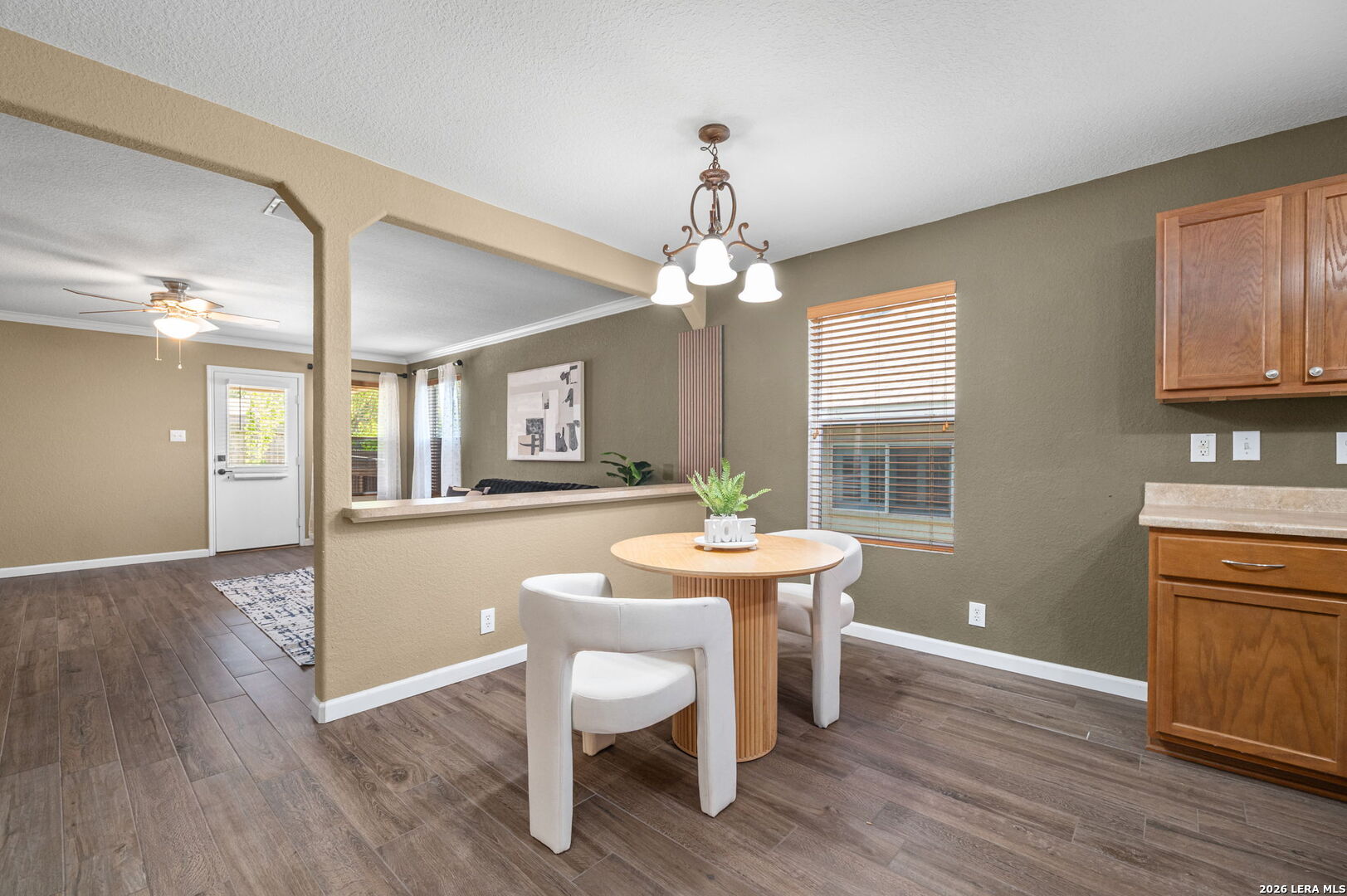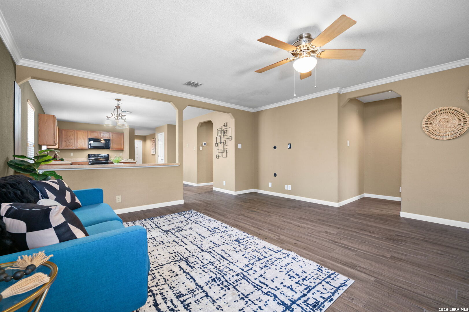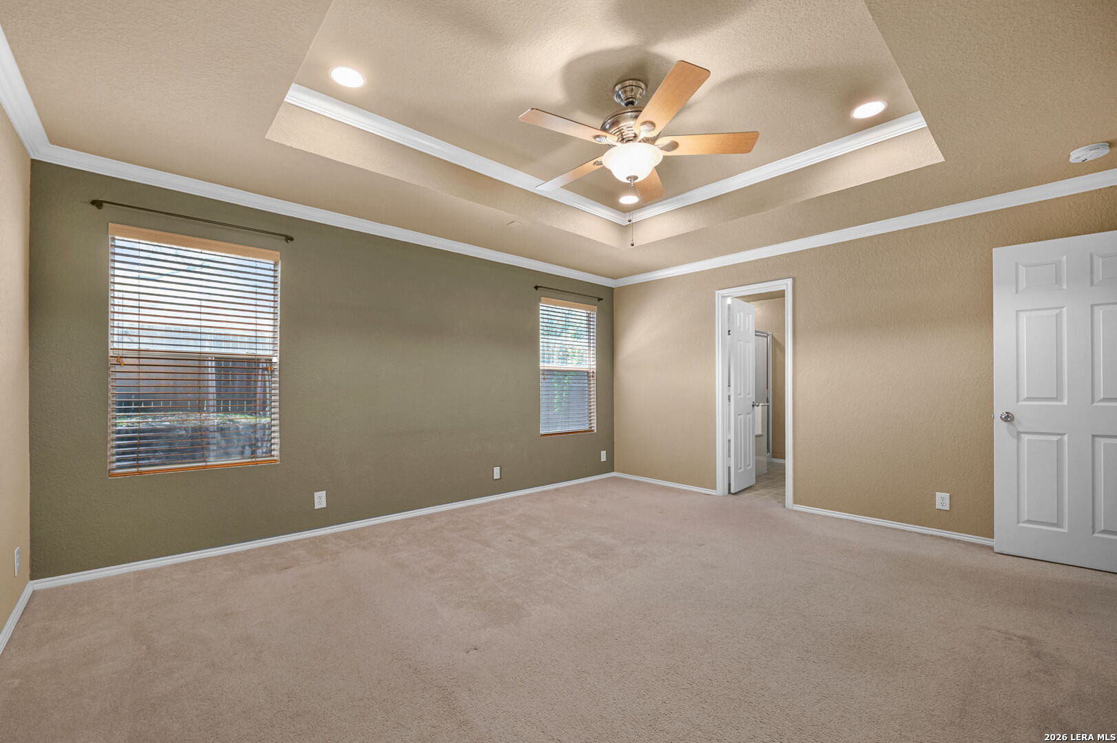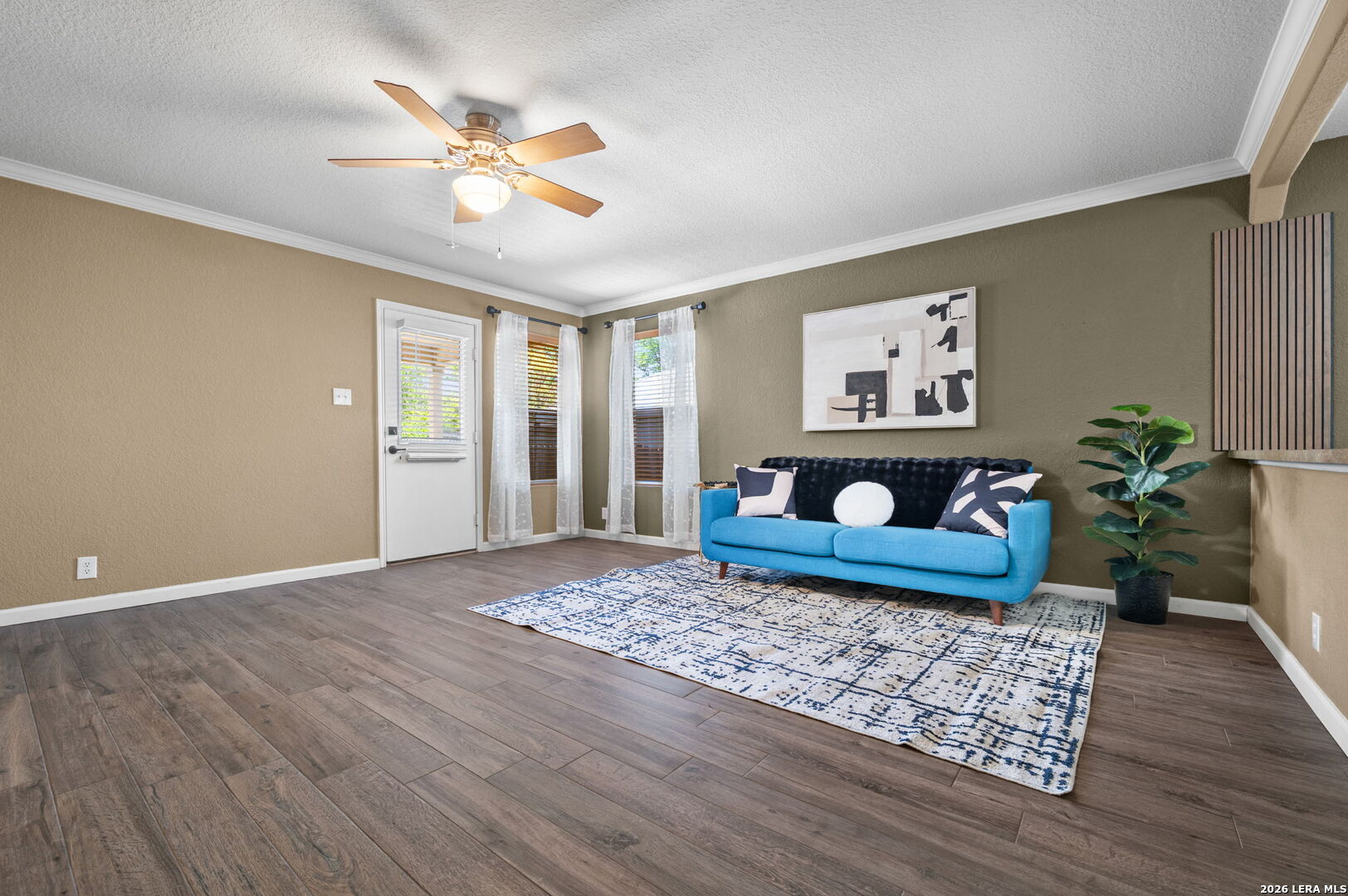 Welcome to this beautifully maintained home in the highly sought-after Presidio of Lost Creek community in Boerne, TX. This thoughtfully updated residence offers a perfect blend of comfort, style, and functionality. Step inside to find new wood porcelain tile flooring flowing seamlessly throughout the home, creating a modern and cohesive feel. A dedicated study provides the ideal space for working from home or a quiet retreat. The oversized primary suite offers a true sanctuary, featuring generous space, crown molding throughout and recessed lighting. The home has been meticulously cared for, with tasteful updates throughout and a roof that is just 7 years old-providing peace of mind for years to come. Step to the backyard and enjoy the expansive deck, perfect for entertaining or relaxing, all complemented by clean, well-maintained landscaping. Located in one of Boerne's most desirable communities, this home combines charm, upgrades, and an unbeatable location-ready for its next owner to move in and enjoy.