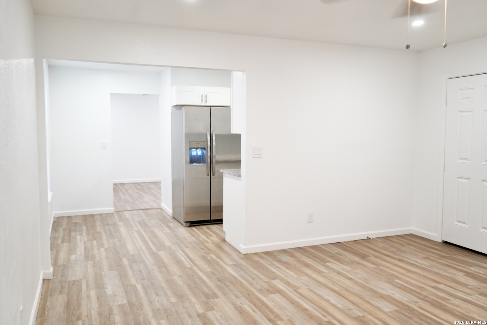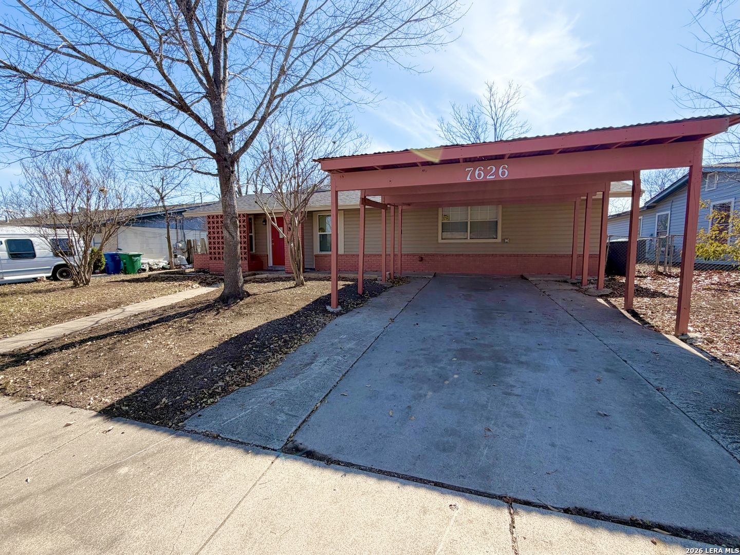 This newly renovated home is conveniently located near major highways and the Air Force Base, offering easy access for commuting and daily travel. The eat- in kitchen is fully equipped with stainless steel appliances, including a gas stove, refrigerator with ice maker, range hood microwave, dishwasher, and garbage disposal, all complemented by granite countertops and soft-close cabinetry. The thoughtfully designed layout offers two separate living areas and a large laundry room with full-size washer and dryer connections. White walls and light-colored vinyl plank flooring throughout create a warm, bright, and inviting atmosphere. The fourth bedroom is conveniently split from the main living areas, making it ideal as a flex space, home office, or guest room. Outside, the fenced backyard includes an additional enclosed area perfect for a dog run or garden. A two-car carport at the front of the home adds everyday convenience.