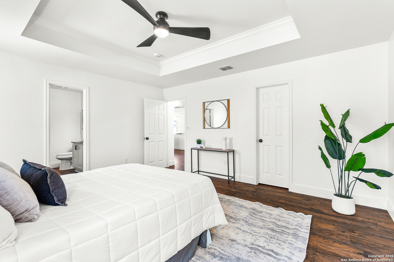 Welcome to 7635 Derby Run - one of the ONLY 4 BEDROOM, SINGLE STORY, homes in this sought-after neighborhood, offered at an incredible price point! This charming single-story has been thoughtfully updated throughout. Step inside to find an open-concept layout filled with natural light, beautiful wood-style flooring, and a bright modern kitchen featuring white cabinetry, black granite counters, subway tile backsplash, and updated fixtures. The spacious dining area flows seamlessly into the cozy living room - perfect for entertaining or relaxing at home. Your private primary suite offers a serene retreat with tray ceilings, double sinks, and a fresh, spa-like bathroom. The split floor plan allows for additional privacy between bedrooms - ideal for families, guests, or a home office setup. Enjoy the peaceful backyard with no rear neighbors, providing extra privacy and open views. The covered patio is perfect for morning coffee or weekend barbecues. Additional highlights include a full laundry room, updated lighting, and an attached two-car garage. Located in a quiet, established neighborhood, this home combines comfort, value, and convenience - just minutes from schools, parks, and major highways.