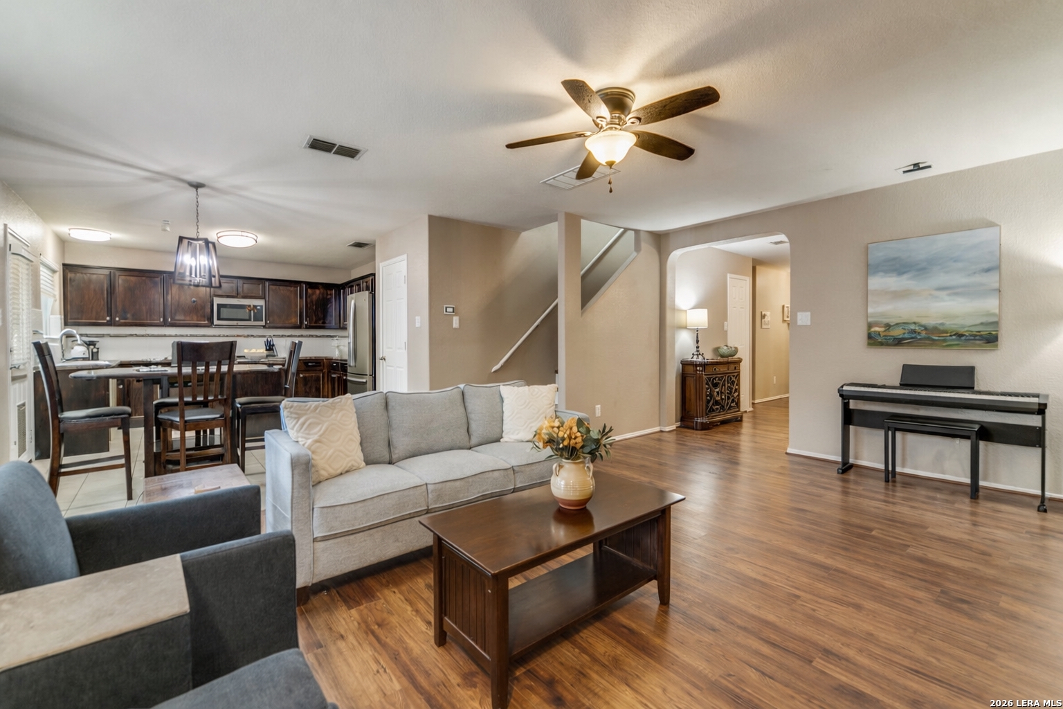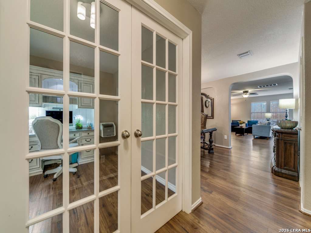 There is a comfort to this home that you notice right away-the kind that makes you slow down, take a breath, and feel like you've found a place where life can truly settle in. As you step inside, the warm laminate-wood flooring carries you through an inviting layout that offers both openness and defined spaces. A dedicated office sits just off the entry behind double glass-paneled doors, creating a quiet place to focus while still feeling connected to the home. Nearby, the dining room is ready for everything from everyday meals to hosting gatherings that linger a little longer. The heart of the home opens up into a spacious living room filled with natural light, flowing seamlessly into a kitchen designed for real living. With an abundance of cabinetry, generous counter space, and a well-sized walk-in pantry, everything has its place-whether you're preparing a weeknight dinner or hosting friends and family. The adjoining breakfast area feels relaxed and welcoming, a natural spot to start the day. With five bedrooms, including a guest room and full bath on the main level, the layout offers flexibility for visitors, multi-generational living, or simply extra space to grow. Upstairs, the primary suite provides a true retreat-generously sized with room to unwind, complemented by a bath with a garden tub, separate shower, and a walk-in closet. Three additional well-proportioned bedrooms and a large laundry room complete the upper level, creating a practical and comfortable everyday flow. As you enter through the front door a covered patio invites you to sit and stay, while the gentle presence of a goldfish pond adds a sense of calm. Step outside into your private backyard and the tone shifts to something even more memorable - plenty of space to host gathering, room for your barbeque, accompanied with flowers in bloom. An additional private garden is already in place, ready for fresh herbs, vegetables, or seasonal blooms-an outdoor space that feels both purposeful and personal. Located in the Lost Creek neighborhood, this home places you right where you want to be-just minutes from IH-10, with convenient access to Boerne, La Cantera, USAA, and UTSA. A great property for the traveler or host welcoming out of town guests with easy access to local attractions - a 30-minute drive to the airport and Riverwalk. This residence will bring the sense of quiet and everyday comfort that makes coming home the best part of your day.