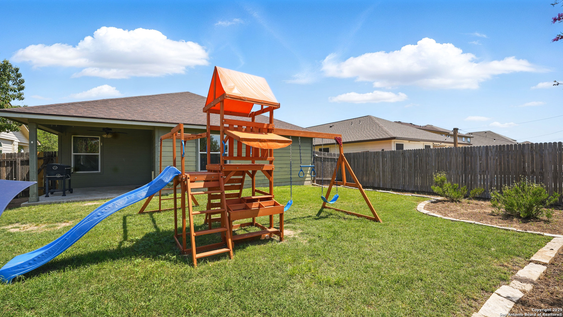 Everything's new but the address- new roof 4/10/25, 17 SEER HVAC with UV light, 50 gallon water heater, laminate flooring, carpet, fresh interior paint, stainless steel appliances-are all less than a year old! All in all, this is a beautifully updated 4-bedroom home in a vibrant, amenity-rich community. This spacious split-bedroom layout offers privacy with the primary suite separate from the additional three bedrooms. You'll enjoy the open-concept living area with plenty of natural light, centered around a modern kitchen with a large island offering extra prep space, storage, and seating-perfect for cooking and gathering . This property is located in a highly active community featuring a junior Olympic-sized pool with kiddie pool and fountains, playground, and on-site elementary school. Year-round neighborhood events make this a fantastic place to call home! This certainly feels like a brand-new home, without the new build price tag-schedule your showing today!