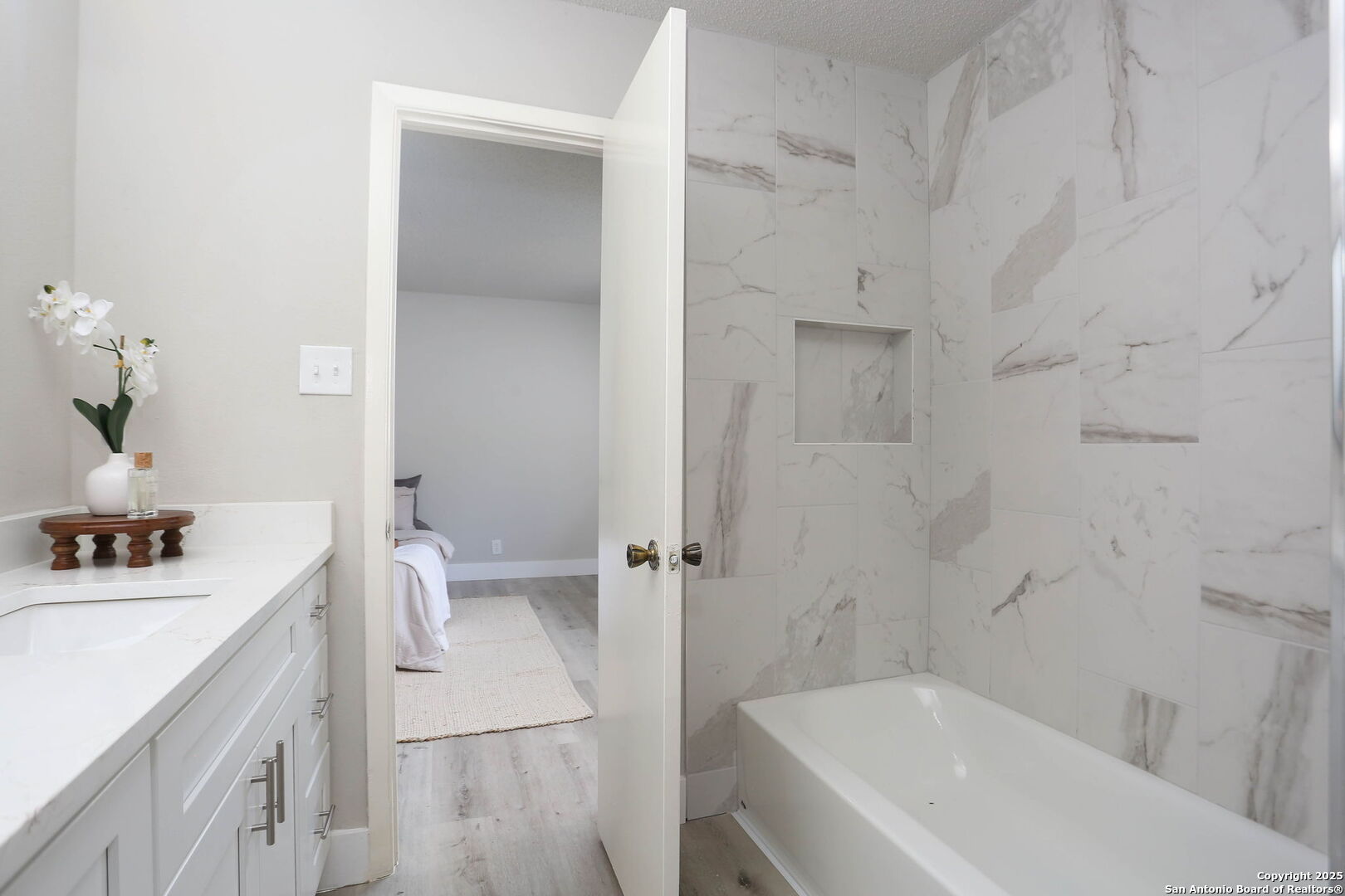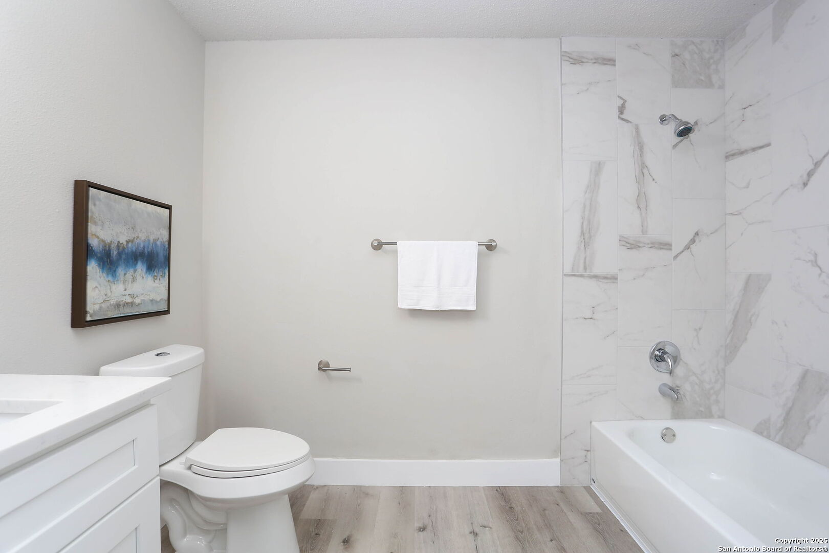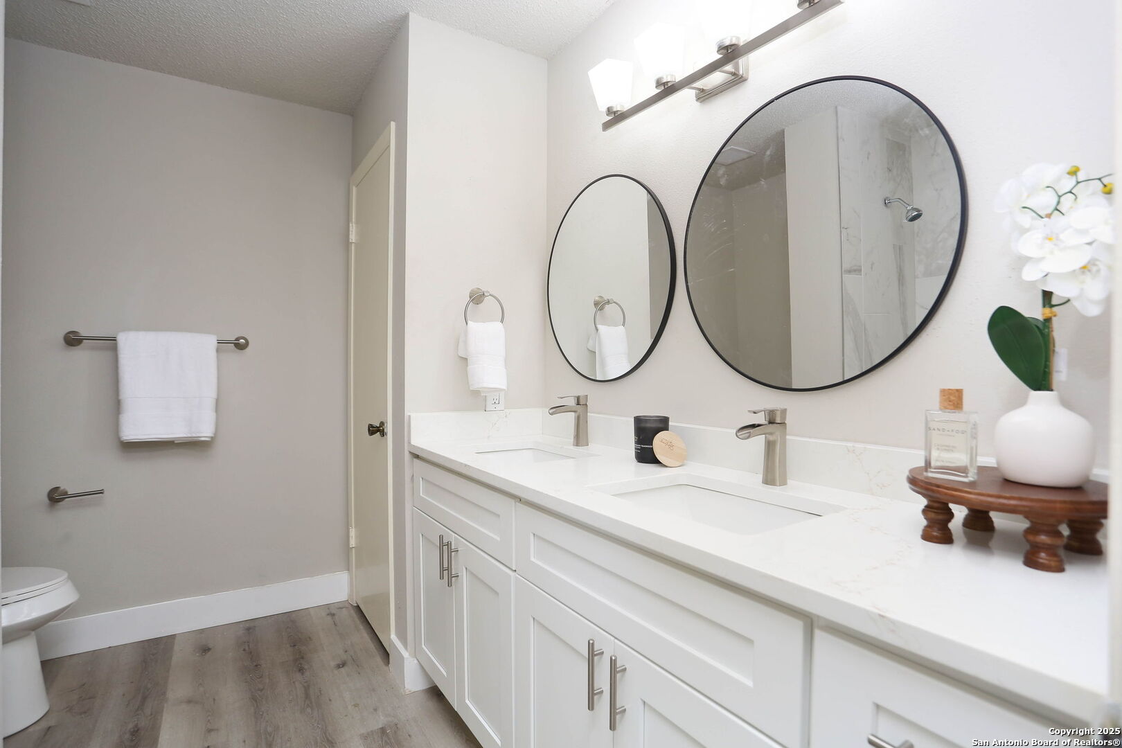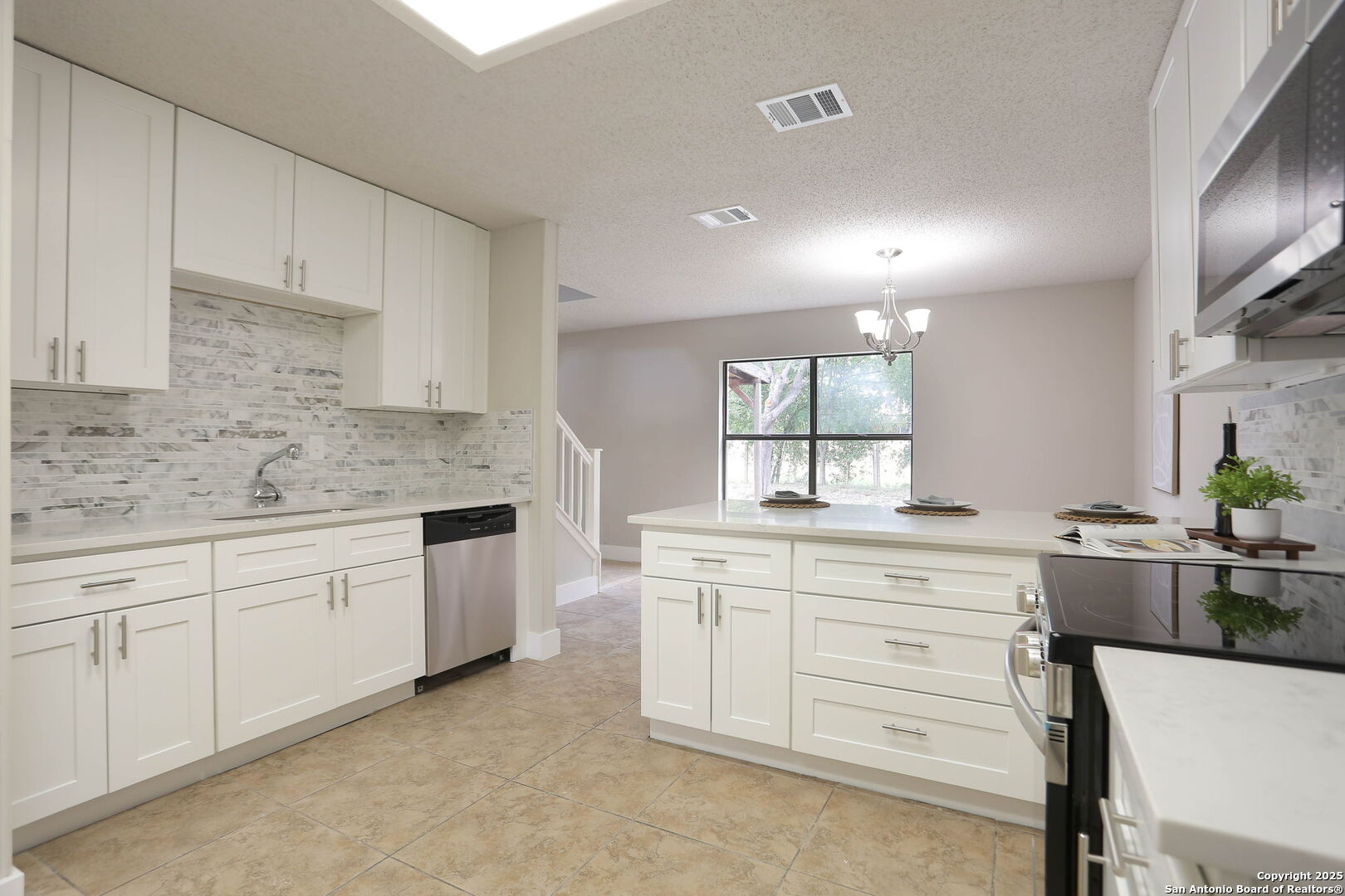 This spacious two-story home offers 4 bedrooms, 2.5 baths and over 2500 sqft of open living space. The kitchen has brand new quartz counter tops and an island bar with brand new appliances. The primary suite has generous space and a dual walk-in closets for ample storage. The large covered patio is perfect for relaxing evenings outdoors. This home is ideally located near major amenities: UTSA, USAA, the medical center, The rim, La Cantera, Six flags, & much more. Privacy fence to be installed prior to closing.