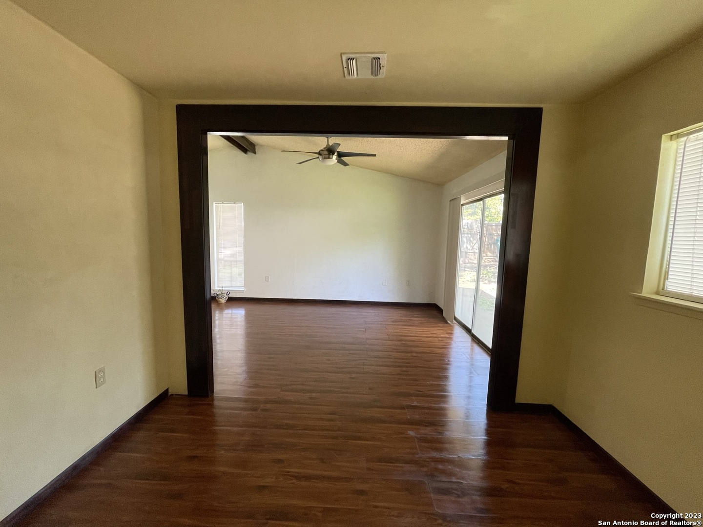 Corner lot one-story home with lots of space, and a scenic yard for your gatherings and leisurely activities. Updated kitchen counters and appliances, vaulted living room ceilings and a fireplace. Shared laundry room access. Home is owner managed. NO Pets. Quick access to shopping, dining and major highway.
