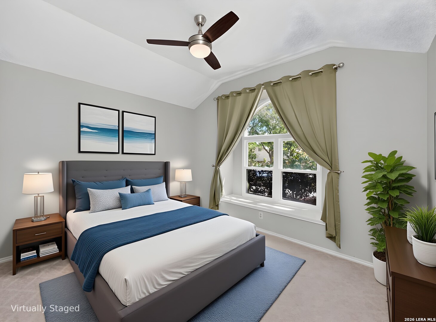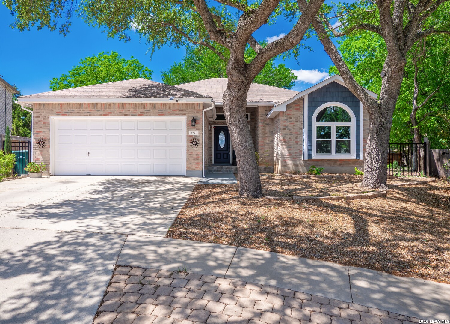 Location is everything! This well-appointed 1-story home offers 3 bedrooms and 2 bathrooms in a highly desirable cul-de-sac setting. With its great location and appealing price point, this is a rare opportunity you don't want to miss. Inside, you'll find high ceilings throughout, crown molding in the living area, and unique architectural details, including a curved wall in the living room and a fireplace that creates a warm and inviting focal point. The open living spaces are perfect for everyday living and entertaining. The spacious primary suite features high ceilings and an ensuite bath that is a masterclass in bold pattern mixing, showcasing a large-scale feathery wallpaper paired with intricate Mediterranean-style floor tiles. The space is complemented by a single vanity, a huge tile walk-in shower with large-format marble tiles and a sleek glass partition, and a closet. All bedrooms are generously sized, and the layout is both functional and comfortable. This home has been thoughtfully updated with solar panels for a low electric bill, new double-pane Pella windows, all-new flooring including bamboo, tile, and carpet, new kitchen cabinets and countertops, stainless steel appliances, a new heat pump and AC, custom blinds, new front and back doors, and the washer and dryer stay with the house. Enjoy outdoor living with a large backyard and a partially covered patio, ideal for gatherings and relaxation. Additional highlights include an attached 2-car garage. Conveniently located near shopping, dining, and easy freeway access. Come see this home before it's gone!