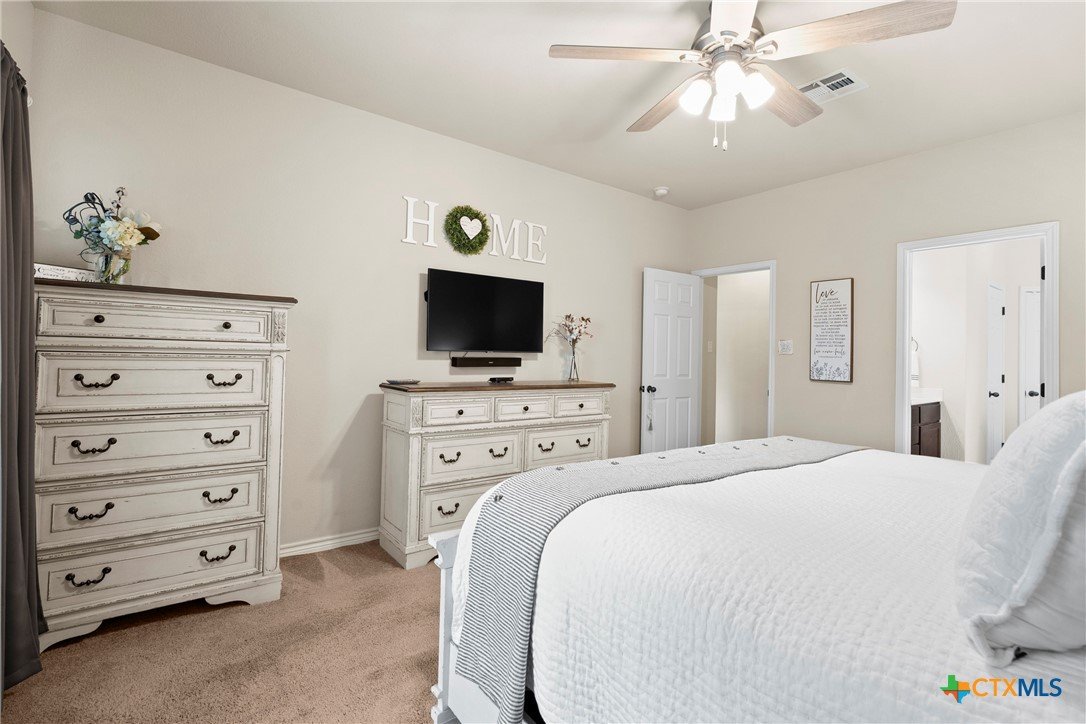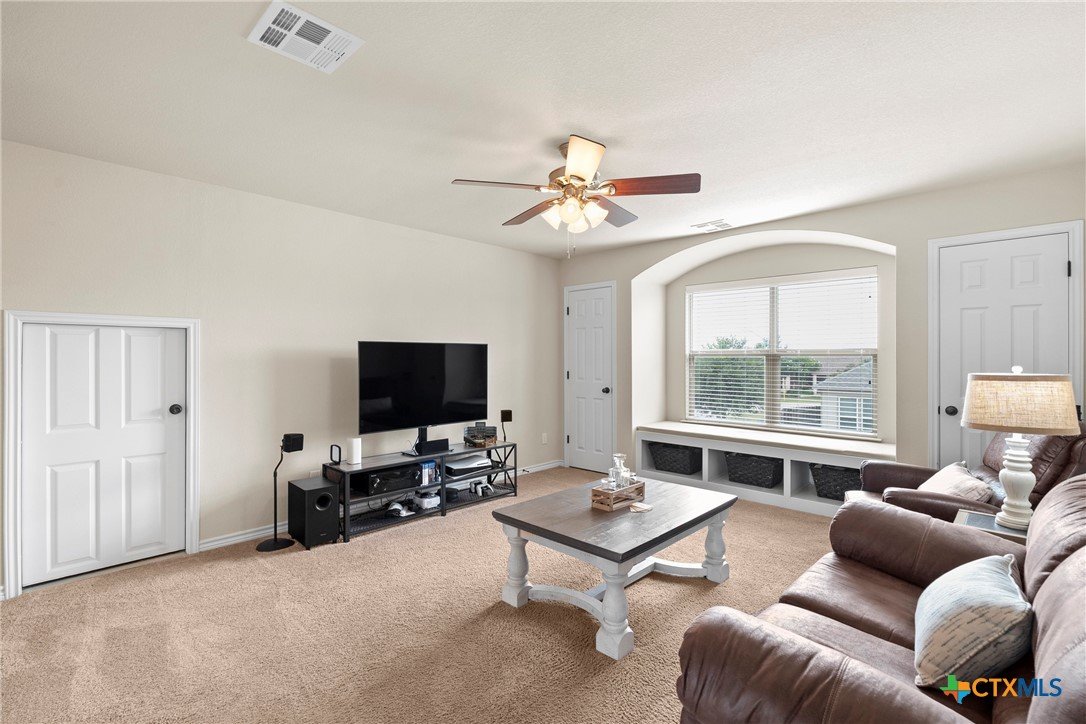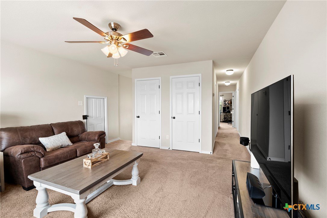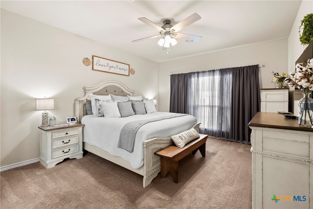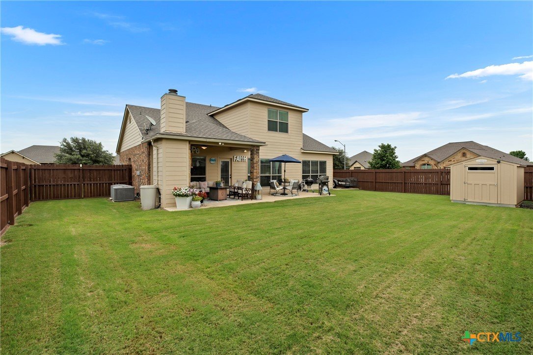 Welcome to 7705 Painted Valley Drive, a beautifully maintained home located in the gated Hills of Westwood community in Temple, Texas. Set on a large .21-acre corner lot, this home offers space, privacy, and thoughtful upgrades inside and out. The extended driveway provides ample parking and includes room to store a boat or trailer, making it ideal for those who love to explore the outdoors. A new roof, well-maintained yard, and numerous enhancements add lasting value and curb appeal. Inside, you'll find a spacious and functional layout featuring a downstairs primary suite with a generous en suite bath and walk-in closet, along with a dedicated office and powder room for guests. The open-concept living area flows into a stylish kitchen with stainless steel appliances, perfect for entertaining or everyday living. Upstairs, a bonus loft and reading nook create cozy, flexible living space, while each bedroom includes additional closets for ample storage. The two-car garage is equipped with a Genie ball screw garage door opener for quieter, faster operation, and features a metal wall storage cabinet to help keep things organized. Outside, enjoy a massive extended patio with both covered and uncovered areas, ideal for hosting gatherings or relaxing in your own backyard retreat. The 8x10 Tuff Shed adds additional storage, and the fully fenced backyard offers space, privacy, and peace of mind. Entertainment features include a TV mounted in the bathroom and another on the back patio, perfect for game days, movie nights, or relaxing in the tub after a long day. Zoned to Belton ISD, this home is just minutes from Joe Pirtle Elementary and Lake Belton Middle School, with Lake Belton and outdoor recreation close by. Combining practical upgrades with lifestyle comforts, 7705 Painted Valley Dr delivers the best of gated community living in one of Temple’s most desirable neighborhoods. Don’t miss your chance to make this exceptional home yours!