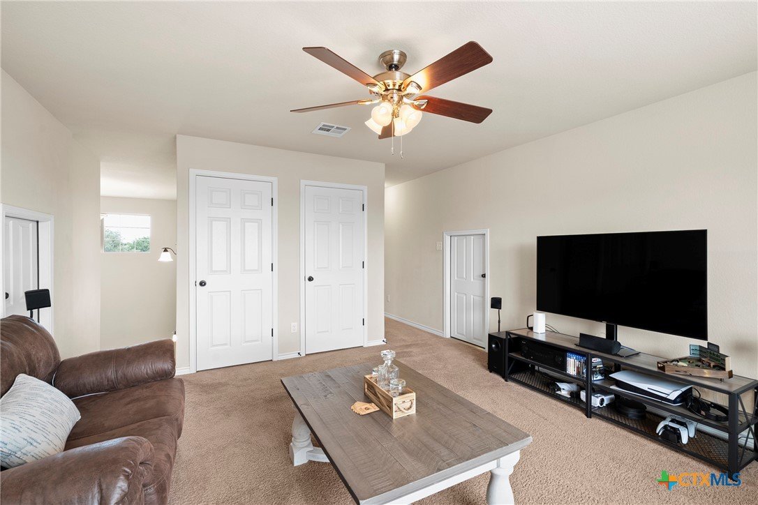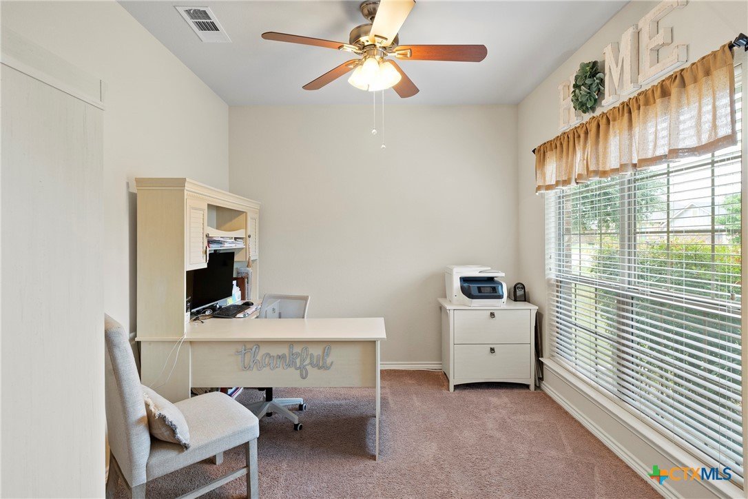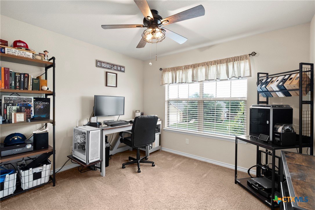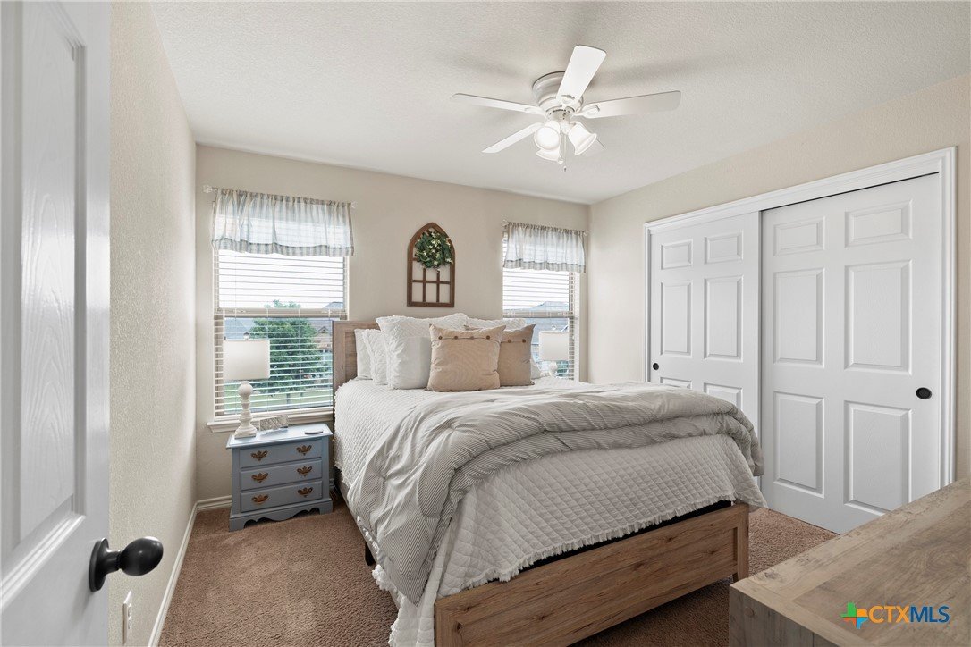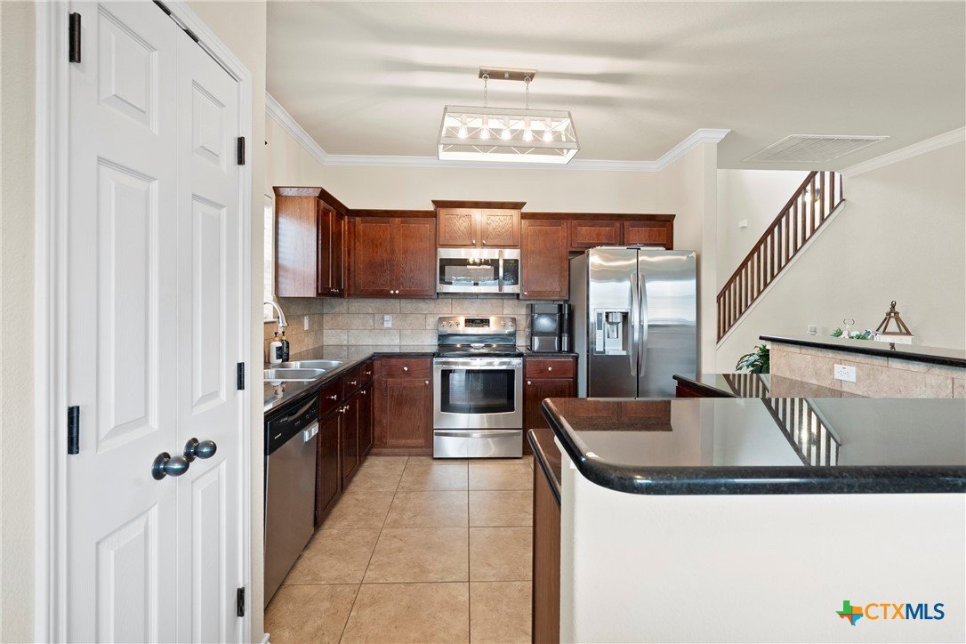 Welcome to 7705 Painted Valley Drive, a beautifully maintained home located in the gated Hills of Westwood community in Temple, Texas. Set on a large .21-acre corner lot, this home offers space, privacy, and thoughtful upgrades inside and out. The extended driveway provides ample parking and includes room to store a boat or trailer, making it ideal for those who love to explore the outdoors. A new roof, well-maintained yard, and numerous enhancements add lasting value and curb appeal. Inside, you'll find a spacious and functional layout featuring a downstairs primary suite with a generous en suite bath and walk-in closet, along with a dedicated office and powder room for guests. The open-concept living area flows into a stylish kitchen with stainless steel appliances, perfect for entertaining or everyday living. Upstairs, a bonus loft and reading nook create cozy, flexible living space, while each bedroom includes additional closets for ample storage. The two-car garage is equipped with a Genie ball screw garage door opener for quieter, faster operation, and features a metal wall storage cabinet to help keep things organized. Outside, enjoy a massive extended patio with both covered and uncovered areas, ideal for hosting gatherings or relaxing in your own backyard retreat. The 8x10 Tuff Shed adds additional storage, and the fully fenced backyard offers space, privacy, and peace of mind. Entertainment features include a TV mounted in the bathroom and another on the back patio, perfect for game days, movie nights, or relaxing in the tub after a long day. Zoned to Belton ISD, this home is just minutes from Joe Pirtle Elementary and Lake Belton Middle School, with Lake Belton and outdoor recreation close by. Combining practical upgrades with lifestyle comforts, 7705 Painted Valley Dr delivers the best of gated community living in one of Temple’s most desirable neighborhoods. Don’t miss your chance to make this exceptional home yours!