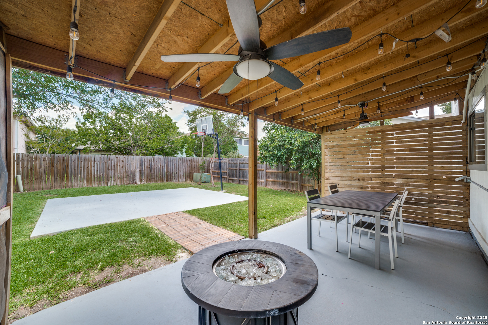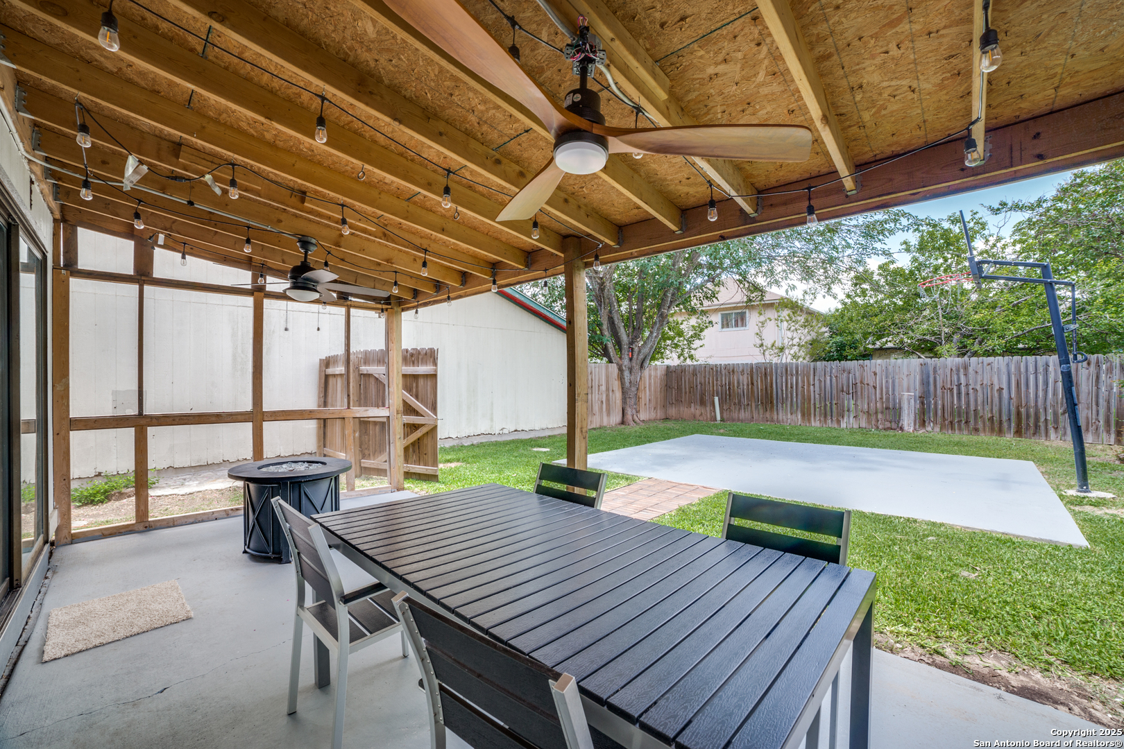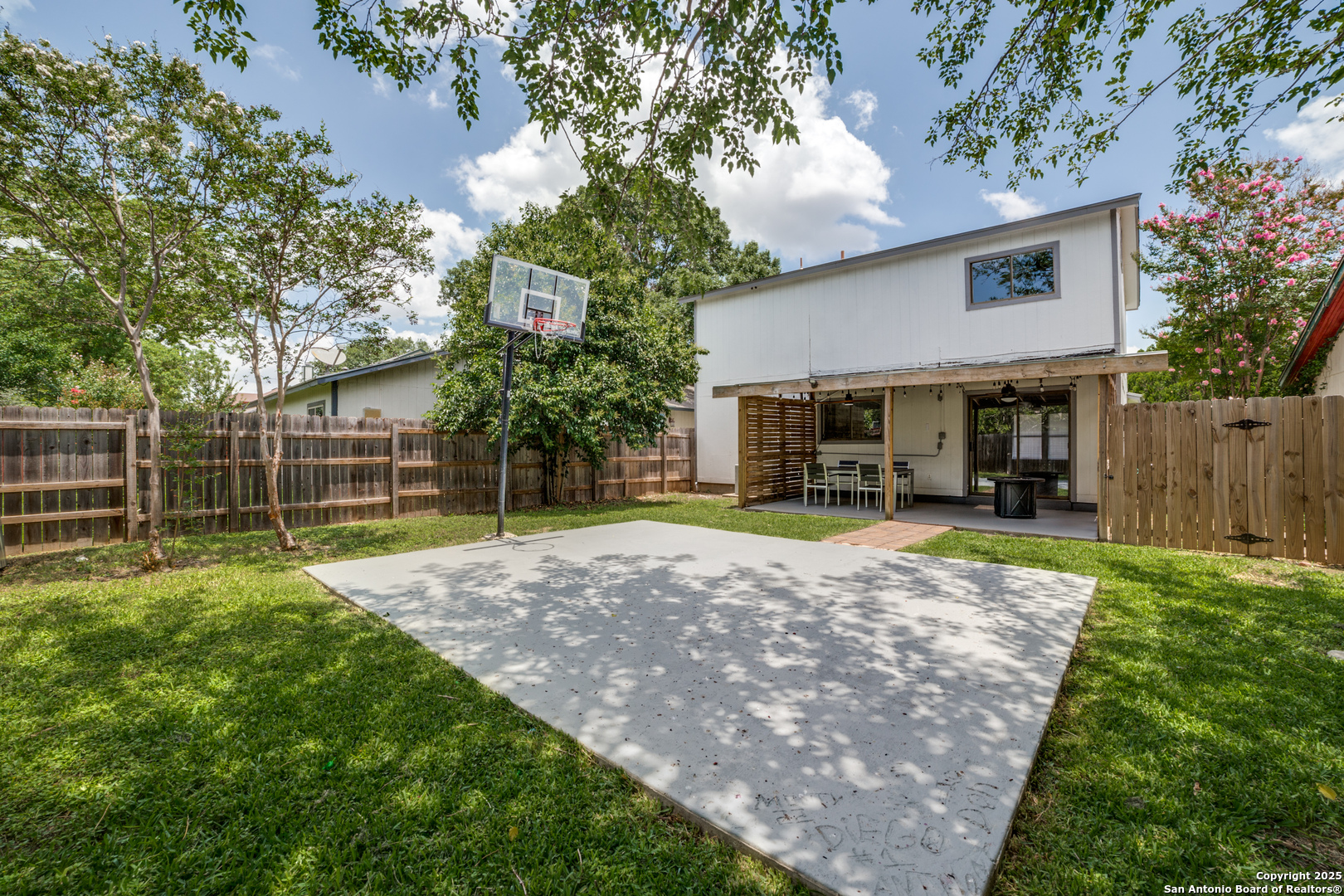 Motivated Seller! Discover this beautifully maintained 3 bedroom 2 1/2 bath home nestled in the heart of Northwest Crossing! This 1582 sq. ft home features recent upgrades, fresh interior paint and new ceiling fans and carpet in bedrooms. Kitchen cabinets, countertops and backsplash were replaced within last 5 yrs. The landscaped backyard includes a covered patio perfect for entertaining or simply relaxing. A large concrete slab in backyard being used as a basketball court or can easily be converted to an outdoor living concrete base. Roof replaced in 2023 and HVAC AHU and condenser in 2021. Full exterior paint within last 3 yrs as well new Stucco at front facade. Located minutes from premier shopping, dining, top rated Northside ISD and easy access to I-10 and highway 151. This home blends comfort, convienence and charm. Don't miss your chance to make this treasure yours!