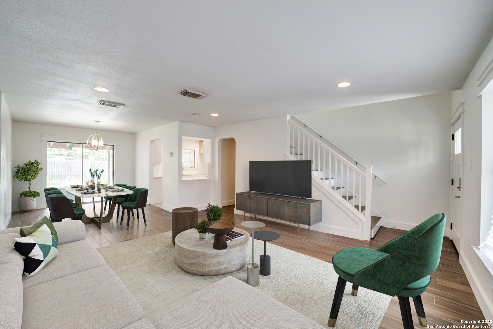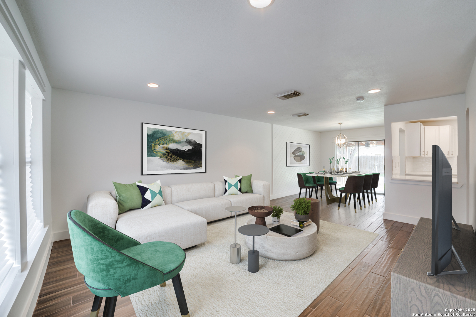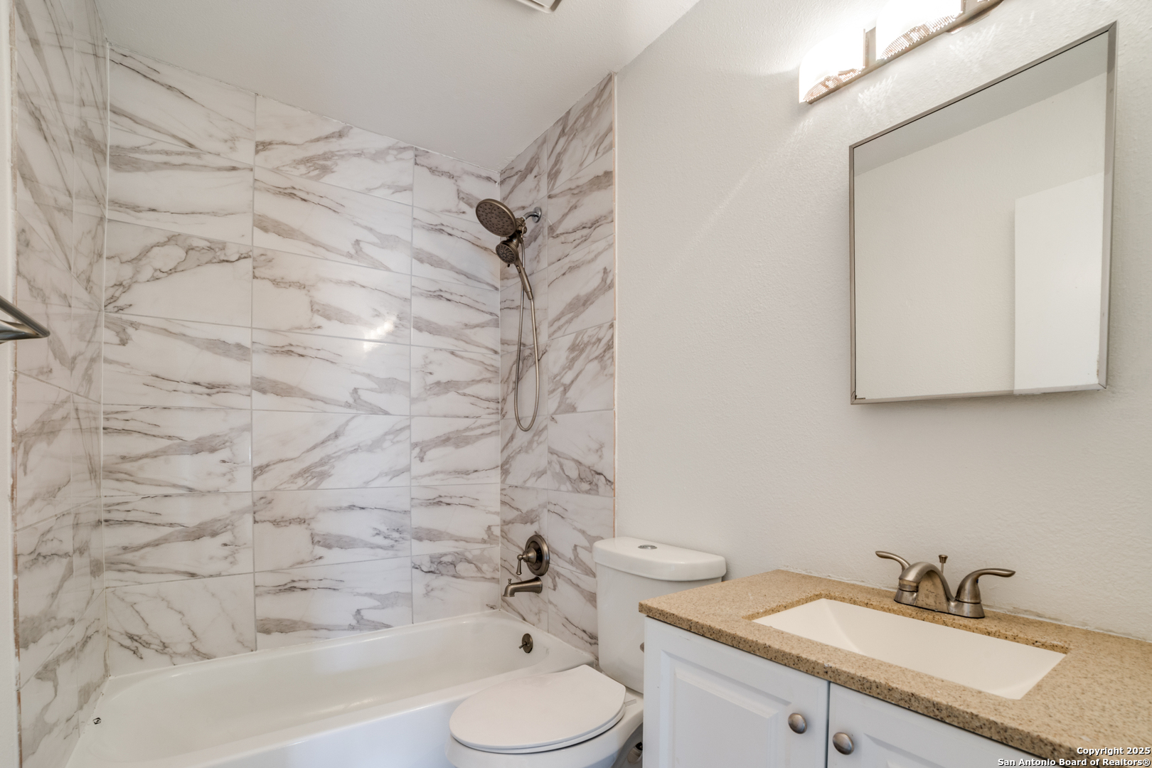 Motivated Seller! Discover this beautifully maintained 3 bedroom 2 1/2 bath home nestled in the heart of Northwest Crossing! This 1582 sq. ft home features recent upgrades, fresh interior paint and new ceiling fans and carpet in bedrooms. Kitchen cabinets, countertops and backsplash were replaced within last 5 yrs. The landscaped backyard includes a covered patio perfect for entertaining or simply relaxing. A large concrete slab in backyard being used as a basketball court or can easily be converted to an outdoor living concrete base. Roof replaced in 2023 and HVAC AHU and condenser in 2021. Full exterior paint within last 3 yrs as well new Stucco at front facade. Located minutes from premier shopping, dining, top rated Northside ISD and easy access to I-10 and highway 151. This home blends comfort, convienence and charm. Don't miss your chance to make this treasure yours!