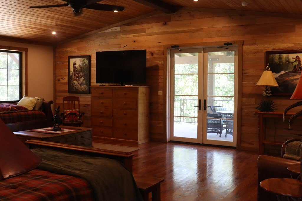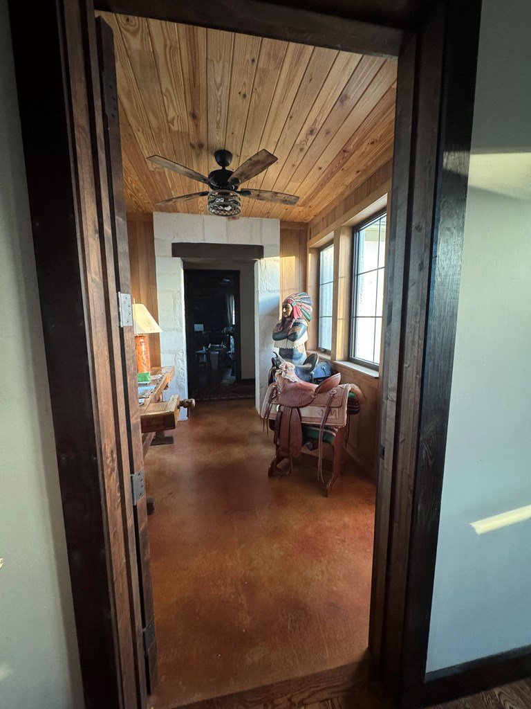 Welcome to 772 Luckenbach Road, Fredericksburg, Texas, Exceptional Hill Country Estate on 22 Pristine Acres. Discover this stunning German Schmeer stone home situated on 22 acres of prime Texas Hill Country land, complete with Ag exemption, two wells, high fencing with cross fencing, mature trees, and ideal setup for livestock or exotic animals. Property Overview, 4 bedrooms, 4 bathrooms, over 4855 square feet of living space, 22 acres with transferable agricultural exemption, German stone construction, outdoor living at its finest. The oversized porches 2448 sq.ft. creates an extremely inviting entrance—perfect for enjoying spectacular sunsets, wildlife watching, or entertaining guests. Relax by the gas fireplace with convenient TV hookups while taking in the serene Hill Country views. Interior Features-Main Living Areas Step inside to discover a home filled with natural light, complemented by exceptional chandeliers and recessed lighting throughout. The impressive main living area spans 31'6" x 27' and showcases a dramatic 15-foot floor-to-ceiling stone gas fireplace alongside beautiful hardwood floors. The dining area is conveniently positioned off the kitchen, offering picturesque views of the front yard and rolling green pastures. Gourmet Kitchen, a chef's dream featuring: farmhouse sink, granite countertops, Thermador appliances, (2) Refrigerators, (2) dishwasher, (2) wine coolers, dual fuel 6-burner gas stove with griddle, steamer, and warming drawer, abundant storage throughout. Luxurious Primary Suite-The spacious primary bedroom (16' x 15') features its own private gas fireplace and extraordinary closet space, including a 315 sq ft oversized walk-in closet and an additional 10' x 7' cedar-lined closet. All closets throughout the home feature premium cedar lining. The primary bathroom offers a spa-like experience with a jetted tub overlooking the backyard, marble finishes, glass walk-in shower, double sinks, and extensive storage. Additional Bedrooms & Flexible Spaces, Guest Suite: 760 sq ft upstairs retreat with kitchenette with refrigerator, full bath, and private access to a 375 sq ft second-floor veranda overlooking the backyard—perfect for guests or as a game room, craft room, or media room, third Bedroom: Downstairs with full bath, conveniently located near the laundry room, fourth Bedroom/Office: Currently functioning as an office with full bath access Outdoor Entertainment & Amenities. The private back patio features ceiling fans and TV hookup, leading to a tree-covered backyard with premium amenities including: Swim spa, outdoor shower, fire pit, mature tree coverage for natural shade. Storage & Outbuildings-This property offers exceptional storage solutions:23-foot deep, 3-car attached garage, 40' x 34' insulated barn with AC, full bath, covered porch, attached 40' x 24' tractor barn. Premium Features & Upgrades-Two propane tanks, 26' x 22' sport court, water softeners in both house, foam insulation in main home, thick rock wall construction, dual gates for animal protection, beautifully lit entry drive lined with 27 trees, pre-designed space for future elevator installation. Topography- this property offers lots of trees and the front pasture of approx. 10 to 12 acres is fertilized and weeded Hay for round baling, 2024 produced 106 round bales in two cuttings. Prime Location-Perfectly positioned along the renowned 290 wine trail, this extraordinary property offers easy access to both Stonewall and Fredericksburg while maintaining complete privacy and tranquility. There is nothing else that compares to this extraordinary home on the market. See Virtual Tour