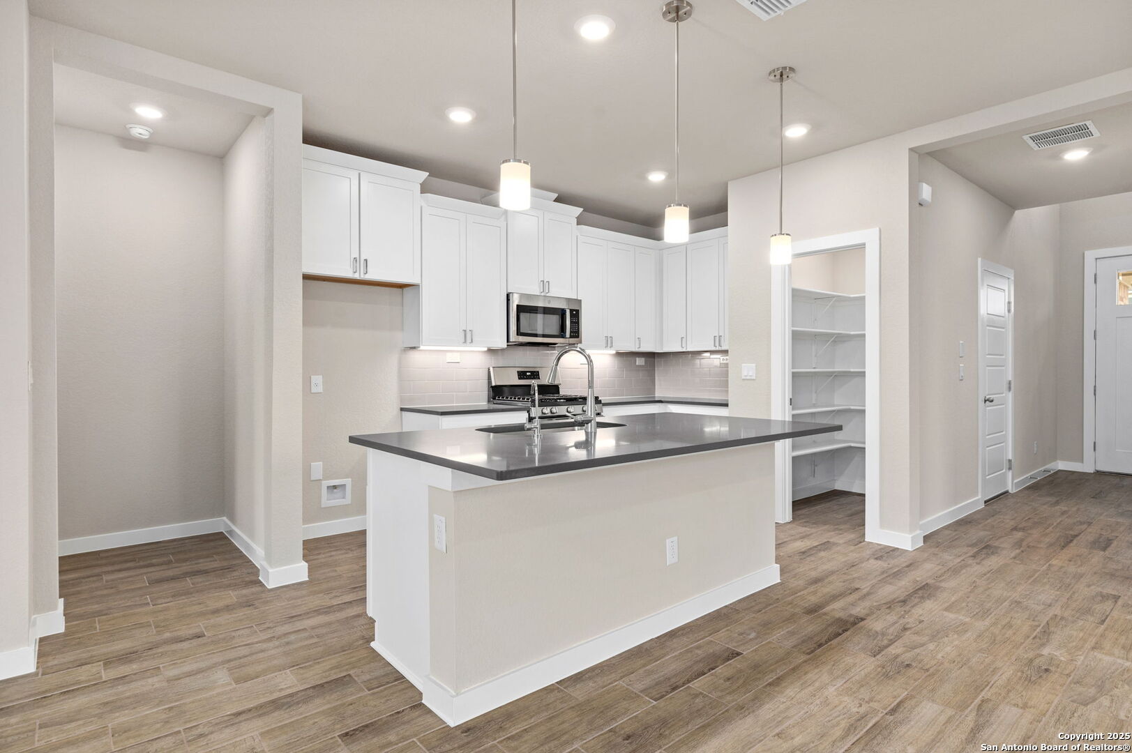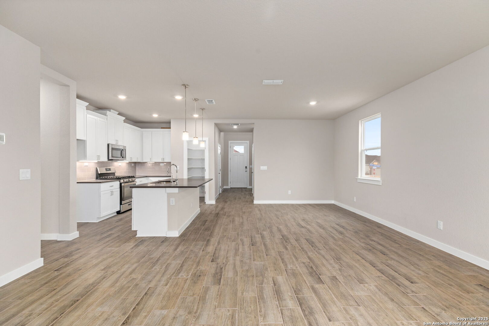 Very generous homesite! Great location close to Lackland AFB. Stunning two-level floorplan featuring 4 bedrooms, 2.5 bathrooms, a 2 car garage, and 2,385 square feet of functional living space. Primary bedroom located on the first floor. The living area is spacious and provides direct access to the backyard. Epoxy insulated garage, tankless water heater, smart home package, energy saving features, landscape package with sprinkler system and so much more. Prices, plans, features, and options are subject to change without notice. All square footage and room dimensions are approximate and vary by elevation. Smart home package includes front door lock, kitchen and front lights, and thermostat. VA Buyers $1 earnest money and NO closing costs.