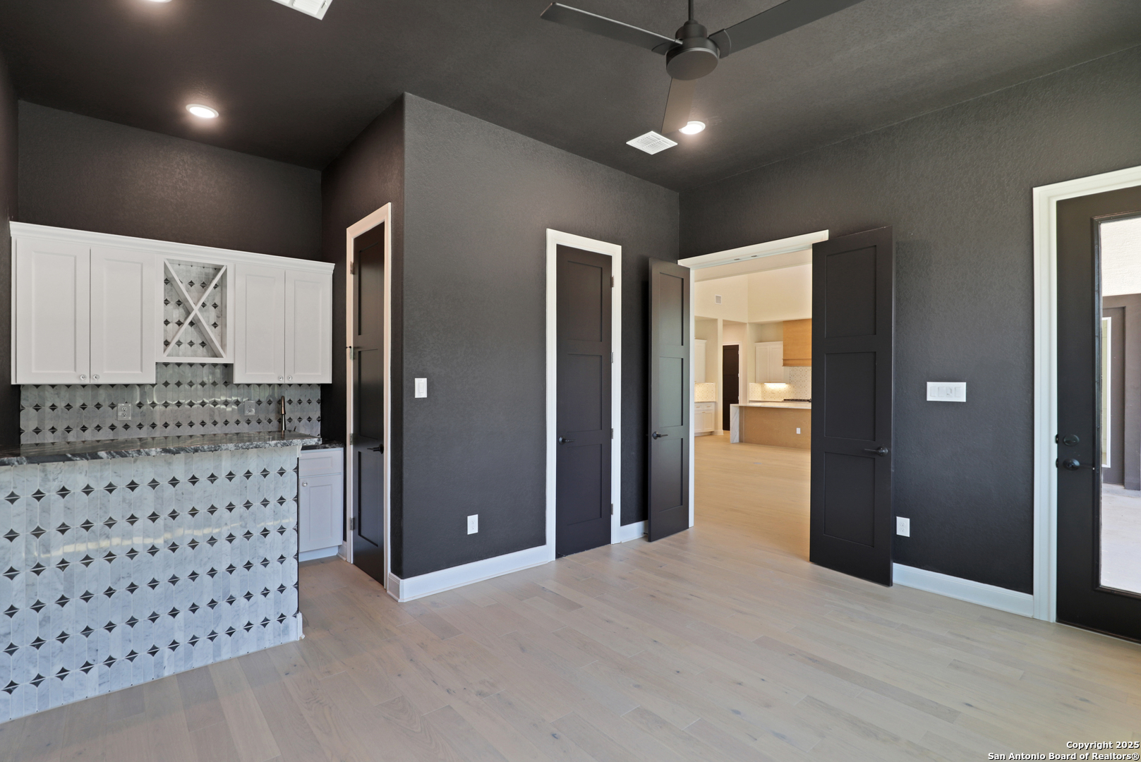 LOOK FOR DETAILED UPGRADE SHEET IN ASSOCIATED DOCS!!!! Stunning Million Dollar Home on Maximino Street! Discover this exceptional corner lot, featuring over 30 majestic oak trees and a secluded, private backyard park. The interior boasts a striking clearstory design with soaring 18-foot ceilings and five clearstory windows that flood the space with natural light. The expansive 22 x 22 living room is highlighted by a two-story tile fireplace wall, creating a warm and inviting atmosphere. Enjoy custom craftsmanship with all-wood cabinets, exquisite granite