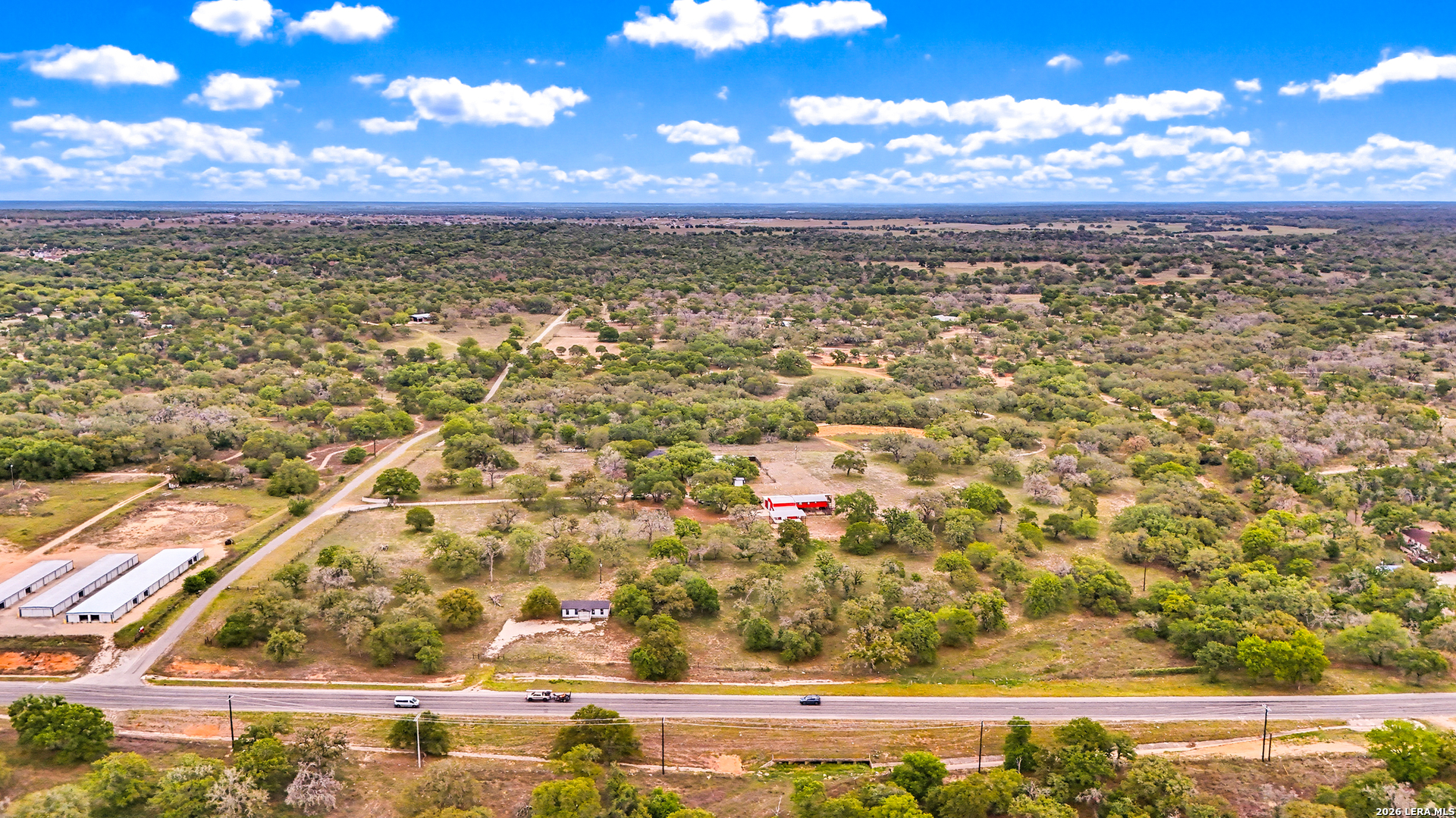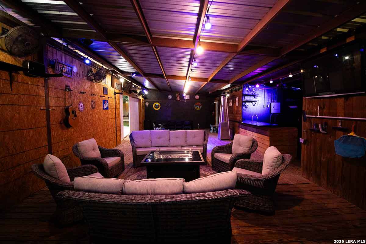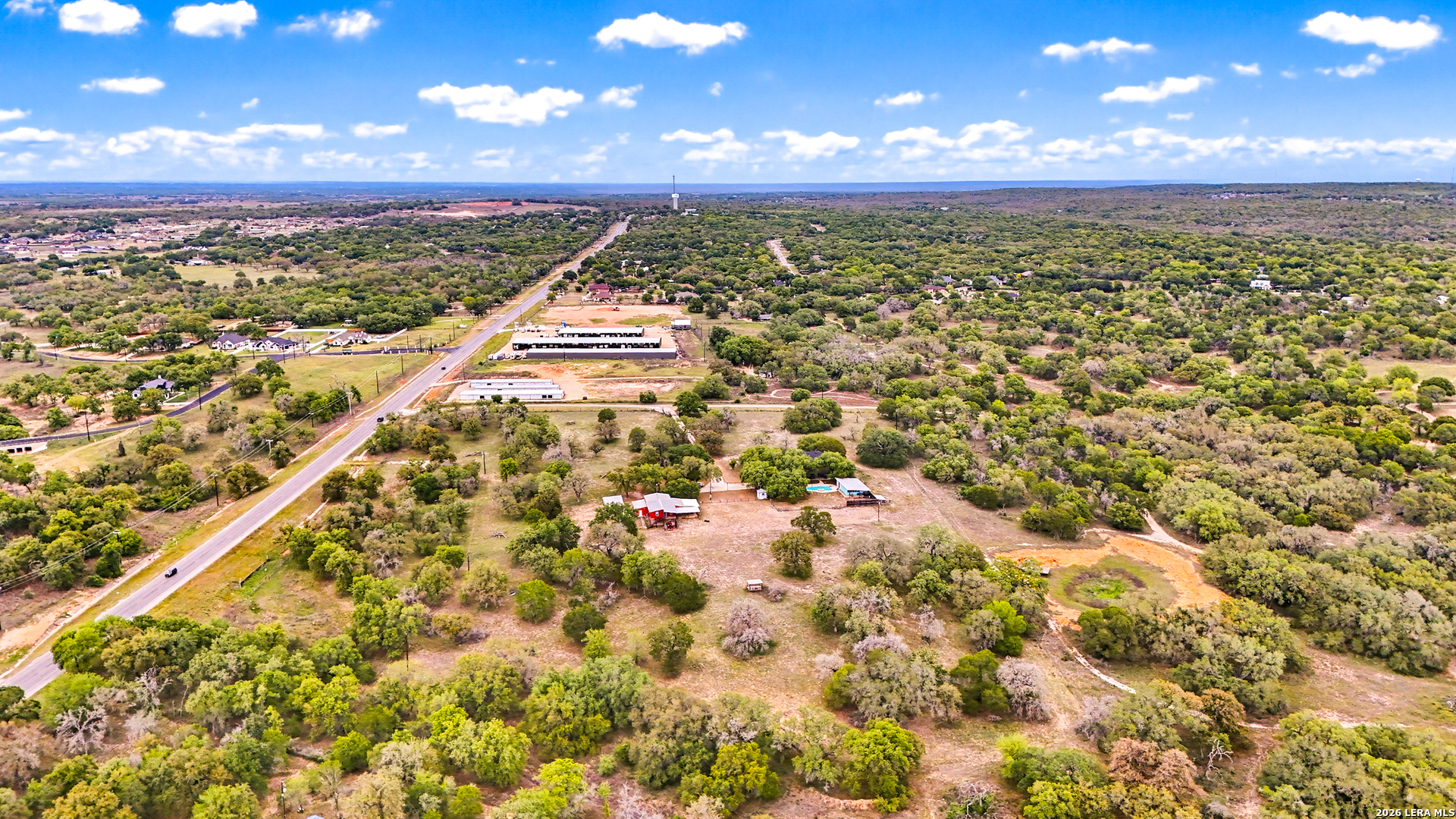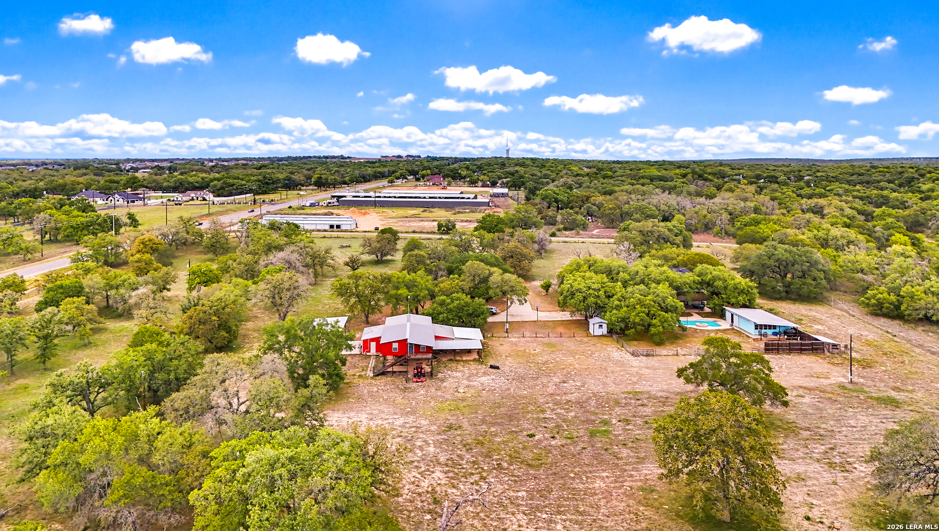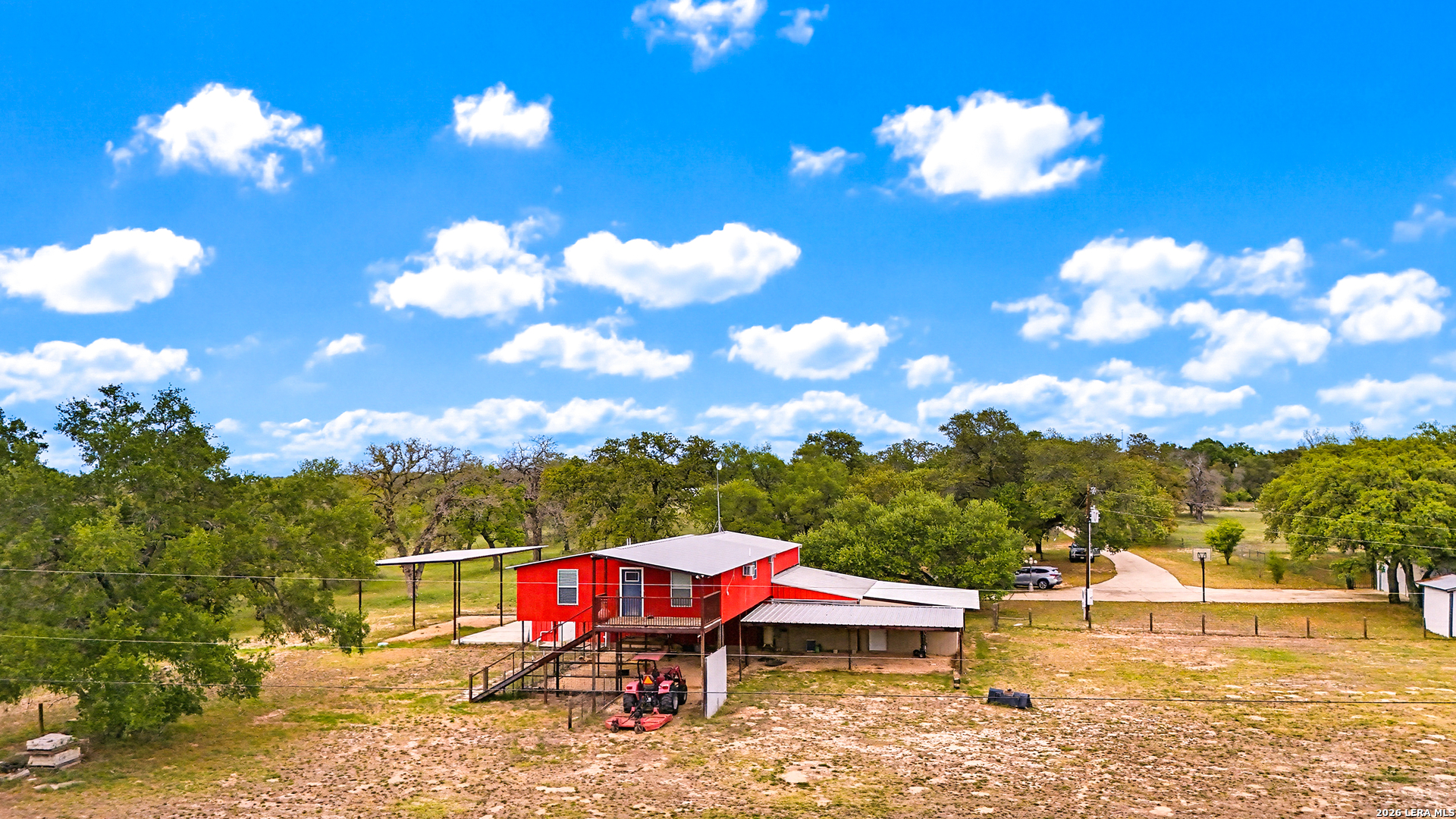 Experience the Lifestyle of your Dreams on this 20 Acres of Pristine Wooded Countryside in La Vernia! Located at the corner of FM 775 and Marx Lane, with So Many Amenities + Numerous Improvements: Spacious Main Home, Pool & Pool House, Oversized Garage, Workshop, Apartment, Office/Cottage ... An ideal arrangement for multi-generational living, family compound, potential rental income, or multi/mixed-use! LAND: Fully fenced & cross-fenced, Unrestricted & Ag-Exempt 20+ Acres with Abundant Heritage Oaks and seasonal Kicaster Creek at the back of the property. Gated Entry + Concrete Drive leading to the Home & Workshop. MAIN HOME: Stately Brick Residence offering Over 3,800 SF of Elegant Living. The Grand Entry greets you, with towering ceiling & curved stairway. Dedicated study/office with built-ins, and Fiber Optic Internet service makes remote work a breeze. Generous Living Room w/Fireplace and built-in cabinetry & shelving, creating the perfect Entertainment Center. Recently Remodeled Gourmet Island Kitchen w/Dual Sinks, gleaming high-level Granite Counters, Black-Stainless Appliances including Double Ovens. Don't miss the Fabulous Laundry Room w/ample cabinetry & counter space + sink! Chic Wood-Tile flooring graces the entire downstairs. Upstairs you'll find 4 spacious bedrooms, each directly adjoining a bathroom, with the Master Retreat featuring a separate sitting area with fireplace, and lavish bath. New roof in Fall 2023, upstairs HVAC replaced in 2020, downstairs HVAC replaced in 2025. Journey out to the backyard and discover the Perfect Venue for Entertaining & Everyday Enjoyment! Expansive Back Patio overlooking the Sparkling POOL & SPA with the POOL HOUSE ready to host your next recreational event, to accommodate year-round enjoyment w/propane heat for pool & spa. The Pool House features a large living/dining area, kitchenette with sink, and bathroom with outdoor-style shower! WORKSHOP: This space is perfect for the serious mechanic, tradesman, handyman, hobby-lover - with abundant storage! Multiple rooms plus loft, 2 overhead doors, and a half-bath make this a practical & tremendously useful asset. Side rooms are climate-controlled and foam-insulated. Additional covered area is ideal for implement storage, and an RV carport w/water hook-up offers further flexibility. APARTMENT: Located adjacent to the Workshop, this upstairs apartment is charming, with wood-style flooring & shiplap ceiling in the living spaces, 2 bedrooms, 1.5 baths, island kitchen, and large laundry room / pantry. OFFICE/COTTAGE: Along FM 775, this unfinished 800 SF building on slab is ready to be transformed according to your needs. MUCH MORE could be said about this exceptional & unique property! With Kicaster Creek frontage, a portion of the land is in 100-year floodplain, however all structures are outside of floodplain per FEMA mapping. Schedule your showing today!