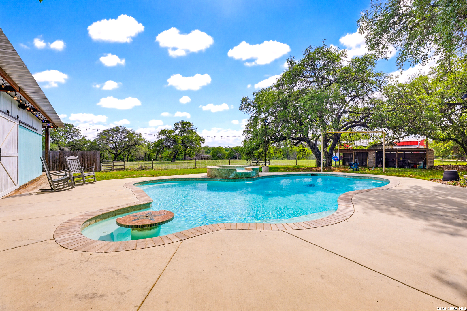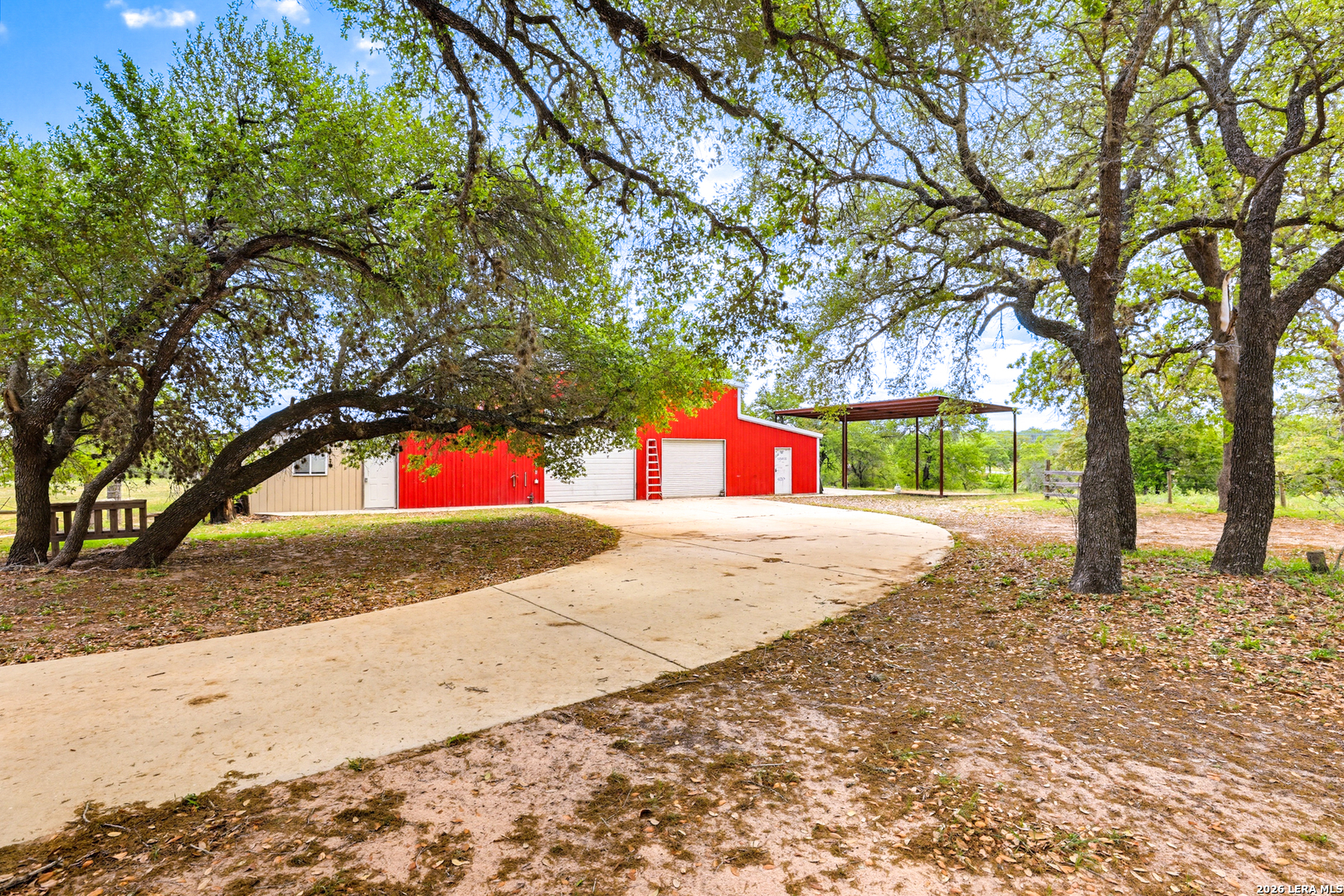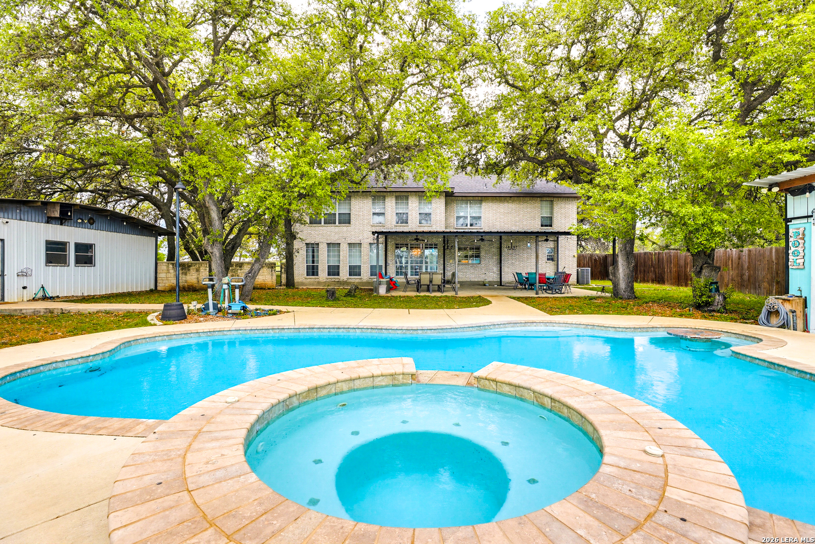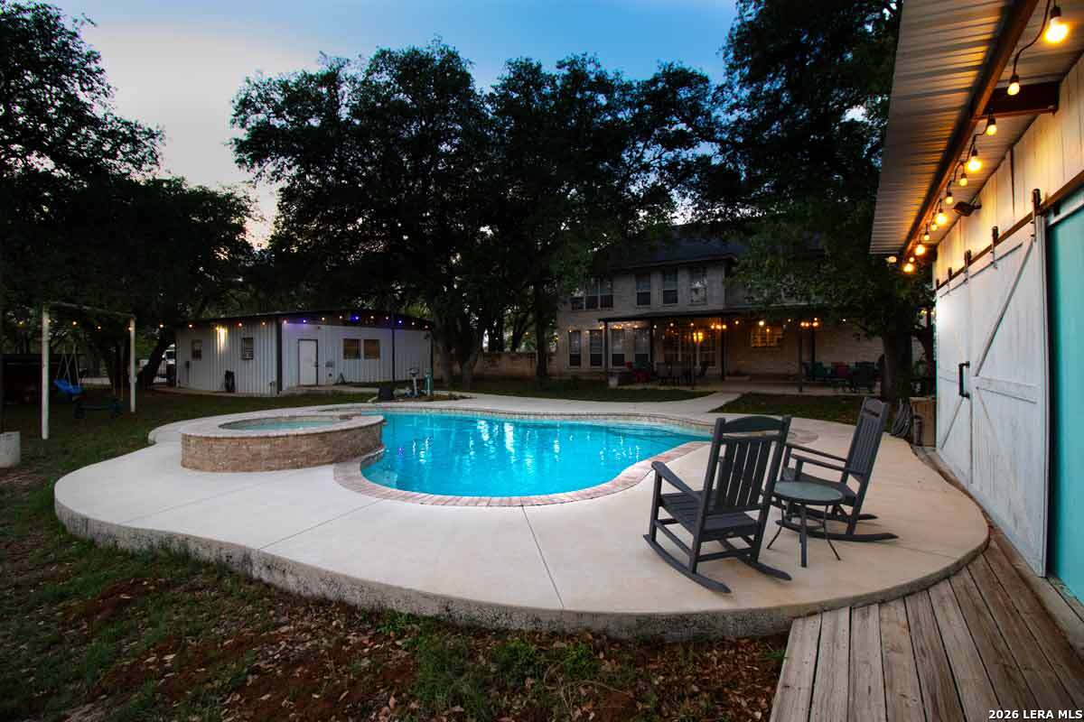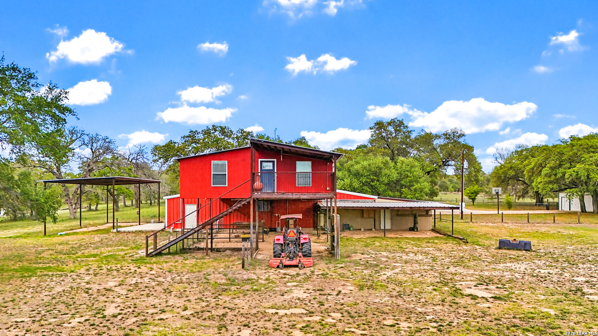 Experience the Lifestyle of your Dreams on this 20 Acres of Pristine Wooded Countryside in La Vernia! Located at the corner of FM 775 and Marx Lane, with So Many Amenities + Numerous Improvements: Spacious Main Home, Pool & Pool House, Oversized Garage, Workshop, Apartment, Office/Cottage ... An ideal arrangement for multi-generational living, family compound, potential rental income, or multi/mixed-use! LAND: Fully fenced & cross-fenced, Unrestricted & Ag-Exempt 20+ Acres with Abundant Heritage Oaks and seasonal Kicaster Creek at the back of the property. Gated Entry + Concrete Drive leading to the Home & Workshop. MAIN HOME: Stately Brick Residence offering Over 3,800 SF of Elegant Living. The Grand Entry greets you, with towering ceiling & curved stairway. Dedicated study/office with built-ins, and Fiber Optic Internet service makes remote work a breeze. Generous Living Room w/Fireplace and built-in cabinetry & shelving, creating the perfect Entertainment Center. Recently Remodeled Gourmet Island Kitchen w/Dual Sinks, gleaming high-level Granite Counters, Black-Stainless Appliances including Double Ovens. Don't miss the Fabulous Laundry Room w/ample cabinetry & counter space + sink! Chic Wood-Tile flooring graces the entire downstairs. Upstairs you'll find 4 spacious bedrooms, each directly adjoining a bathroom, with the Master Retreat featuring a separate sitting area with fireplace, and lavish bath. New roof in Fall 2023, upstairs HVAC replaced in 2020, downstairs HVAC replaced in 2025. Journey out to the backyard and discover the Perfect Venue for Entertaining & Everyday Enjoyment! Expansive Back Patio overlooking the Sparkling POOL & SPA with the POOL HOUSE ready to host your next recreational event, to accommodate year-round enjoyment w/propane heat for pool & spa. The Pool House features a large living/dining area, kitchenette with sink, and bathroom with outdoor-style shower! WORKSHOP: This space is perfect for the serious mechanic, tradesman, handyman, hobby-lover - with abundant storage! Multiple rooms plus loft, 2 overhead doors, and a half-bath make this a practical & tremendously useful asset. Side rooms are climate-controlled and foam-insulated. Additional covered area is ideal for implement storage, and an RV carport w/water hook-up offers further flexibility. APARTMENT: Located adjacent to the Workshop, this upstairs apartment is charming, with wood-style flooring & shiplap ceiling in the living spaces, 2 bedrooms, 1.5 baths, island kitchen, and large laundry room / pantry. OFFICE/COTTAGE: Along FM 775, this unfinished 800 SF building on slab is ready to be transformed according to your needs. MUCH MORE could be said about this exceptional & unique property! With Kicaster Creek frontage, a portion of the land is in 100-year floodplain, however all structures are outside of floodplain per FEMA mapping. Schedule your showing today!