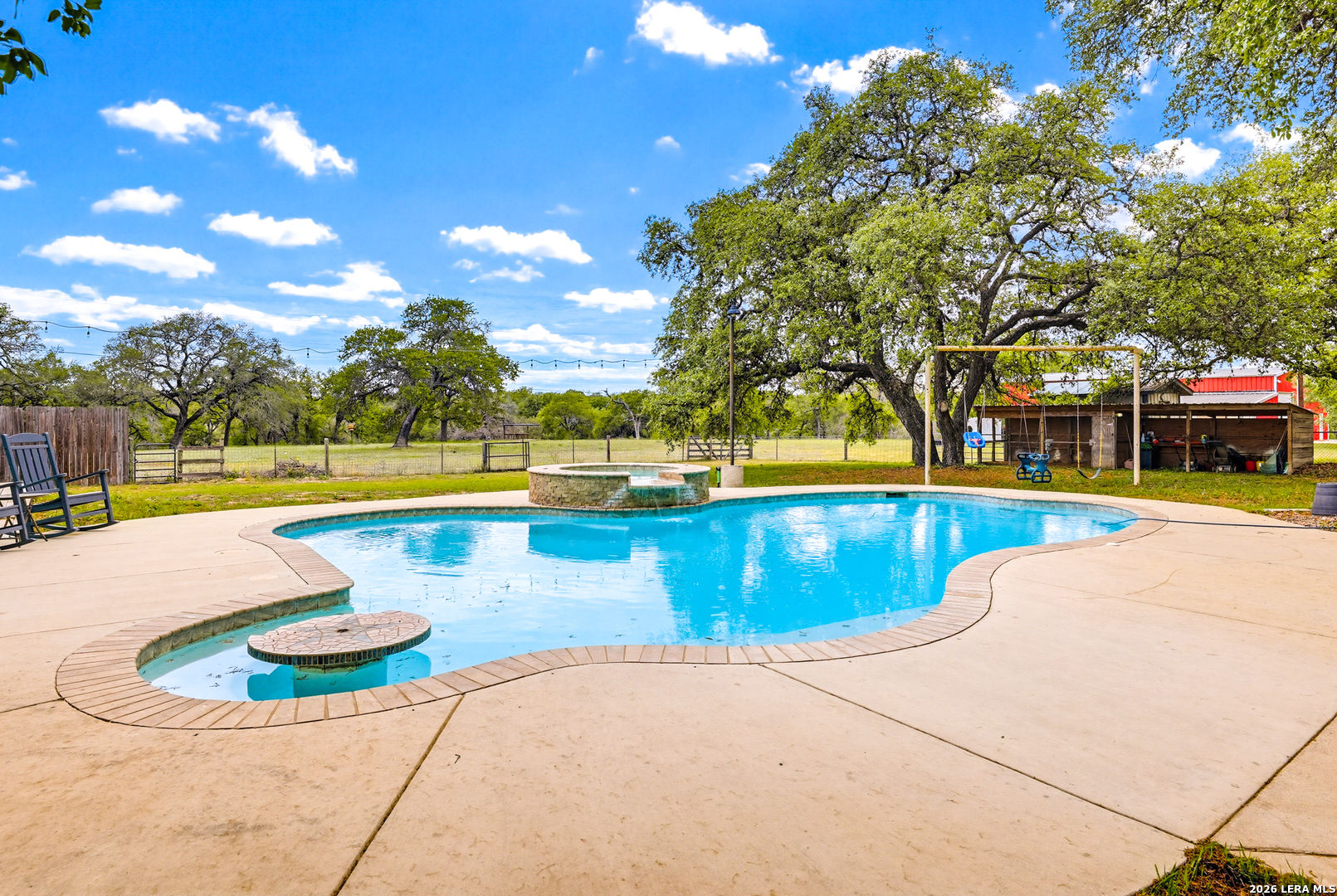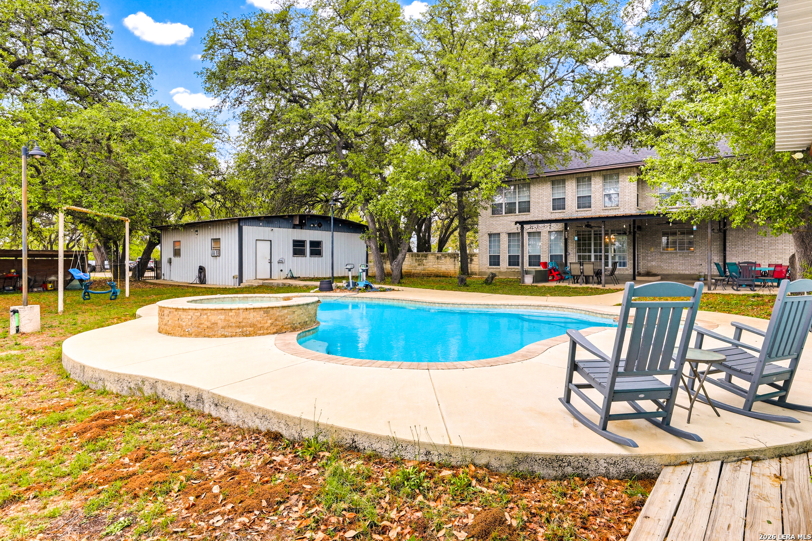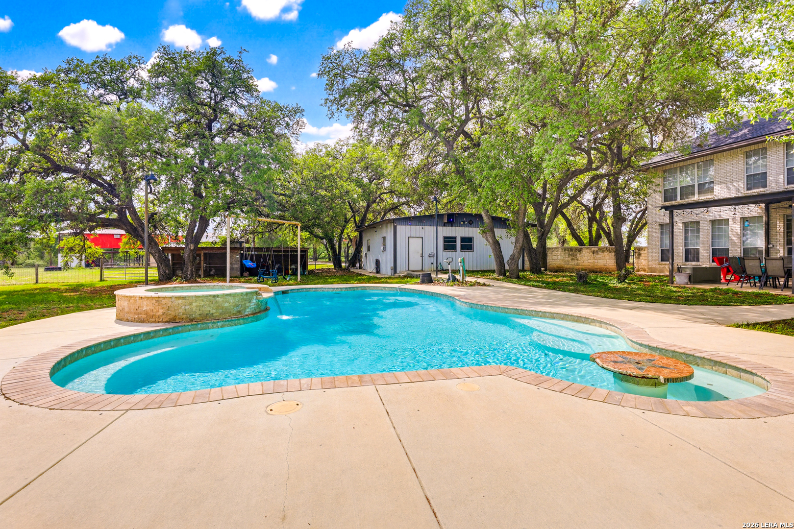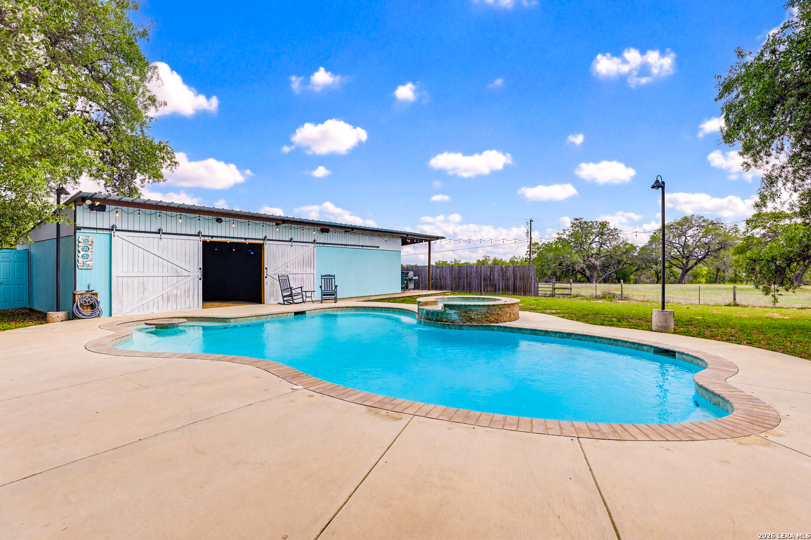 Experience the Lifestyle of your Dreams on this 20 Acres of Pristine Wooded Countryside in La Vernia! Located at the corner of FM 775 and Marx Lane, with So Many Amenities + Numerous Improvements: Spacious Main Home, Pool & Pool House, Oversized Garage, Workshop, Apartment, Office/Cottage ... An ideal arrangement for multi-generational living, family compound, potential rental income, or multi/mixed-use! LAND: Fully fenced & cross-fenced, Unrestricted & Ag-Exempt 20+ Acres with Abundant Heritage Oaks and seasonal Kicaster Creek at the back of the property. Gated Entry + Concrete Drive leading to the Home & Workshop. MAIN HOME: Stately Brick Residence offering Over 3,800 SF of Elegant Living. The Grand Entry greets you, with towering ceiling & curved stairway. Dedicated study/office with built-ins, and Fiber Optic Internet service makes remote work a breeze. Generous Living Room w/Fireplace and built-in cabinetry & shelving, creating the perfect Entertainment Center. Recently Remodeled Gourmet Island Kitchen w/Dual Sinks, gleaming high-level Granite Counters, Black-Stainless Appliances including Double Ovens. Don't miss the Fabulous Laundry Room w/ample cabinetry & counter space + sink! Chic Wood-Tile flooring graces the entire downstairs. Upstairs you'll find 4 spacious bedrooms, each directly adjoining a bathroom, with the Master Retreat featuring a separate sitting area with fireplace, and lavish bath. New roof in Fall 2023, upstairs HVAC replaced in 2020, downstairs HVAC replaced in 2025. Journey out to the backyard and discover the Perfect Venue for Entertaining & Everyday Enjoyment! Expansive Back Patio overlooking the Sparkling POOL & SPA with the POOL HOUSE ready to host your next recreational event, to accommodate year-round enjoyment w/propane heat for pool & spa. The Pool House features a large living/dining area, kitchenette with sink, and bathroom with outdoor-style shower! WORKSHOP: This space is perfect for the serious mechanic, tradesman, handyman, hobby-lover - with abundant storage! Multiple rooms plus loft, 2 overhead doors, and a half-bath make this a practical & tremendously useful asset. Side rooms are climate-controlled and foam-insulated. Additional covered area is ideal for implement storage, and an RV carport w/water hook-up offers further flexibility. APARTMENT: Located adjacent to the Workshop, this upstairs apartment is charming, with wood-style flooring & shiplap ceiling in the living spaces, 2 bedrooms, 1.5 baths, island kitchen, and large laundry room / pantry. OFFICE/COTTAGE: Along FM 775, this unfinished 800 SF building on slab is ready to be transformed according to your needs. MUCH MORE could be said about this exceptional & unique property! With Kicaster Creek frontage, a portion of the land is in 100-year floodplain, however all structures are outside of floodplain per FEMA mapping. Schedule your showing today!