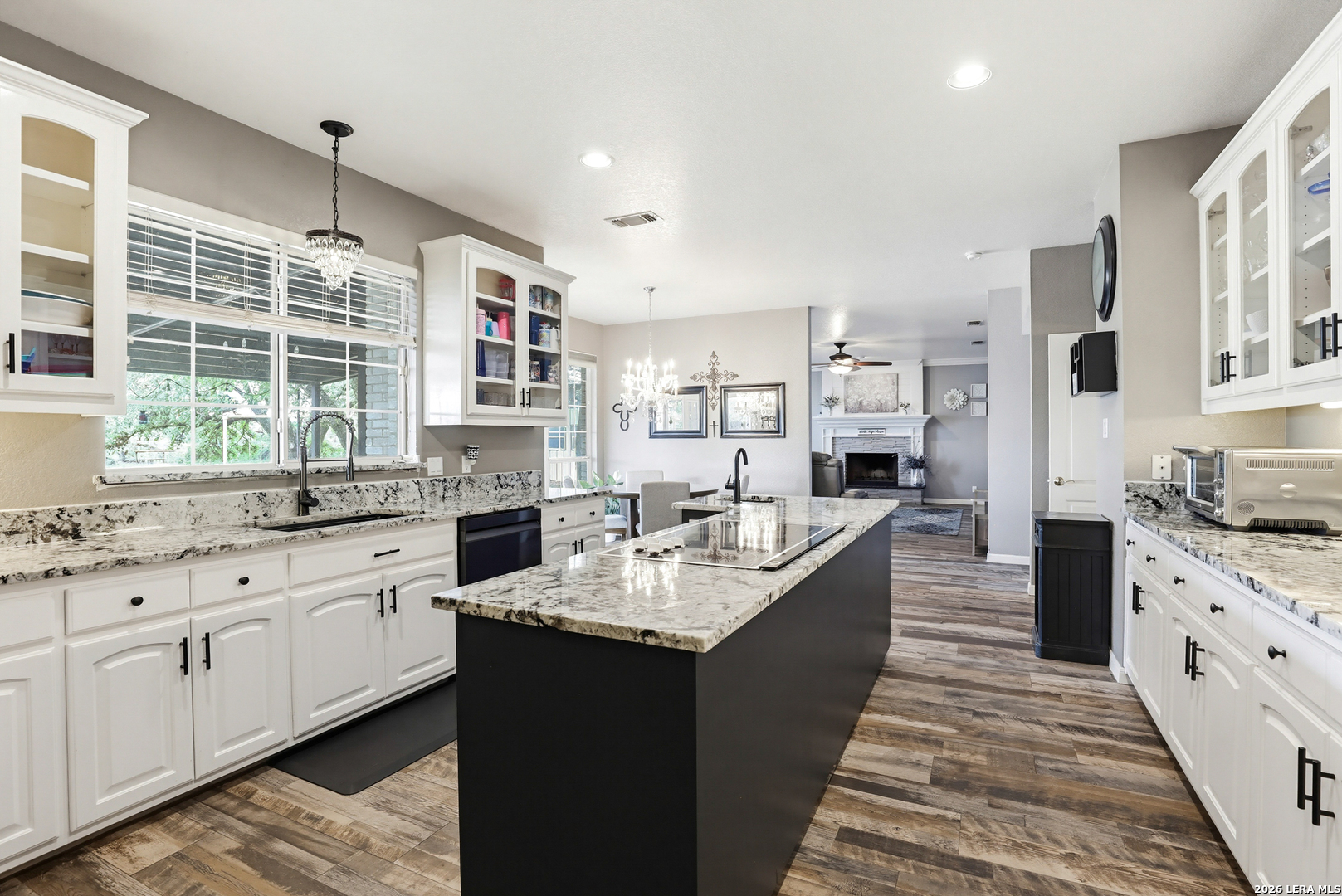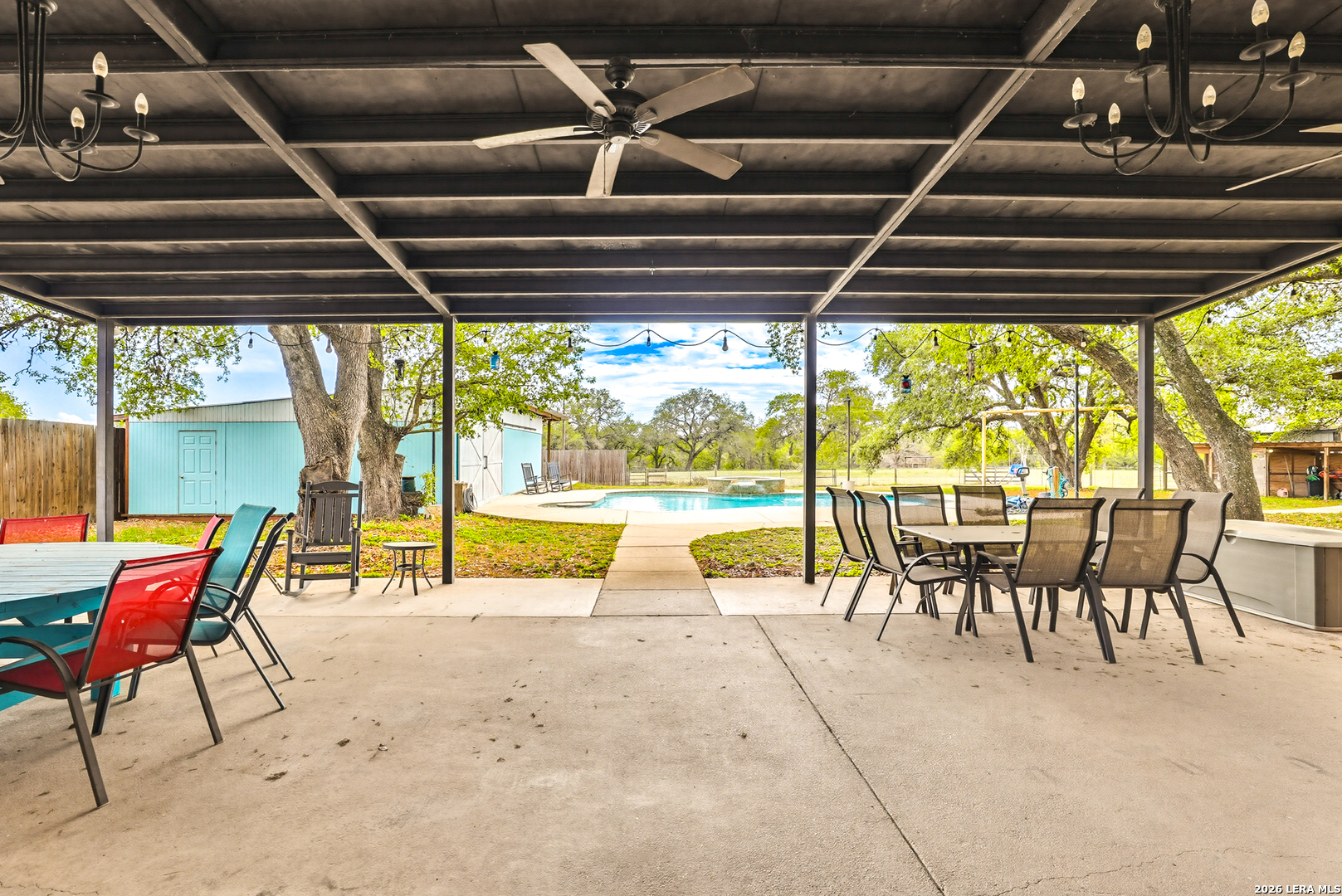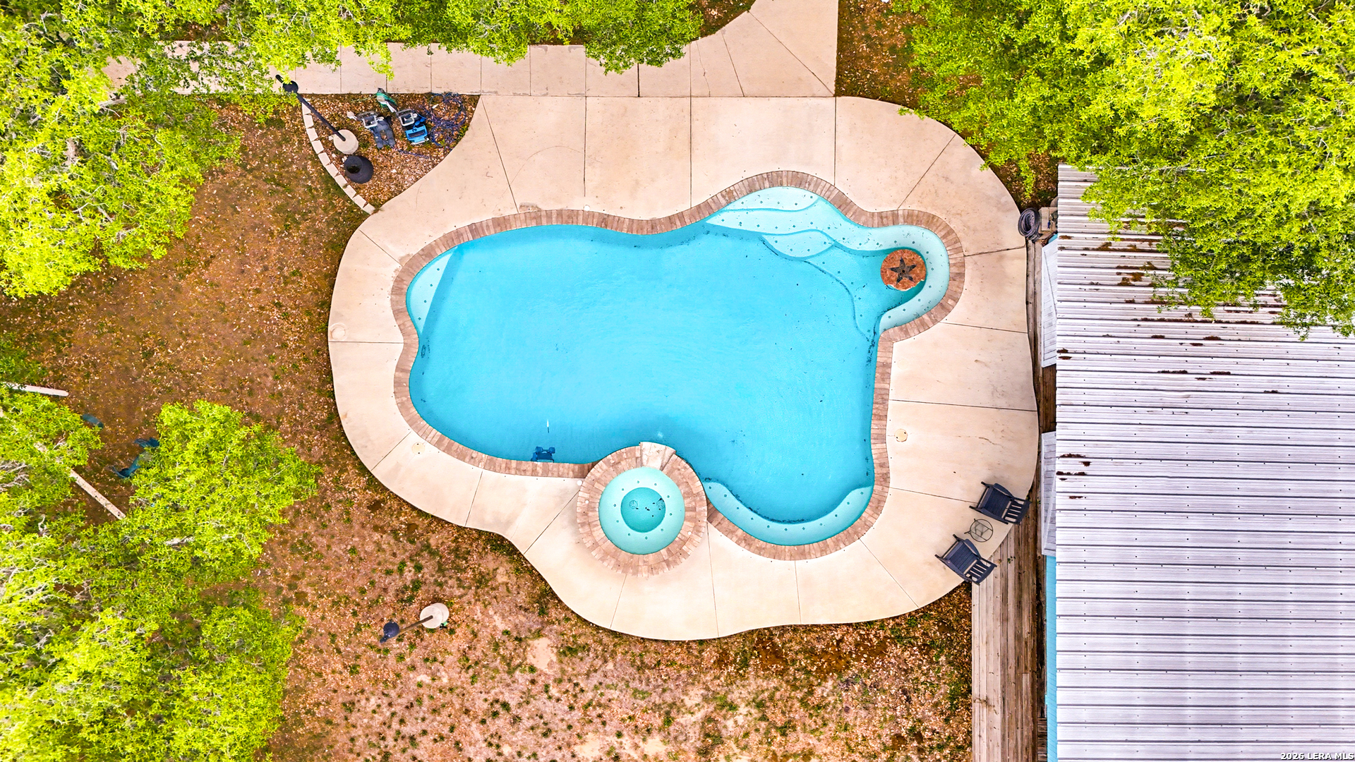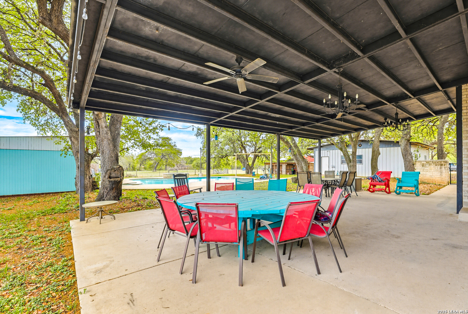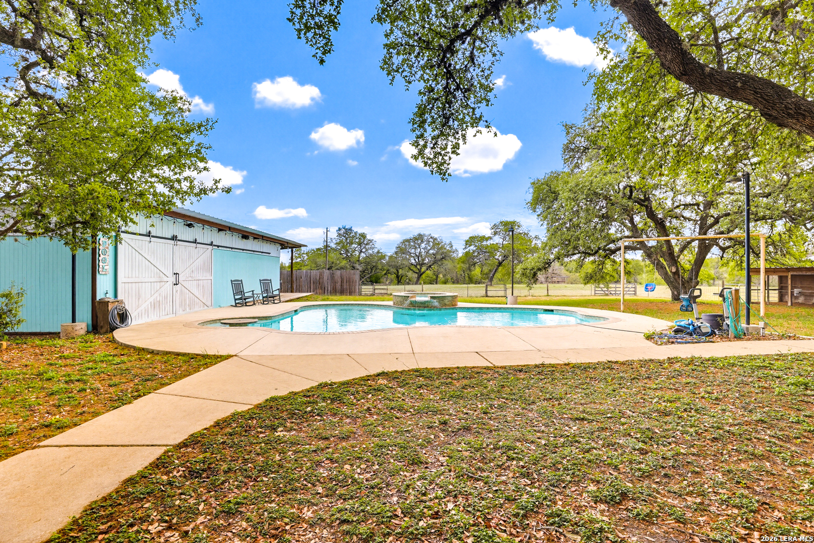 Experience the Lifestyle of your Dreams on this 20 Acres of Pristine Wooded Countryside in La Vernia! Located at the corner of FM 775 and Marx Lane, with So Many Amenities + Numerous Improvements: Spacious Main Home, Pool & Pool House, Oversized Garage, Workshop, Apartment, Office/Cottage ... An ideal arrangement for multi-generational living, family compound, potential rental income, or multi/mixed-use! LAND: Fully fenced & cross-fenced, Unrestricted & Ag-Exempt 20+ Acres with Abundant Heritage Oaks and seasonal Kicaster Creek at the back of the property. Gated Entry + Concrete Drive leading to the Home & Workshop. MAIN HOME: Stately Brick Residence offering Over 3,800 SF of Elegant Living. The Grand Entry greets you, with towering ceiling & curved stairway. Dedicated study/office with built-ins, and Fiber Optic Internet service makes remote work a breeze. Generous Living Room w/Fireplace and built-in cabinetry & shelving, creating the perfect Entertainment Center. Recently Remodeled Gourmet Island Kitchen w/Dual Sinks, gleaming high-level Granite Counters, Black-Stainless Appliances including Double Ovens. Don't miss the Fabulous Laundry Room w/ample cabinetry & counter space + sink! Chic Wood-Tile flooring graces the entire downstairs. Upstairs you'll find 4 spacious bedrooms, each directly adjoining a bathroom, with the Master Retreat featuring a separate sitting area with fireplace, and lavish bath. New roof in Fall 2023, upstairs HVAC replaced in 2020, downstairs HVAC replaced in 2025. Journey out to the backyard and discover the Perfect Venue for Entertaining & Everyday Enjoyment! Expansive Back Patio overlooking the Sparkling POOL & SPA with the POOL HOUSE ready to host your next recreational event, to accommodate year-round enjoyment w/propane heat for pool & spa. The Pool House features a large living/dining area, kitchenette with sink, and bathroom with outdoor-style shower! WORKSHOP: This space is perfect for the serious mechanic, tradesman, handyman, hobby-lover - with abundant storage! Multiple rooms plus loft, 2 overhead doors, and a half-bath make this a practical & tremendously useful asset. Side rooms are climate-controlled and foam-insulated. Additional covered area is ideal for implement storage, and an RV carport w/water hook-up offers further flexibility. APARTMENT: Located adjacent to the Workshop, this upstairs apartment is charming, with wood-style flooring & shiplap ceiling in the living spaces, 2 bedrooms, 1.5 baths, island kitchen, and large laundry room / pantry. OFFICE/COTTAGE: Along FM 775, this unfinished 800 SF building on slab is ready to be transformed according to your needs. MUCH MORE could be said about this exceptional & unique property! With Kicaster Creek frontage, a portion of the land is in 100-year floodplain, however all structures are outside of floodplain per FEMA mapping. Schedule your showing today!