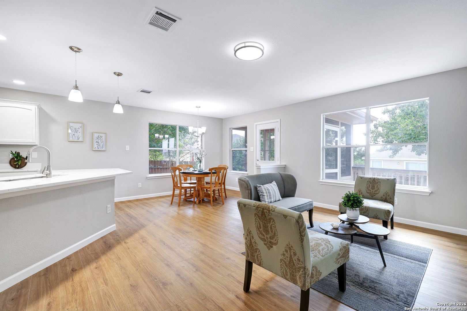 Move in Ready and Completely Updated 1 story home. Open floor plan with Quartz Countertops in Kitchen and Baths. Kitchen cabinets freshly painted White, with New Microwave and Dishwasher, New Vinyl Plank Flooring throughout all main areas to include bathrooms and New Carpet in bedrooms. Interior of home freshly painted. Backyard features, Screened in Patio and additional deck space for Grilling and chilling! All you need to do it just pack your bags and ready for Move in! Neighborhood Pool and Playground. Conveniently located to Lackland AFB, Shopping and more.
