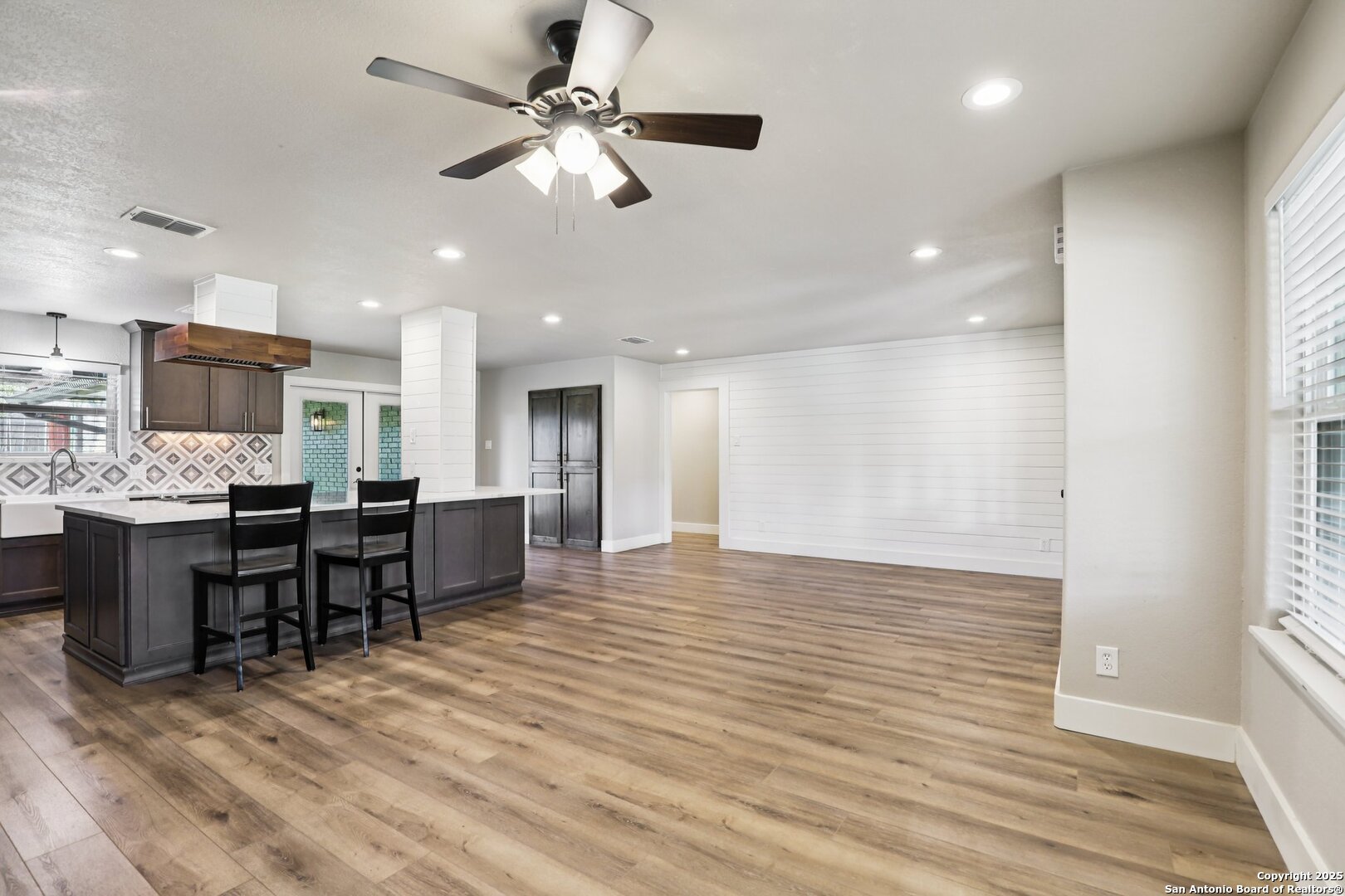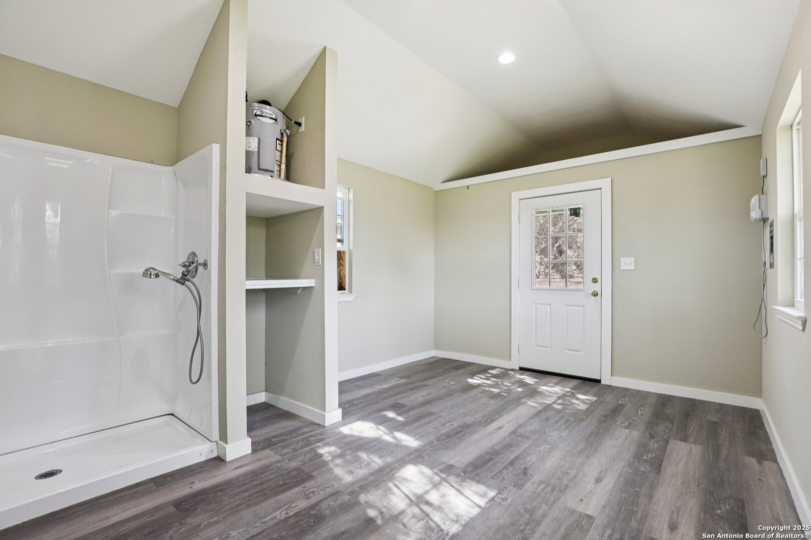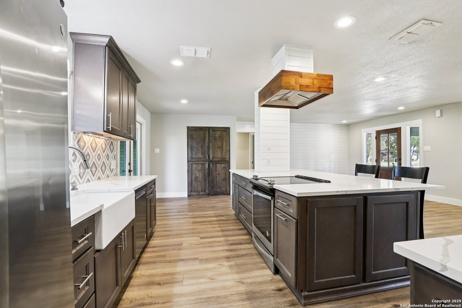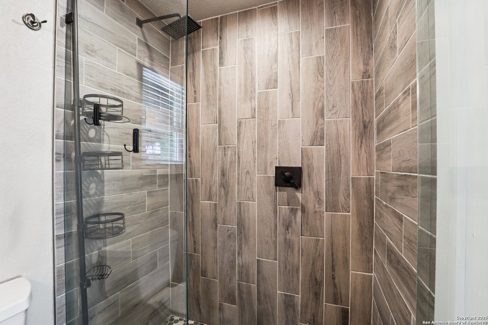 Drive up the circular driveway to this beautifully updated farmhouse-style home, perfectly situated on a large, private lot shaded by mature oak trees in a quiet, established neighborhood with no HOA. Thoughtful updates throughout include a newer roof and HVAC system, no carpet, modern farmhouse lighting, barn doors, and a stunning 9-foot island that anchors the heart of the home. Gorgeous quartz and leathered granite countertops provide both style and durability, creating a space that is as functional as it is inviting. The private primary bedroom is tucked away at the back of the home, offering a peaceful retreat, while two additional spacious bedrooms provide comfortable accommodations for family or guests. Step outside to a covered patio overlooking a generous backyard, perfect for entertaining or relaxing. The property also features a large workshop/shed with a window unit and shower, attached lawn mower garage, and an additional dog kennel, ideal for hobbyists, storage, or extra workspace. Enjoy added privacy as the property backs to a larger tract of land, creating a serene setting rarely found. Located just minutes from Starcke Park, residents can enjoy golf, picnic and BBQ areas, playgrounds, and access to the scenic Guadalupe River. With convenient access to San Antonio, Austin, and San Marcos, this home offers the perfect blend of Hill Country tranquility and city convenience. This exceptional property truly checks all the boxes. Schedule your showing today and make this one home.