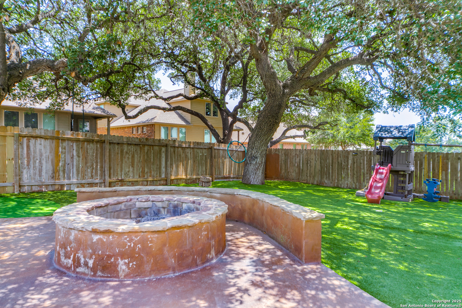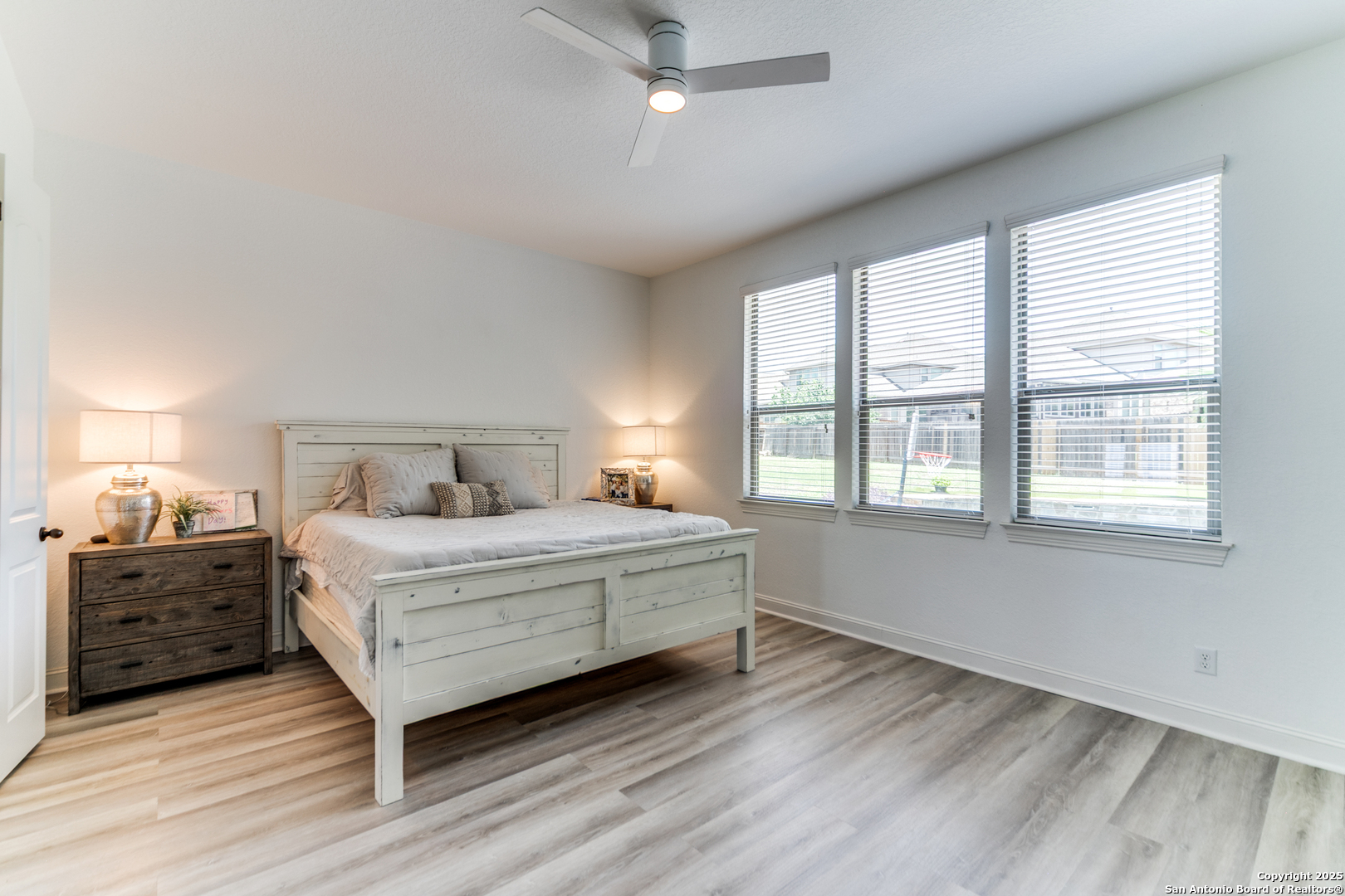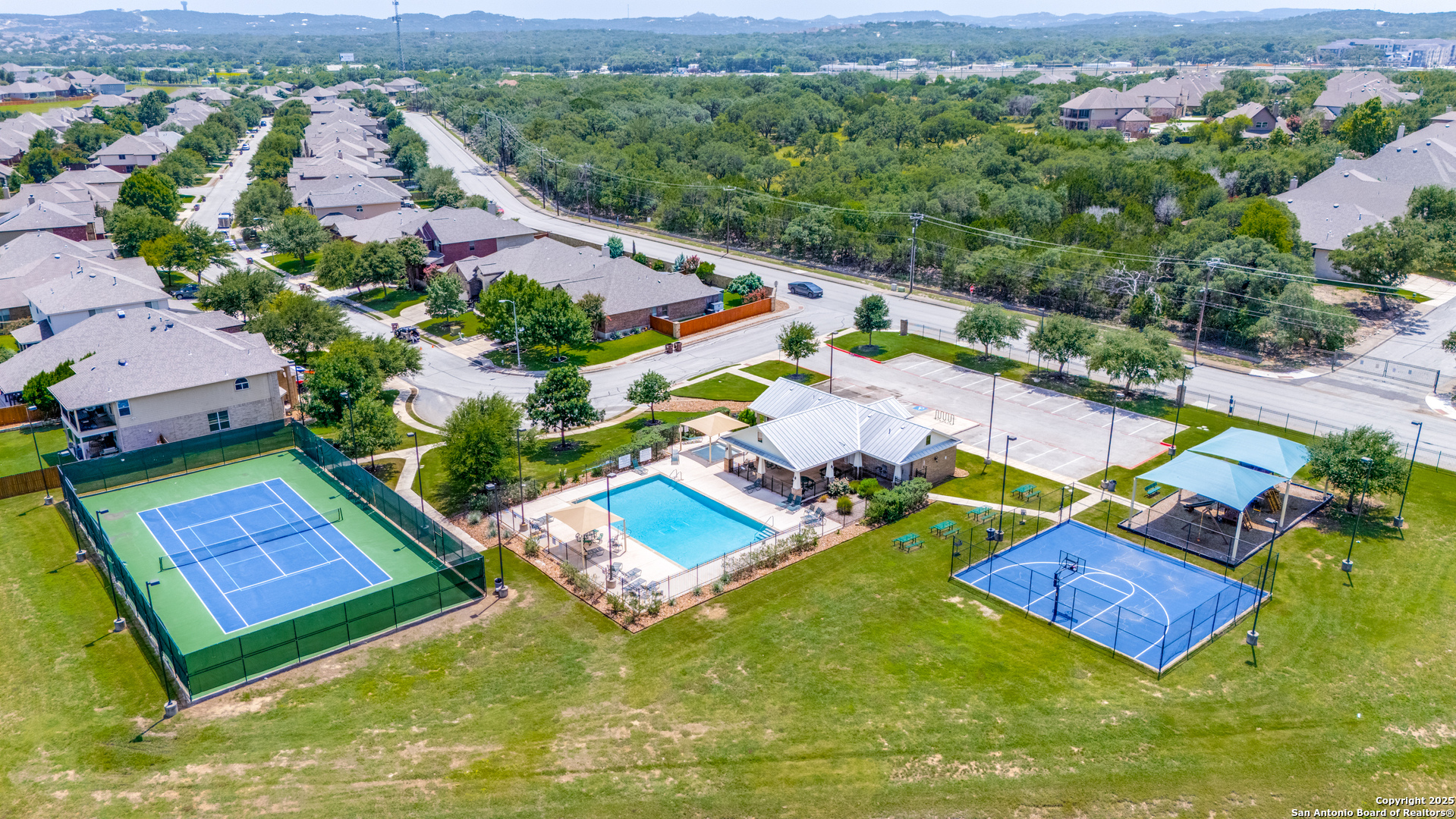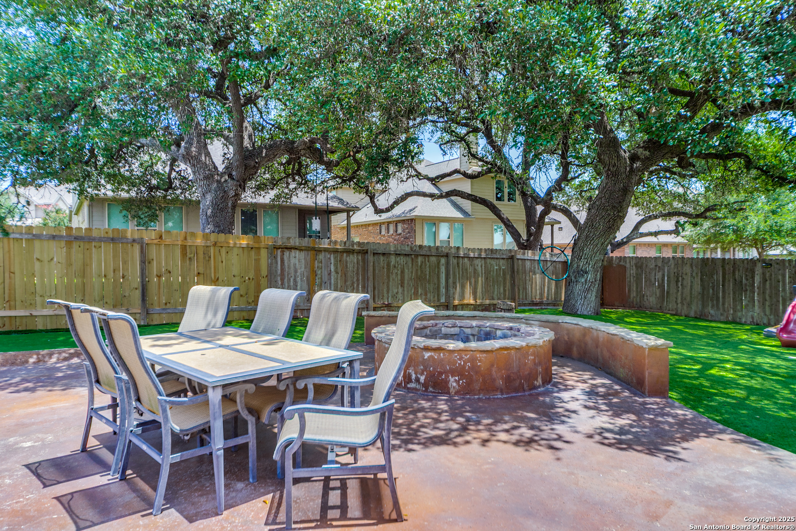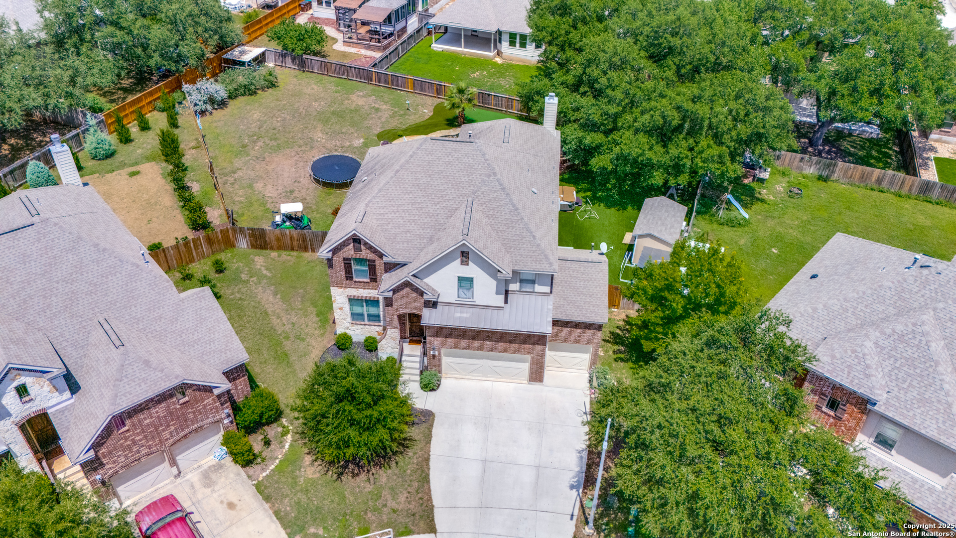 Nestled in a peaceful cul-de-sac with a sparkling pool, this beautifully maintained 5-bedroom, 3.5-bathroom residence offers the perfect blend of comfort, style, and privacy. From the moment you arrive, you'll appreciate the inviting curb appeal and thoughtfully designed layout, ideal for both gatherings and quiet evenings at home. Step inside to find an open-concept living area filled with natural light that blends seamlessly into a modern kitchen with stainless steel appliances. The kitchen also boasts granite countertops, upgraded glass front cabinets, gas range, a stylish neutral backsplash, breakfast nook, and flexible bar seating area. The cozy family room, complete with a stone fireplace, is perfectly situated. The formal dining room and elevated flooring throughout the main floor complete the downstairs gathering spaces. The expansive, main floor primary suite, features a luxurious en-suite bathroom, equipped with a separate bathtub and shower, solid surface countertops, dual vanity, and a large customized closet. At the top of the stairs, you will find a generous sized game room offering flexibility and ample space for everyone. Four additional bedrooms are also located upstairs and offer flexibility for guests or home offices. Two bedrooms are joined by a Jack and Jill bathroom, while another bedroom has an en-suite bathroom that also has access to the game room. Both secondary bathrooms have upgraded solid surface countertops and faucets. Outside, enjoy your own private oasis with a huge backyard, a sparkling pool with water feature, a custom built fire pit with seating, and plenty of space for outdoor dining and play. NEW ROOF installed in July 2025! Whether you're hosting summer parties or relaxing under the stars, this backyard is made for memories. Located in a cul-de-sac with minimal traffic, this home provides a quiet retreat with easy access to top-rated Boerne ISD schools, shopping, and dining. The gated Sablechase Subdivision also includes a neighborhood pool, clubhouse, basketball and tennis courts, and a playground. Don't miss this rare opportunity to own a spacious, move-in ready home with all the amenities you've been searching for!