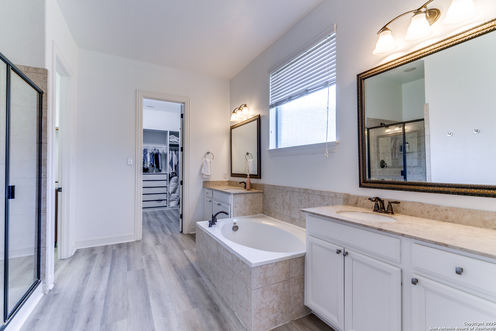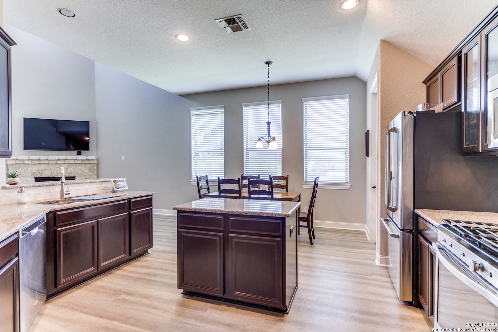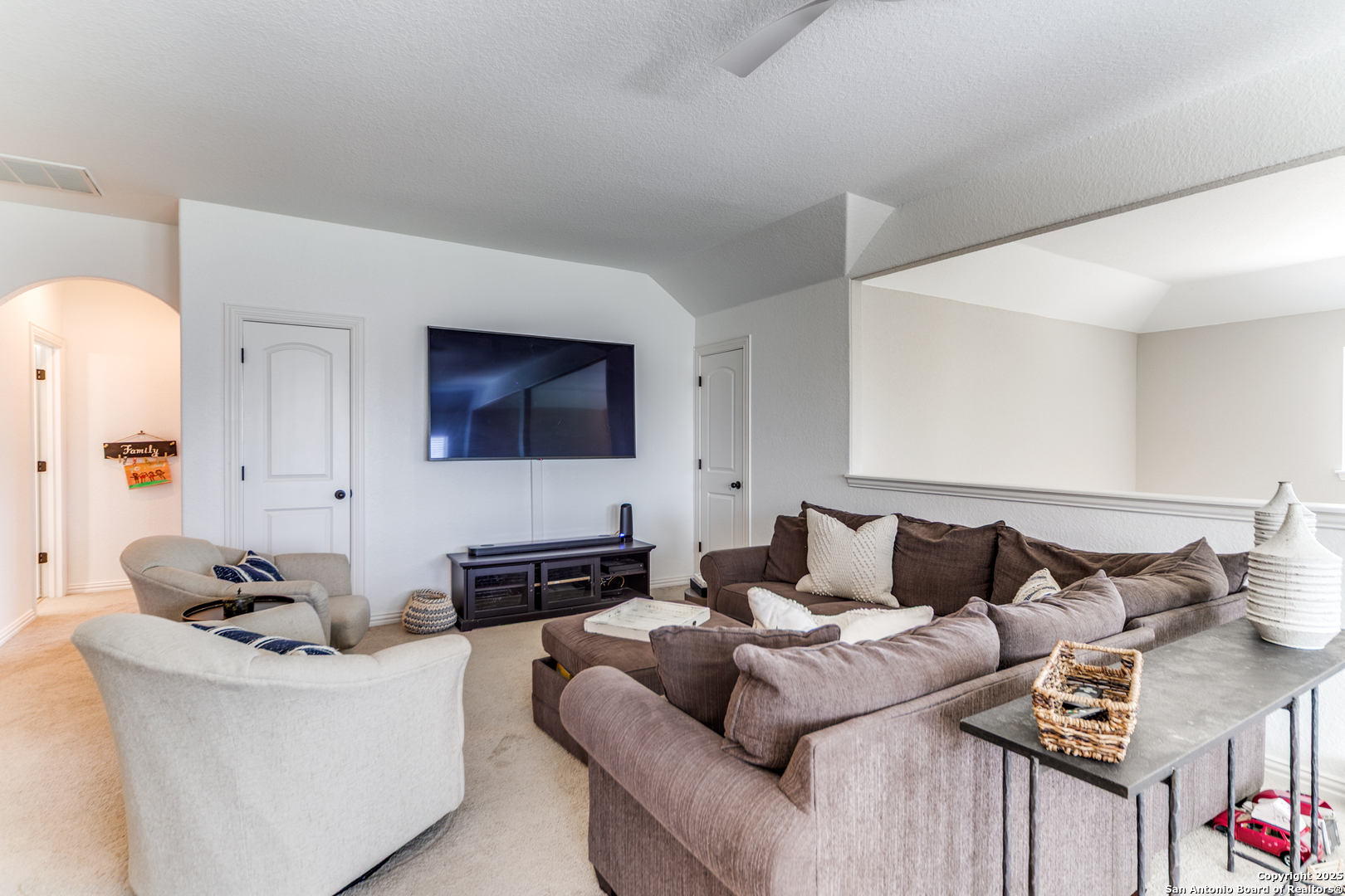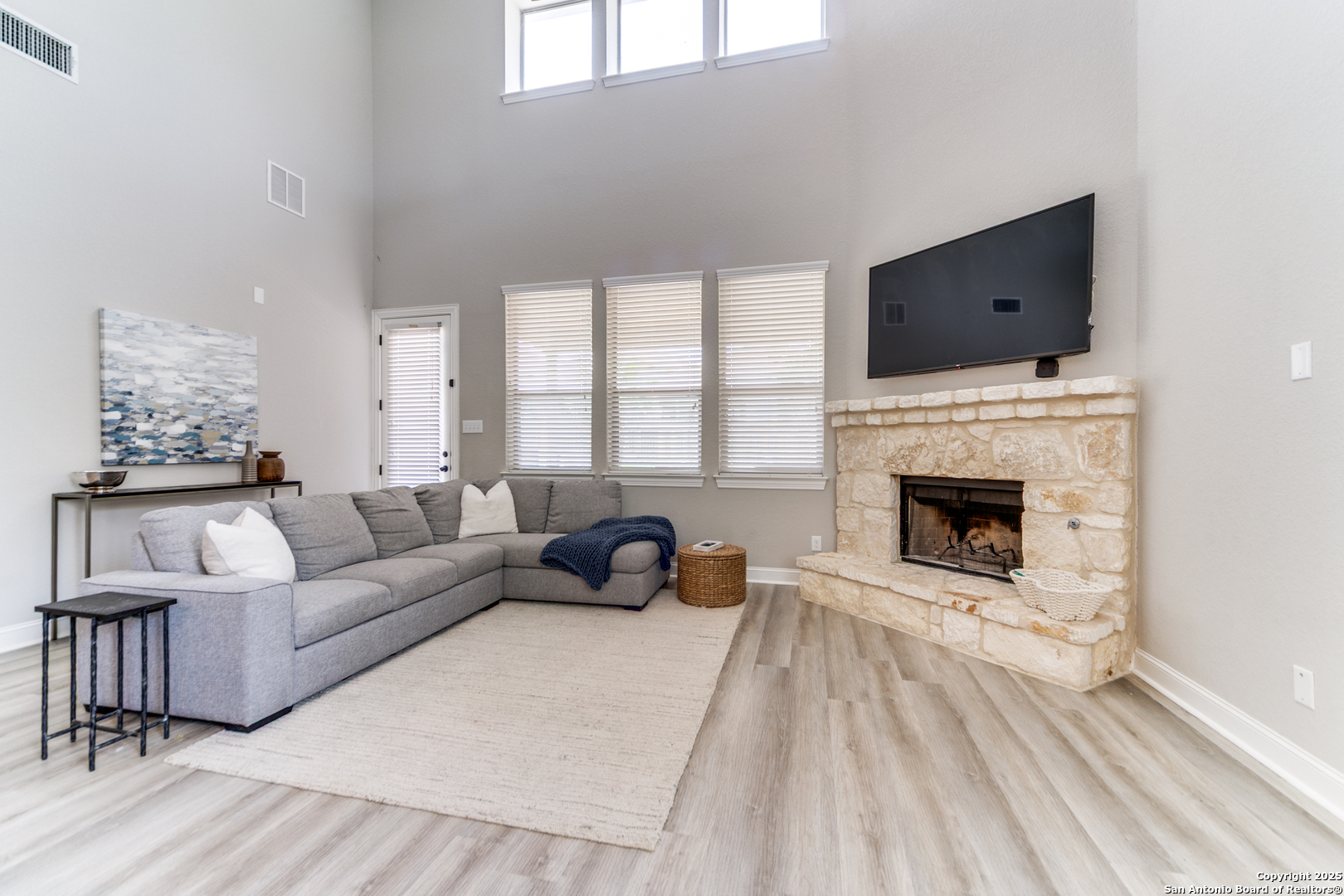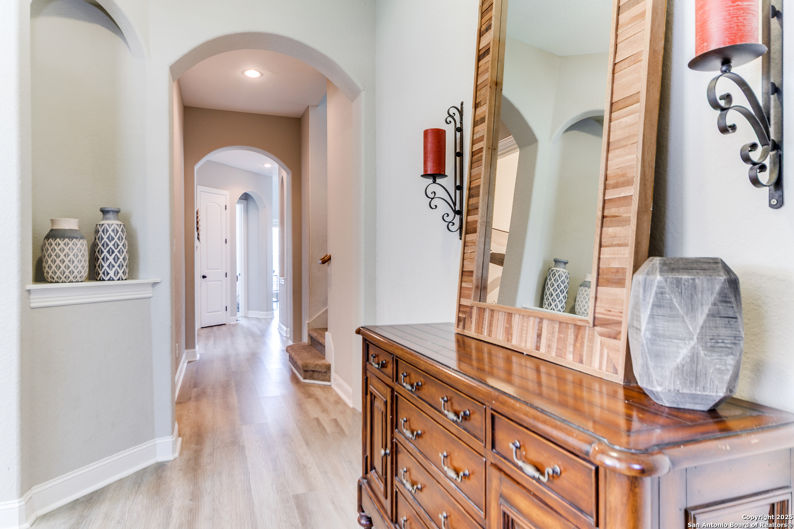 Nestled in a peaceful cul-de-sac with a sparkling pool, this beautifully maintained 5-bedroom, 3.5-bathroom residence offers the perfect blend of comfort, style, and privacy. From the moment you arrive, you'll appreciate the inviting curb appeal and thoughtfully designed layout, ideal for both gatherings and quiet evenings at home. Step inside to find an open-concept living area filled with natural light that blends seamlessly into a modern kitchen with stainless steel appliances. The kitchen also boasts granite countertops, upgraded glass front cabinets, gas range, a stylish neutral backsplash, breakfast nook, and flexible bar seating area. The cozy family room, complete with a stone fireplace, is perfectly situated. The formal dining room and elevated flooring throughout the main floor complete the downstairs gathering spaces. The expansive, main floor primary suite, features a luxurious en-suite bathroom, equipped with a separate bathtub and shower, solid surface countertops, dual vanity, and a large customized closet. At the top of the stairs, you will find a generous sized game room offering flexibility and ample space for everyone. Four additional bedrooms are also located upstairs and offer flexibility for guests or home offices. Two bedrooms are joined by a Jack and Jill bathroom, while another bedroom has an en-suite bathroom that also has access to the game room. Both secondary bathrooms have upgraded solid surface countertops and faucets. Outside, enjoy your own private oasis with a huge backyard, a sparkling pool with water feature, a custom built fire pit with seating, and plenty of space for outdoor dining and play. NEW ROOF installed in July 2025! Whether you're hosting summer parties or relaxing under the stars, this backyard is made for memories. Located in a cul-de-sac with minimal traffic, this home provides a quiet retreat with easy access to top-rated Boerne ISD schools, shopping, and dining. The gated Sablechase Subdivision also includes a neighborhood pool, clubhouse, basketball and tennis courts, and a playground. Don't miss this rare opportunity to own a spacious, move-in ready home with all the amenities you've been searching for!