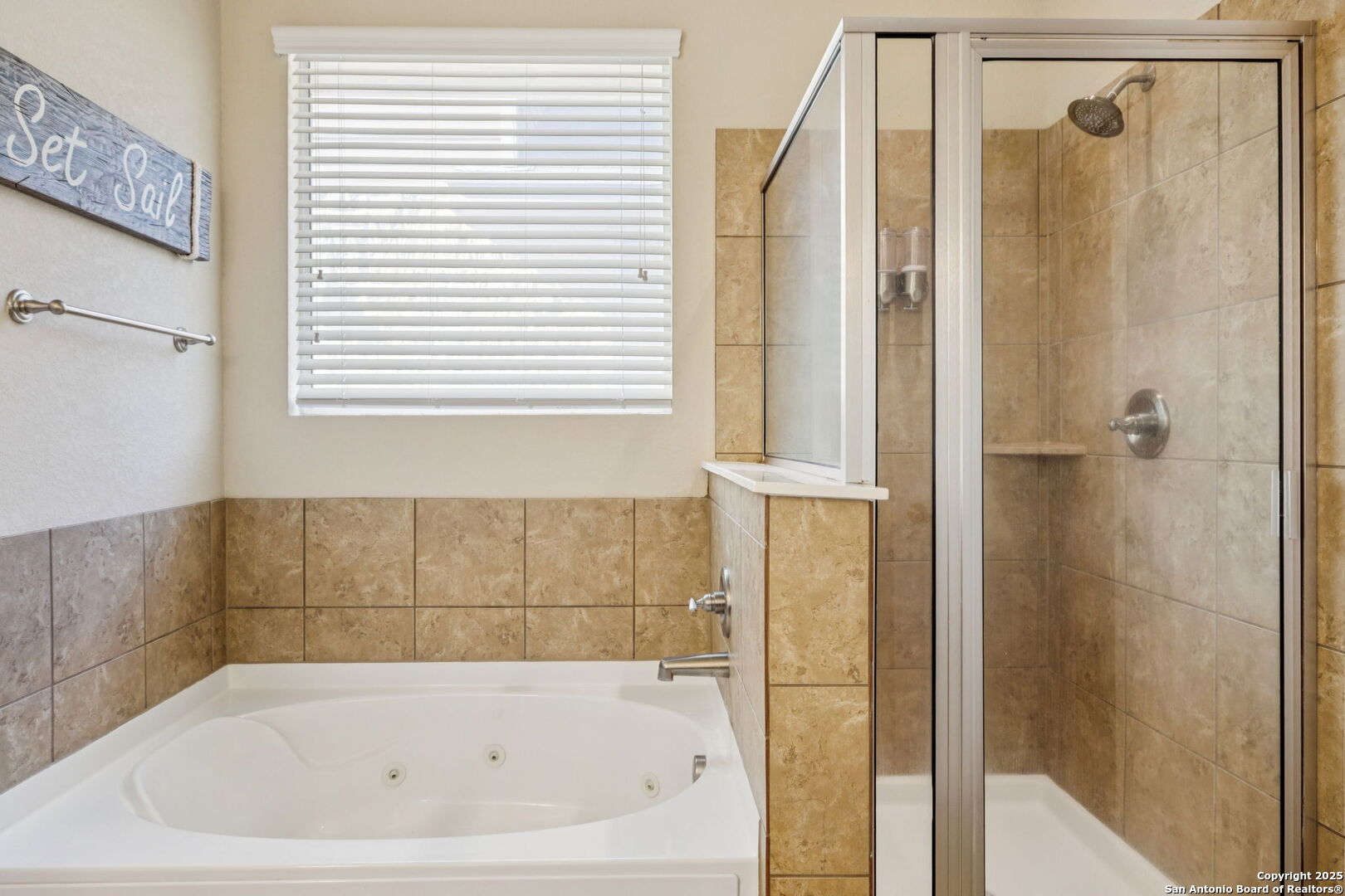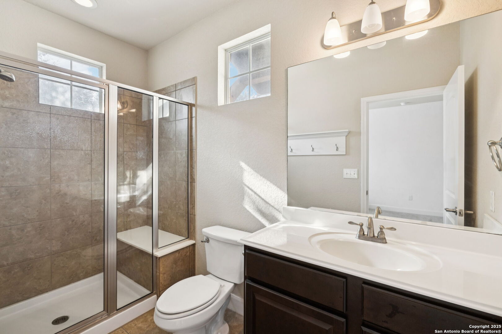 Spacious and flexible in 78254! This 5-bedroom, 4.5-bath, 3,059 sq. ft. home delivers room to spread out and real multi-generational living potential-think in-laws, long-term guests, or a private work/live setup. A light, open main area connects living/dining to a generous kitchen with plenty of storage and prep space. The private primary retreat includes an en-suite bath and walk-in closet; well-sized secondary bedrooms provide great separation. Outside, a level backyard is ready for pets, play, and weekend grilling. Peace of mind: the roof was recently replaced and includes a 50-year transferable warranty (per seller). Convenient to Loop 1604, Culebra, shopping, dining, and area parks-move in and make it yours.