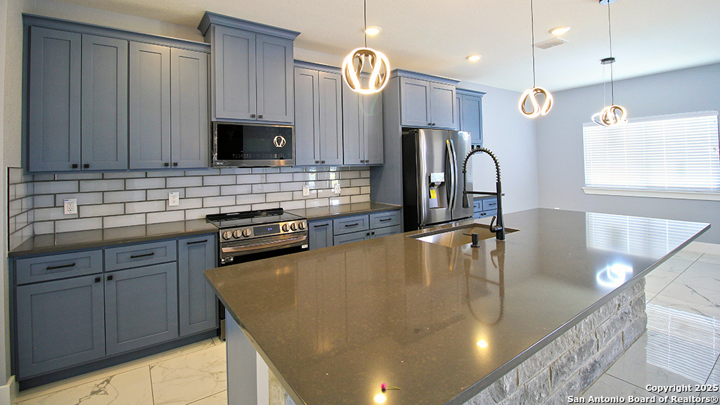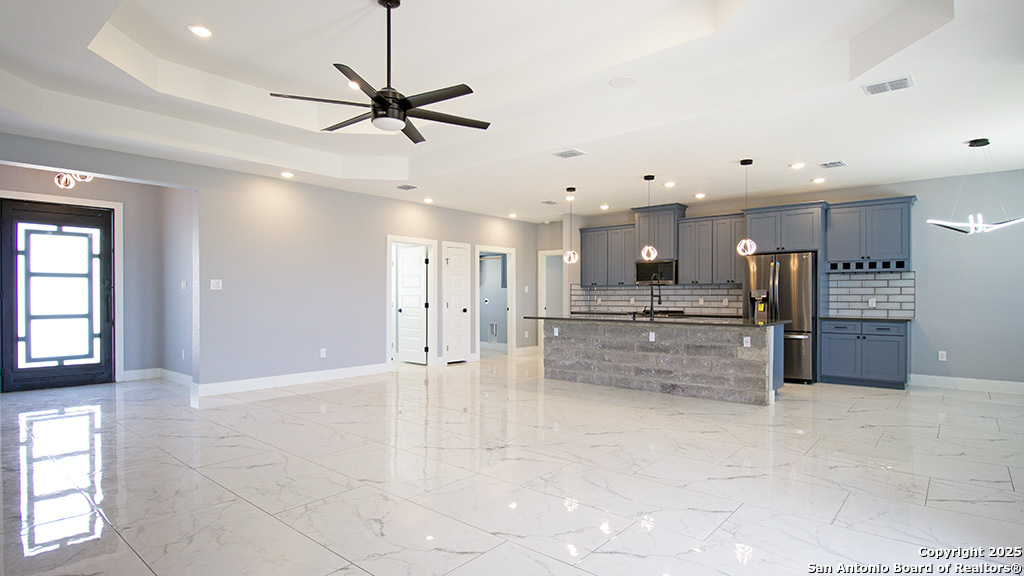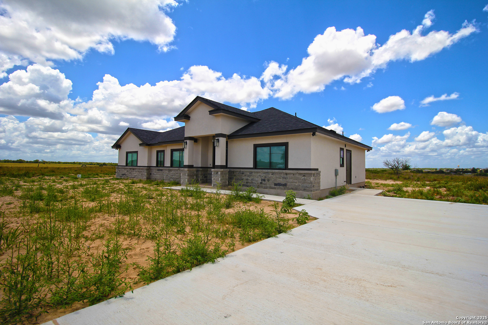 WOW! This stunning home is priced to sell- the builder is ready to let it go!! Looking at ALL offers! This 4-bed, 2-bath new construction home is where contemporary meets the Hill Country. Situated on just over an acre with an open floor plan. This home features ceramic tile, high ceilings, and a gourmet kitchen with a large island-perfect for entertaining. A flexible bonus room serves as an office or 4th bedroom. Enjoy spa-like bathrooms with a walk-in shower and garden tub, custom cabinetry, recessed lighting, and smart home features like a Ring doorbell, built-in wall safe, smart thermostat with dehumidifier, and surround sound. The 1,200 sq ft garage / workshop includes 12-ft roll-up doors and plumbing-ideal for RVs, hobbies, or car enthusiasts. Built with quality in mind: foam insulation, Pella windows, 16 SEER HVAC, steel front door, water softener, and much more. Builder offers 1/2/10 warranty and has 20+ years of experience. Landscaping complete in front with sod and flower beds -schedule your showing today!