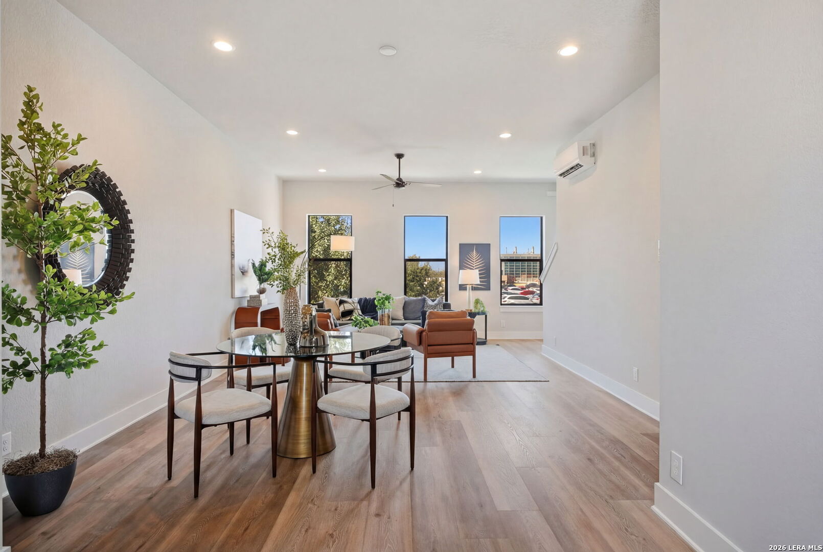 OPEN HOUSE: Sunday, 02/15 11 AM - 3 PM! ROOFTOP Living at Brooks City Base! Experience elevated urban living at Southlake at Brooks, an exciting new townhome community overlooking the Greenline Park and waterfront. This modern 3-bedroom townhome features an open-concept layouts, designer kitchens with stainless steel gas appliances, and spacious bedrooms with en-suite baths. This 1,532 sq ft floor plan offers three bedrooms, three full en-suite bathrooms, a half bath, and an attached two-car garage. The first floor has a bedroom with a full bath and access to the 2-car garage and stairs going to the second floor. The second floor is designed for entertaining, showcasing a large living and dining area, a massive kitchen, and a convenient half bath for guests. The third floor features a full-sized owner's suite with beautiful windows overlooking downtown, along with an additional secondary bedroom and bath. Enjoy a private rooftop terrace with scenic views of Greenline Park, perfect for relaxing or entertaining at sunset. Located within the rapidly growing Brooks community just south of downtown San Antonio, Southlake is the first for-sale residential offering on the campus, spanning over five acres with 60 homes. Minutes from dining, shopping, and future retail and entertainment developments, this low-maintenance home blends modern style, comfort, and convenience.