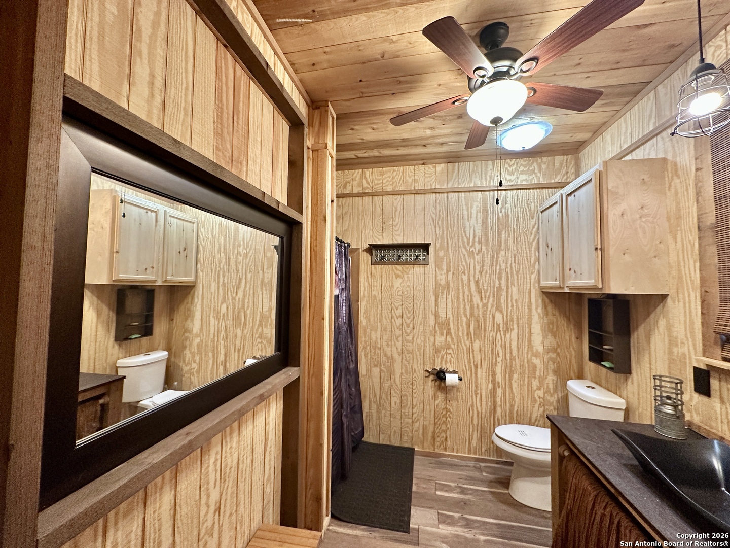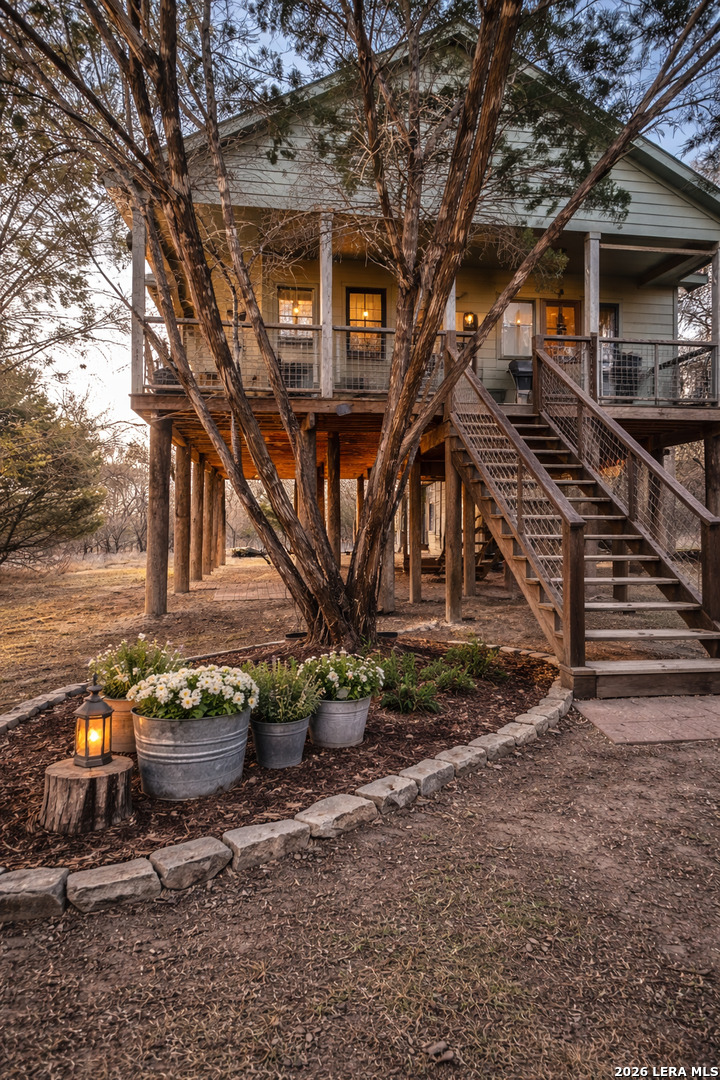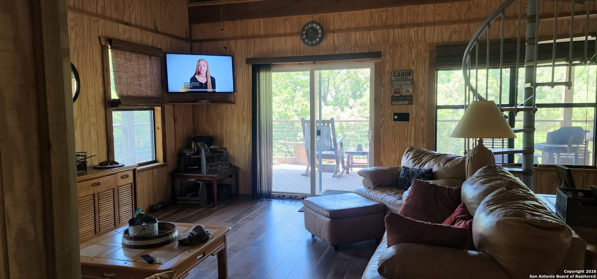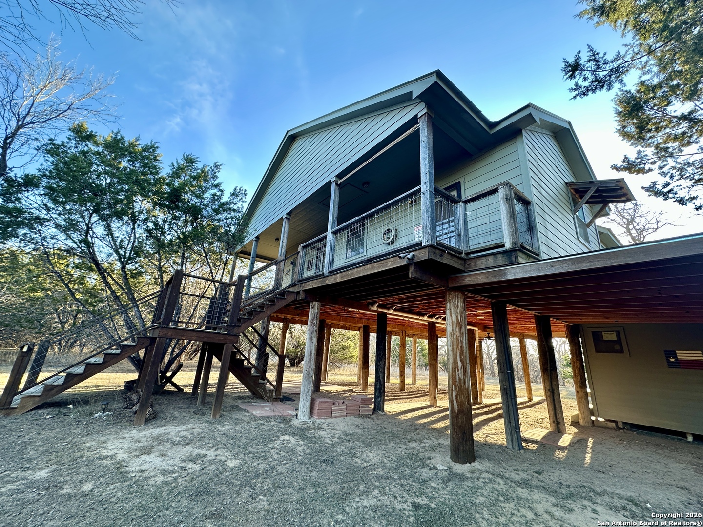 WELCOME TO YOUR NEXT HOME. Tucked away beneath a canopy of mature cypress trees, this beautifully secluded property offers rare privacy and direct access to the crystal-clear Medina River. The elevated one-story home features warm cedar finishings throughout, creating a cozy Hill Country retreat feel. Enjoy peaceful mornings and relaxing evenings from the three-sided porch, surrounded by nature and tranquil river views. Steps lead down to private river access-perfect for swimming, fishing, or simply unwinding by the water. The property also includes a convenient RV setup with hookups, ideal for guests or additional flexibility. Whether you're seeking the perfect weekend getaway or a full-time residence, this exceptional riverfront property offers privacy, beauty, and true Texas Hill Country living.