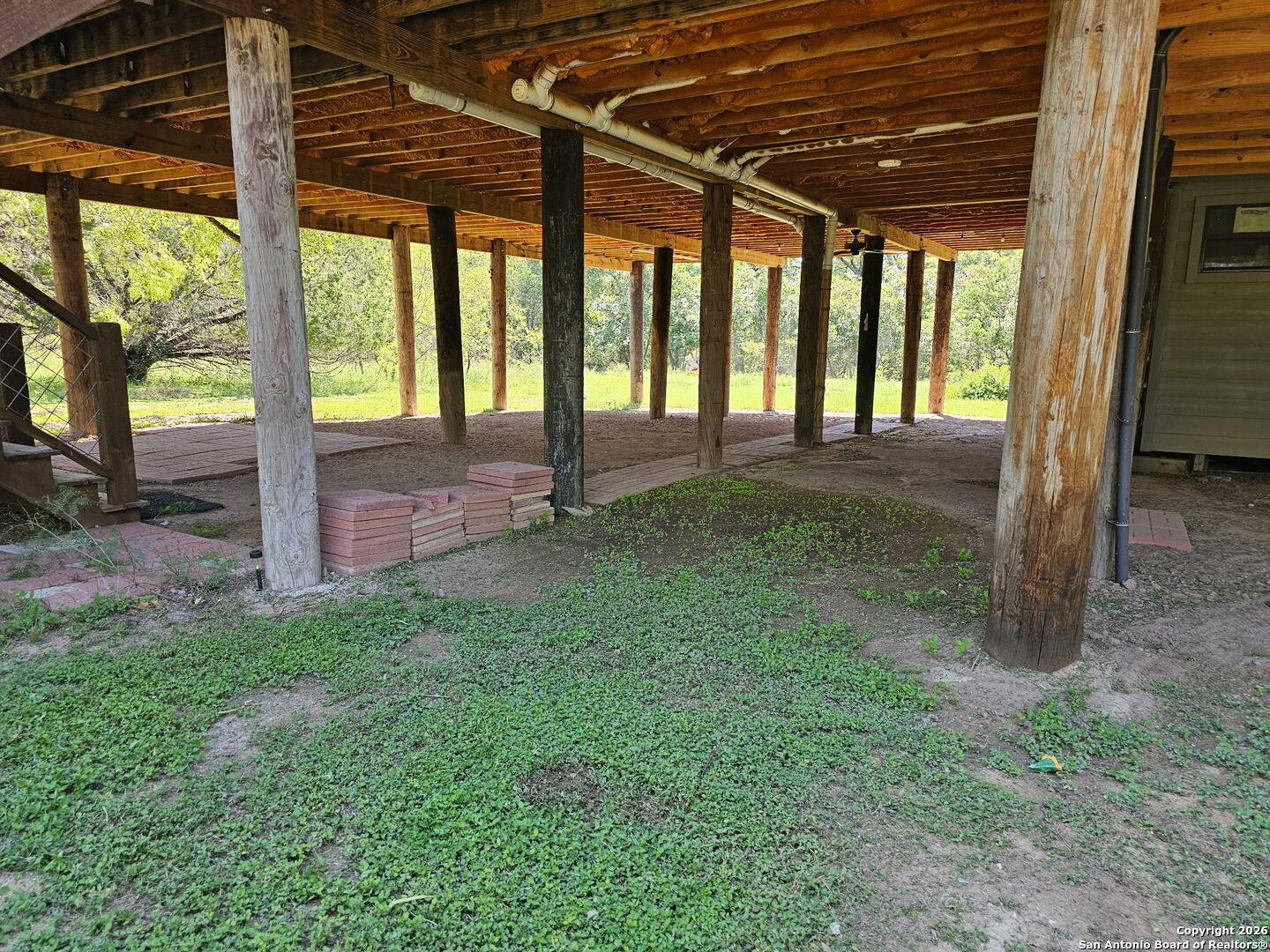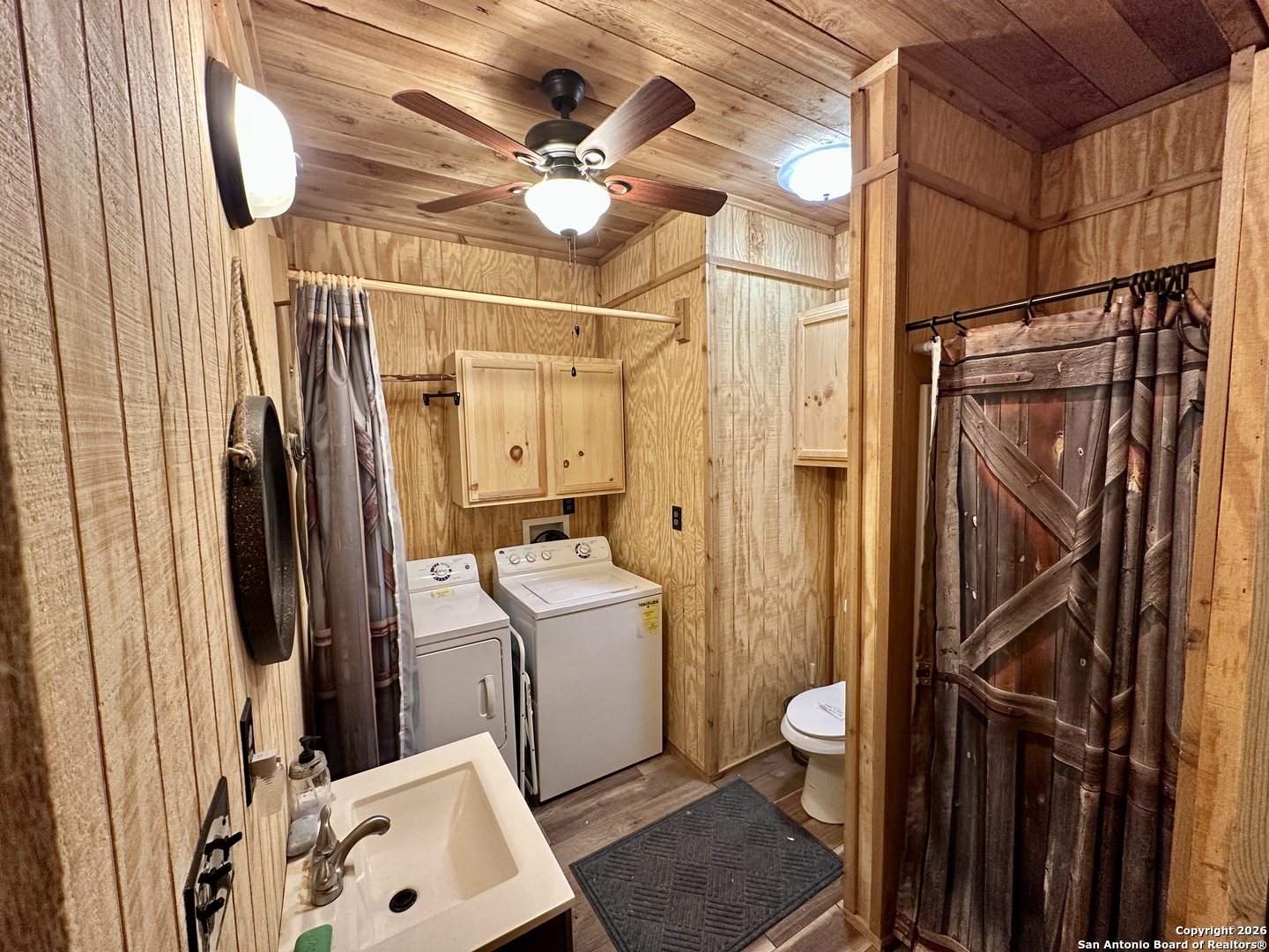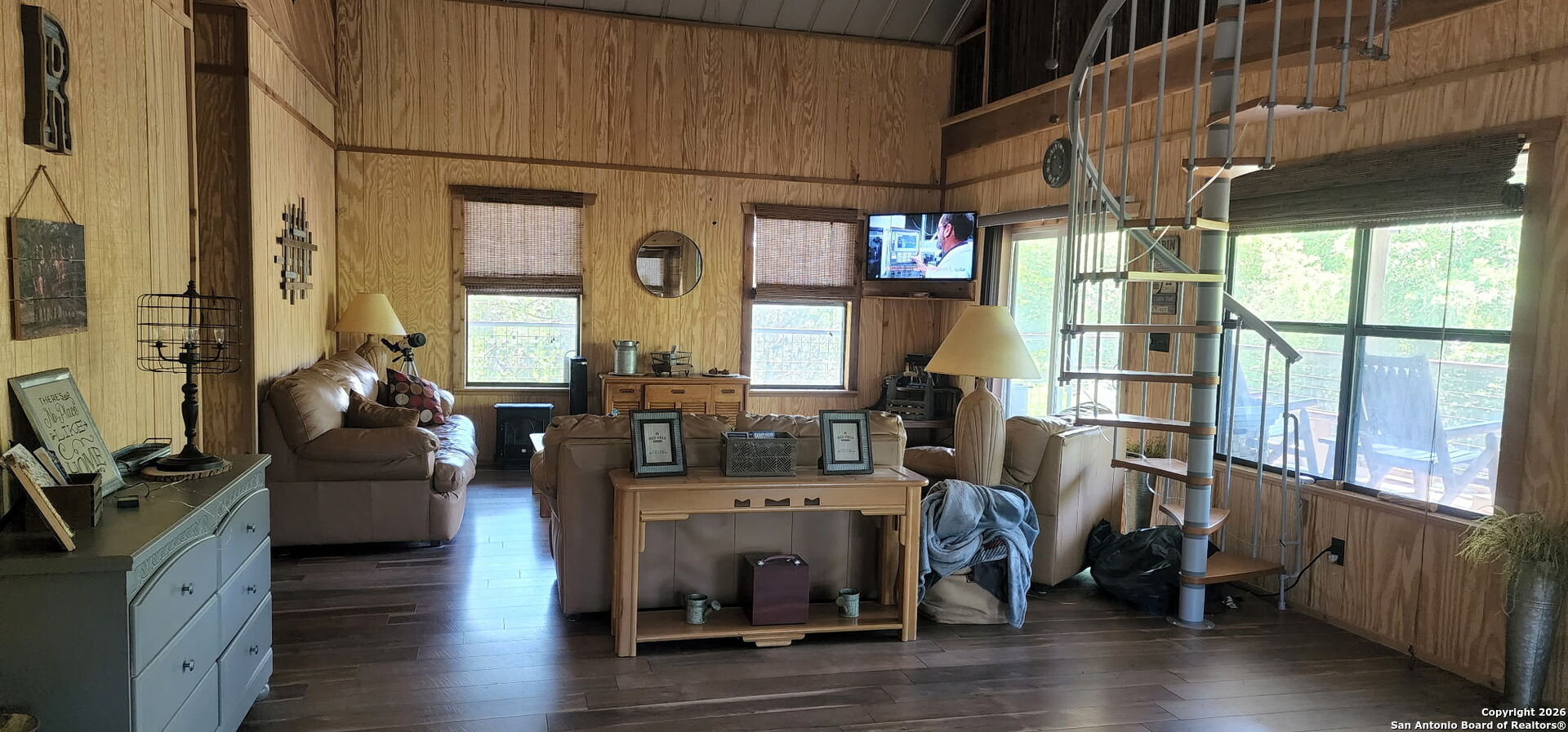 WELCOME TO YOUR NEXT HOME. Tucked away beneath a canopy of mature cypress trees, this beautifully secluded property offers rare privacy and direct access to the crystal-clear Medina River. The elevated one-story home features warm cedar finishings throughout, creating a cozy Hill Country retreat feel. Enjoy peaceful mornings and relaxing evenings from the three-sided porch, surrounded by nature and tranquil river views. Steps lead down to private river access-perfect for swimming, fishing, or simply unwinding by the water. The property also includes a convenient RV setup with hookups, ideal for guests or additional flexibility. Whether you're seeking the perfect weekend getaway or a full-time residence, this exceptional riverfront property offers privacy, beauty, and true Texas Hill Country living.