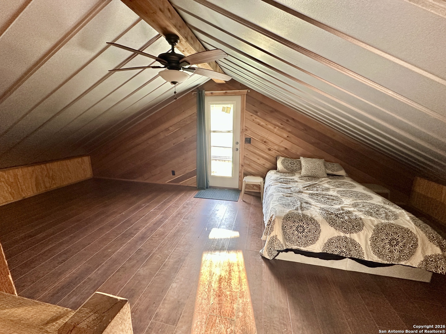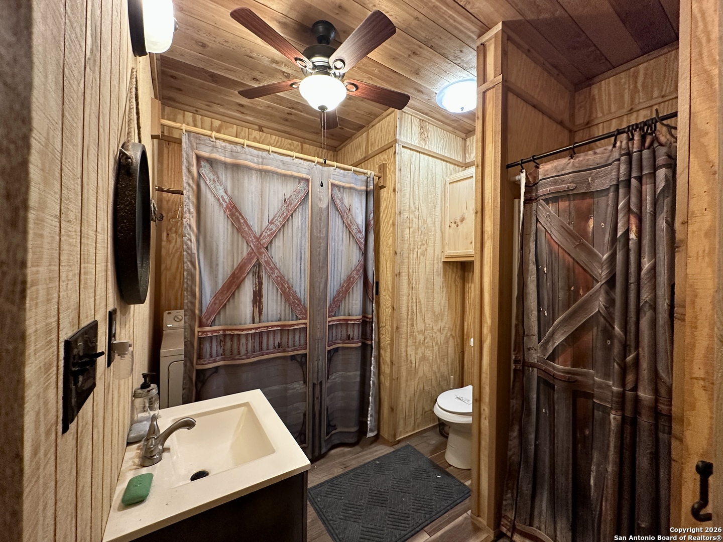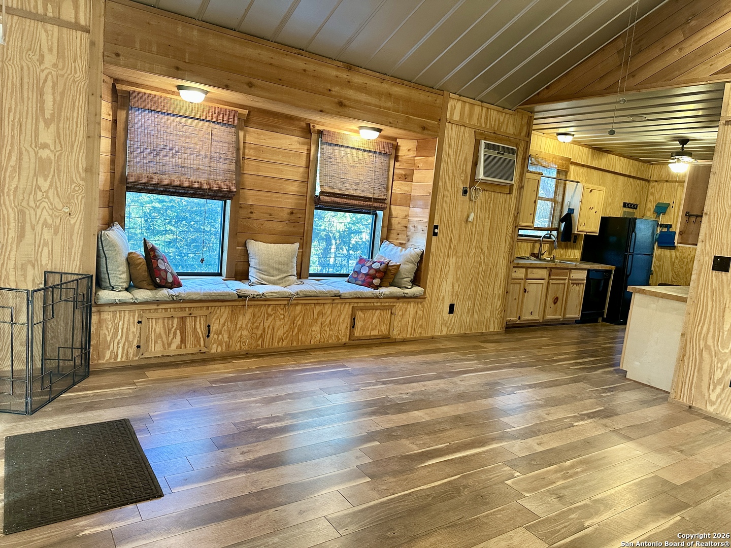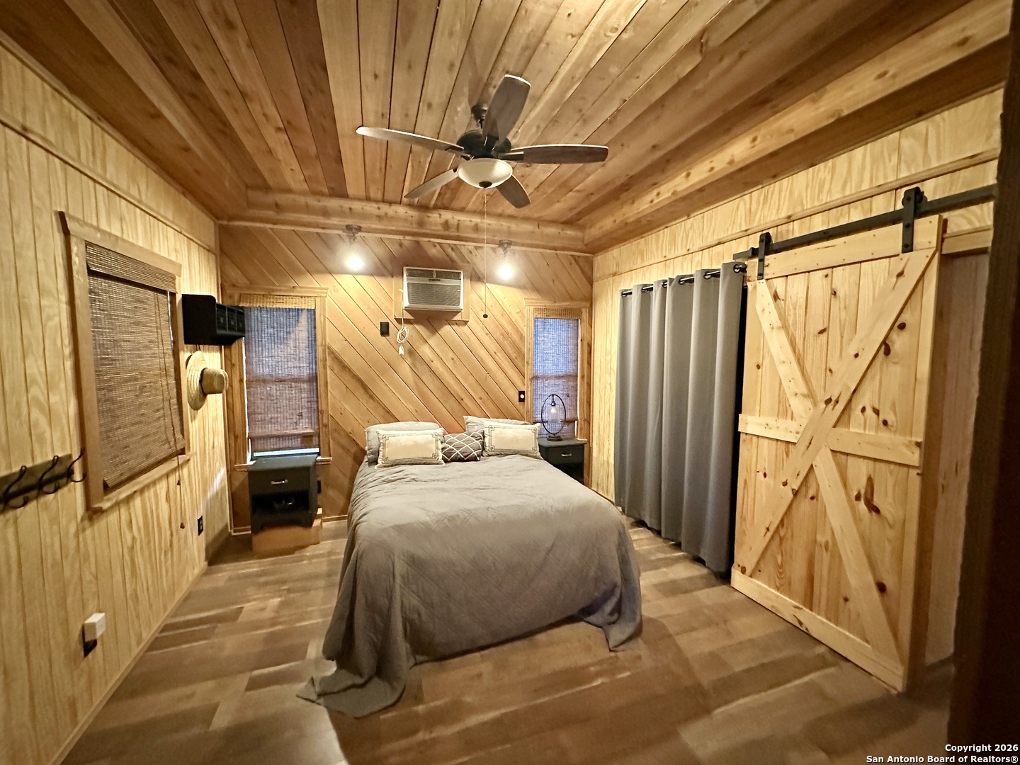 WELCOME TO YOUR NEXT HOME. Tucked away beneath a canopy of mature cypress trees, this beautifully secluded property offers rare privacy and direct access to the crystal-clear Medina River. The elevated one-story home features warm cedar finishings throughout, creating a cozy Hill Country retreat feel. Enjoy peaceful mornings and relaxing evenings from the three-sided porch, surrounded by nature and tranquil river views. Steps lead down to private river access-perfect for swimming, fishing, or simply unwinding by the water. The property also includes a convenient RV setup with hookups, ideal for guests or additional flexibility. Whether you're seeking the perfect weekend getaway or a full-time residence, this exceptional riverfront property offers privacy, beauty, and true Texas Hill Country living.