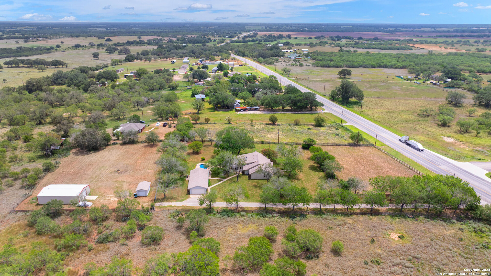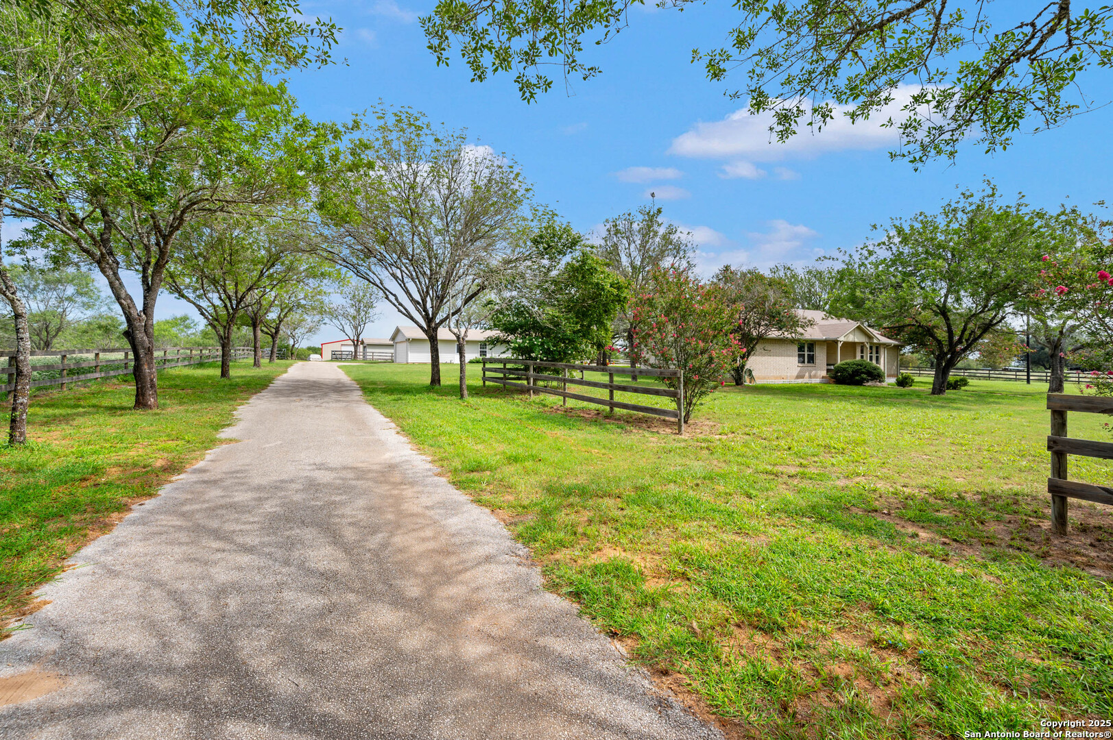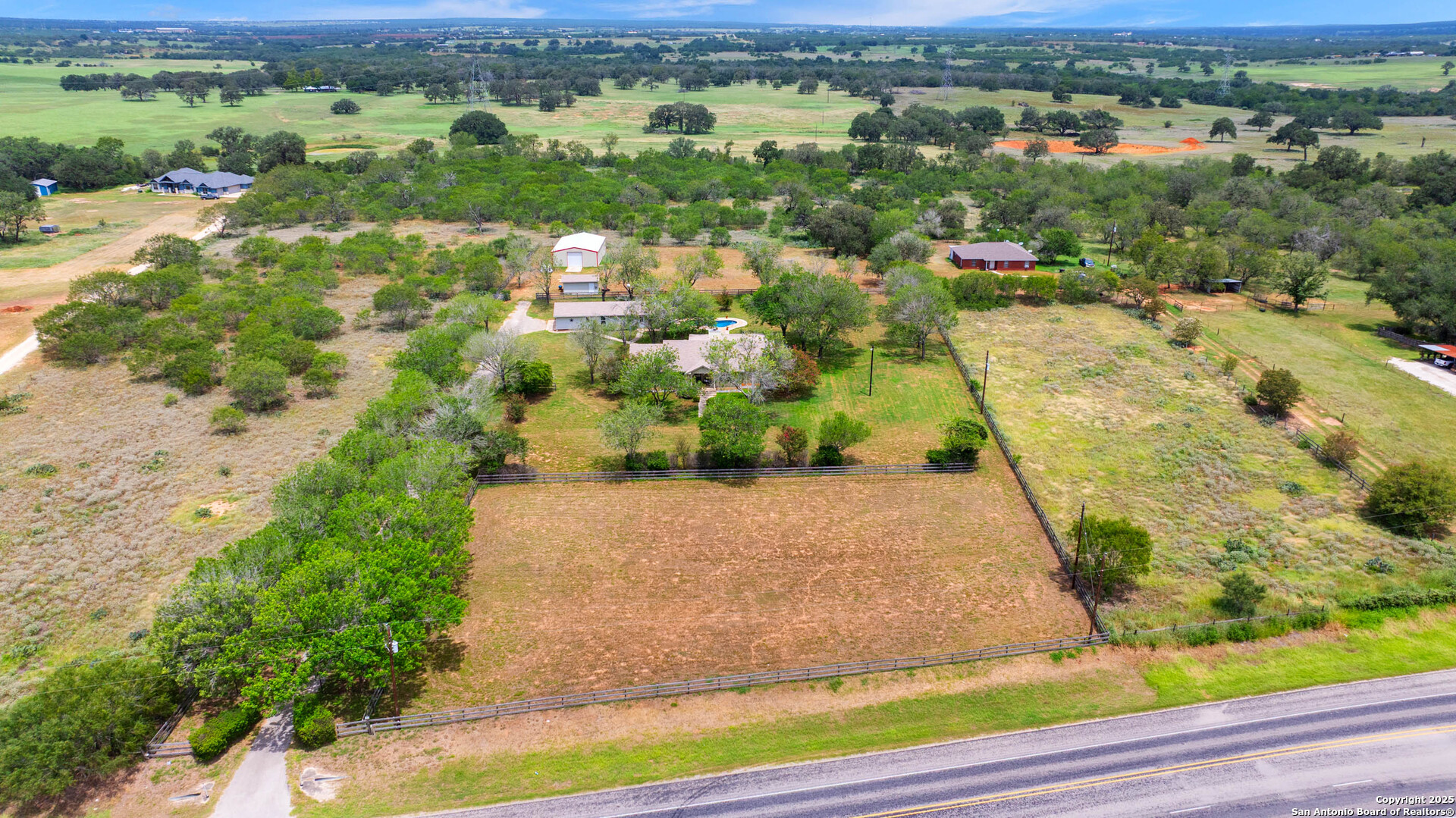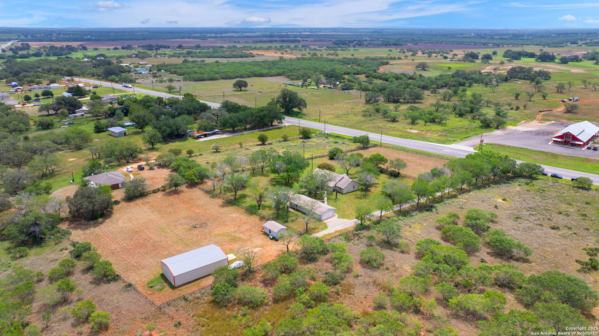 Charming Country Oasis with Pool & Guest Quarters on 3 Acres. Drive up a picturesque, tree-lined driveway to this well-maintained retreat. The main home offers a thoughtful split floor plan with two spacious primary suites on opposite ends, plus two additional bedrooms that share a full bath. Enjoy open-concept living with a roomy eat-in kitchen and a bonus room that overlooks the sparkling pool and backyard. A semi-furnished pool house adds even more versatility, complete with a kitchen and bath-perfect for guests, entertaining, or multi-generational living. The inviting pool is surrounded by generous patio space, ideal for relaxing or hosting gatherings day or night. Additional highlights include updated major systems, triple-pane windows throughout, a detached two-car garage, and a 30x50 workshop with concrete floors. Set on 3 fully fenced and cross-fenced acres with corral fencing, a wrought iron security gate, and mature trees, this private haven offers easy access to La Vernia, Floresville, and Stockdale while delivering serene, country living. This one-of-a-kind property is a must-see!