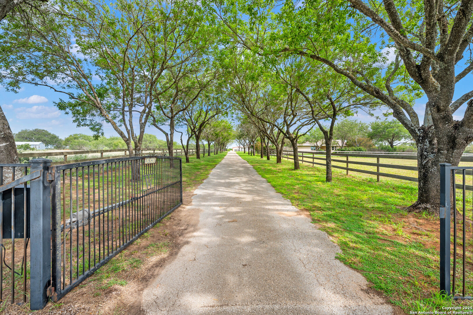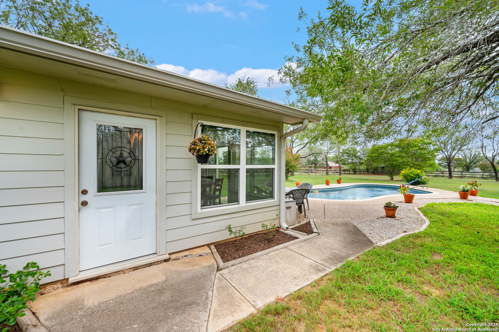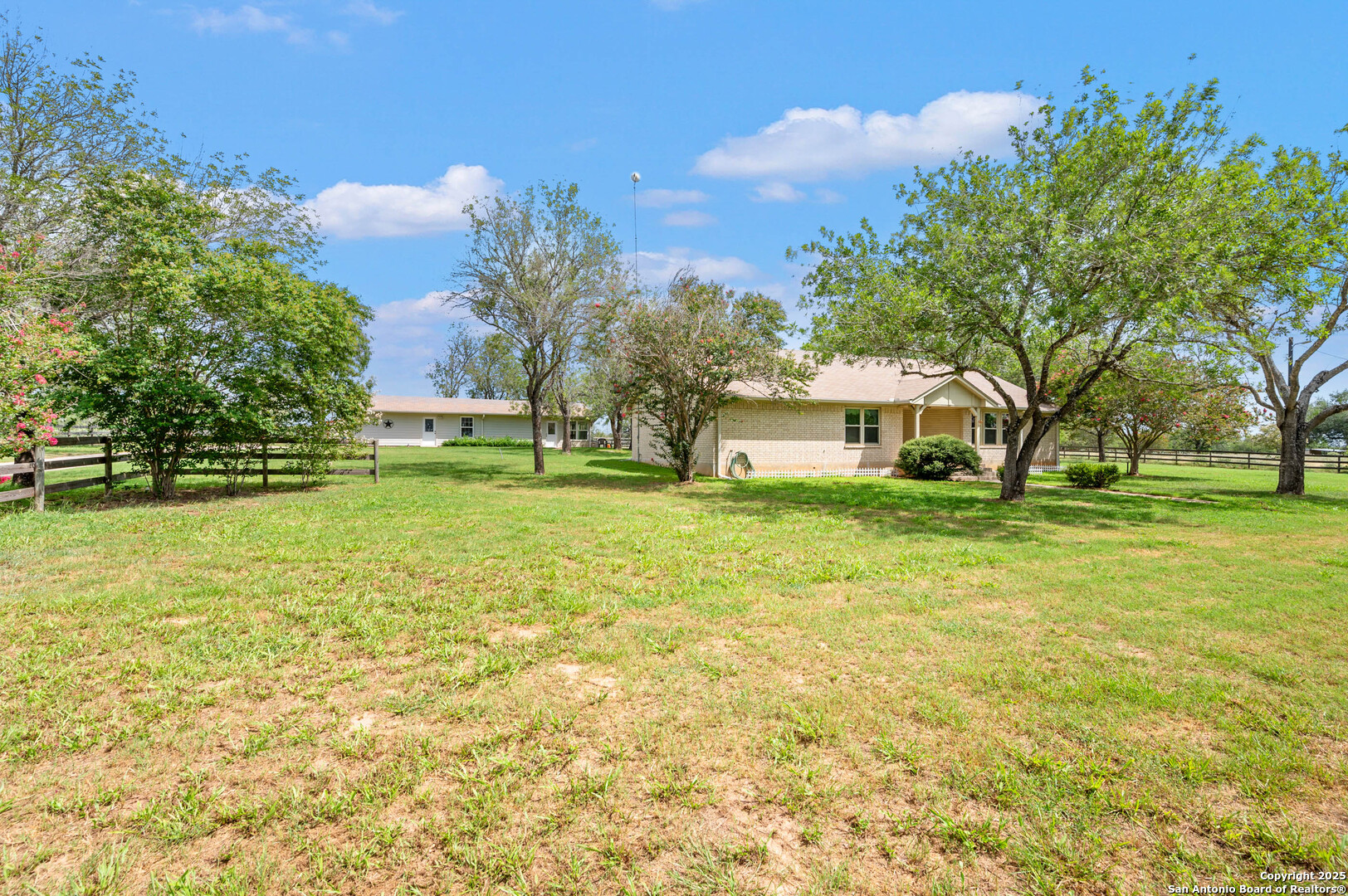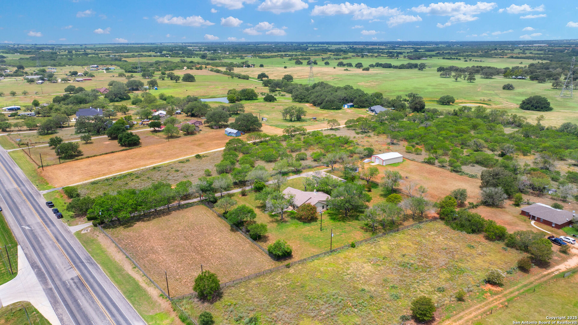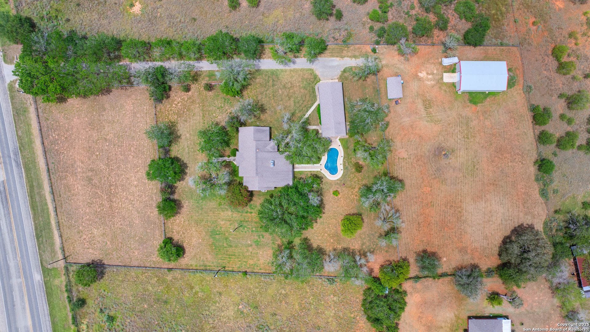 Charming Country Oasis with Pool & Guest Quarters on 3 Acres. Drive up a picturesque, tree-lined driveway to this well-maintained retreat. The main home offers a thoughtful split floor plan with two spacious primary suites on opposite ends, plus two additional bedrooms that share a full bath. Enjoy open-concept living with a roomy eat-in kitchen and a bonus room that overlooks the sparkling pool and backyard. A semi-furnished pool house adds even more versatility, complete with a kitchen and bath-perfect for guests, entertaining, or multi-generational living. The inviting pool is surrounded by generous patio space, ideal for relaxing or hosting gatherings day or night. Additional highlights include updated major systems, triple-pane windows throughout, a detached two-car garage, and a 30x50 workshop with concrete floors. Set on 3 fully fenced and cross-fenced acres with corral fencing, a wrought iron security gate, and mature trees, this private haven offers easy access to La Vernia, Floresville, and Stockdale while delivering serene, country living. This one-of-a-kind property is a must-see!