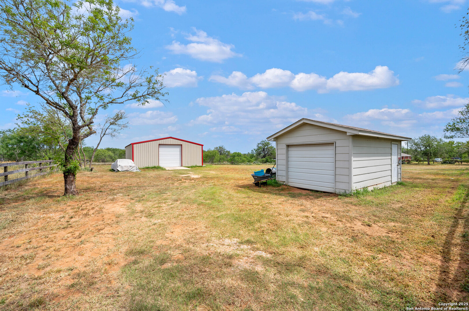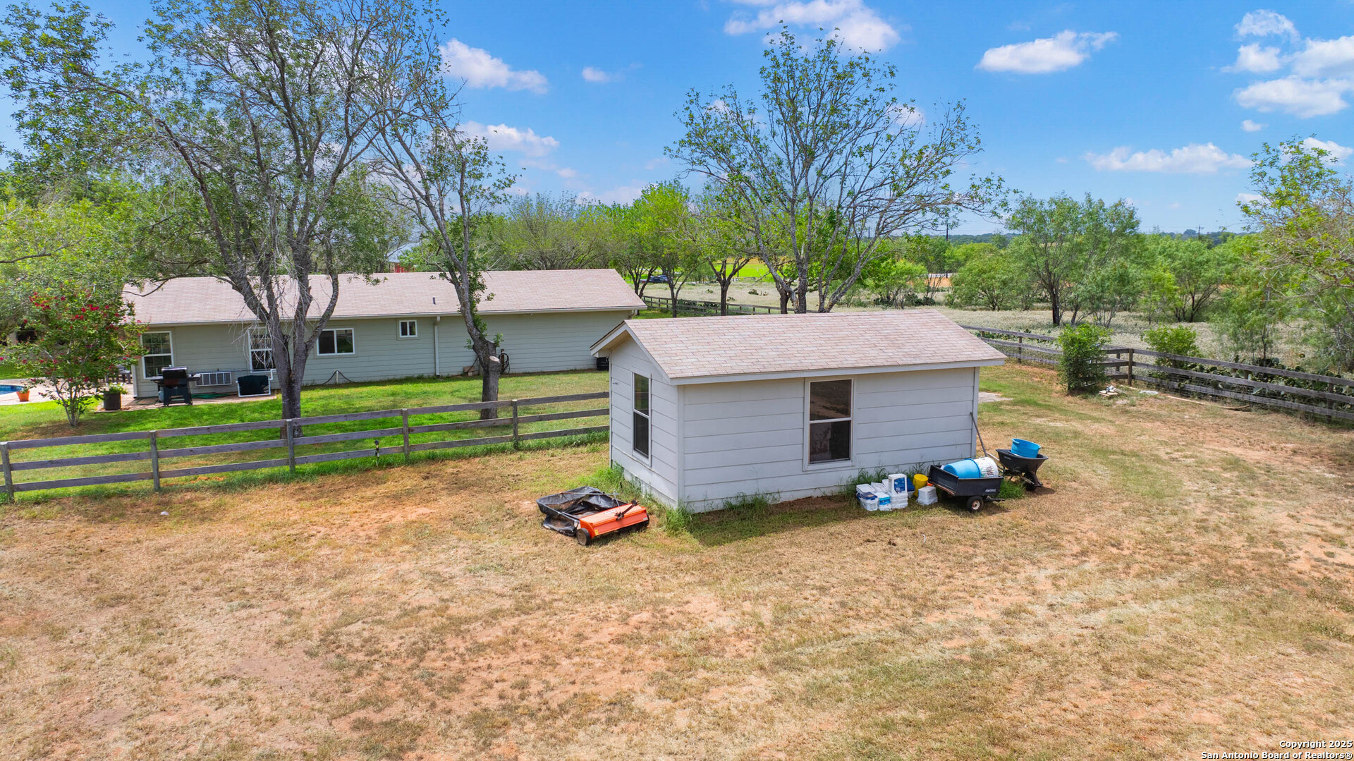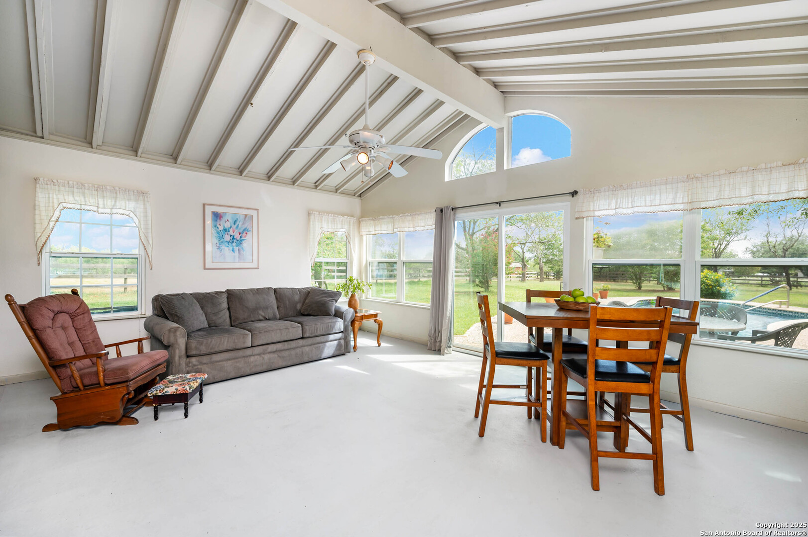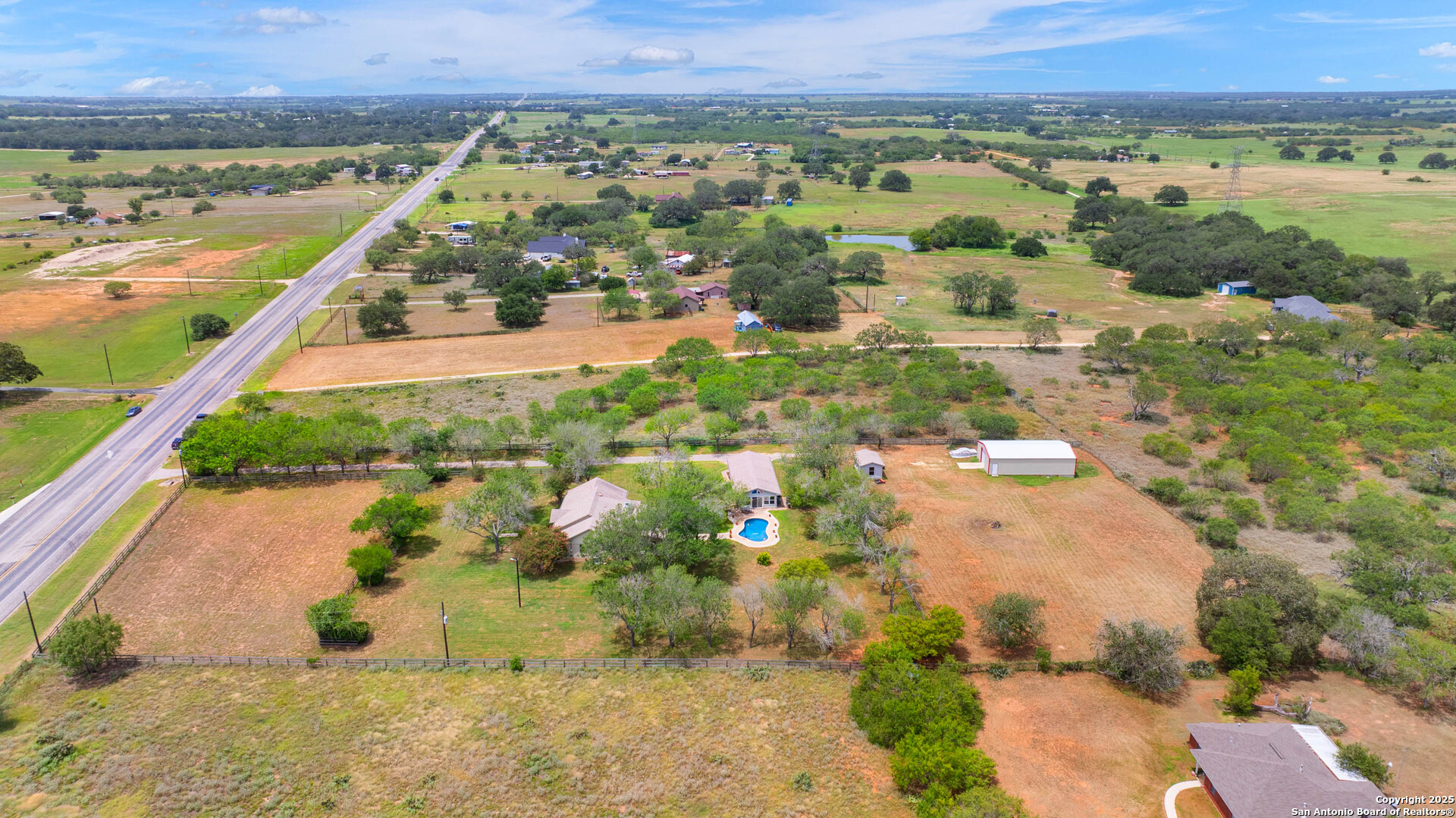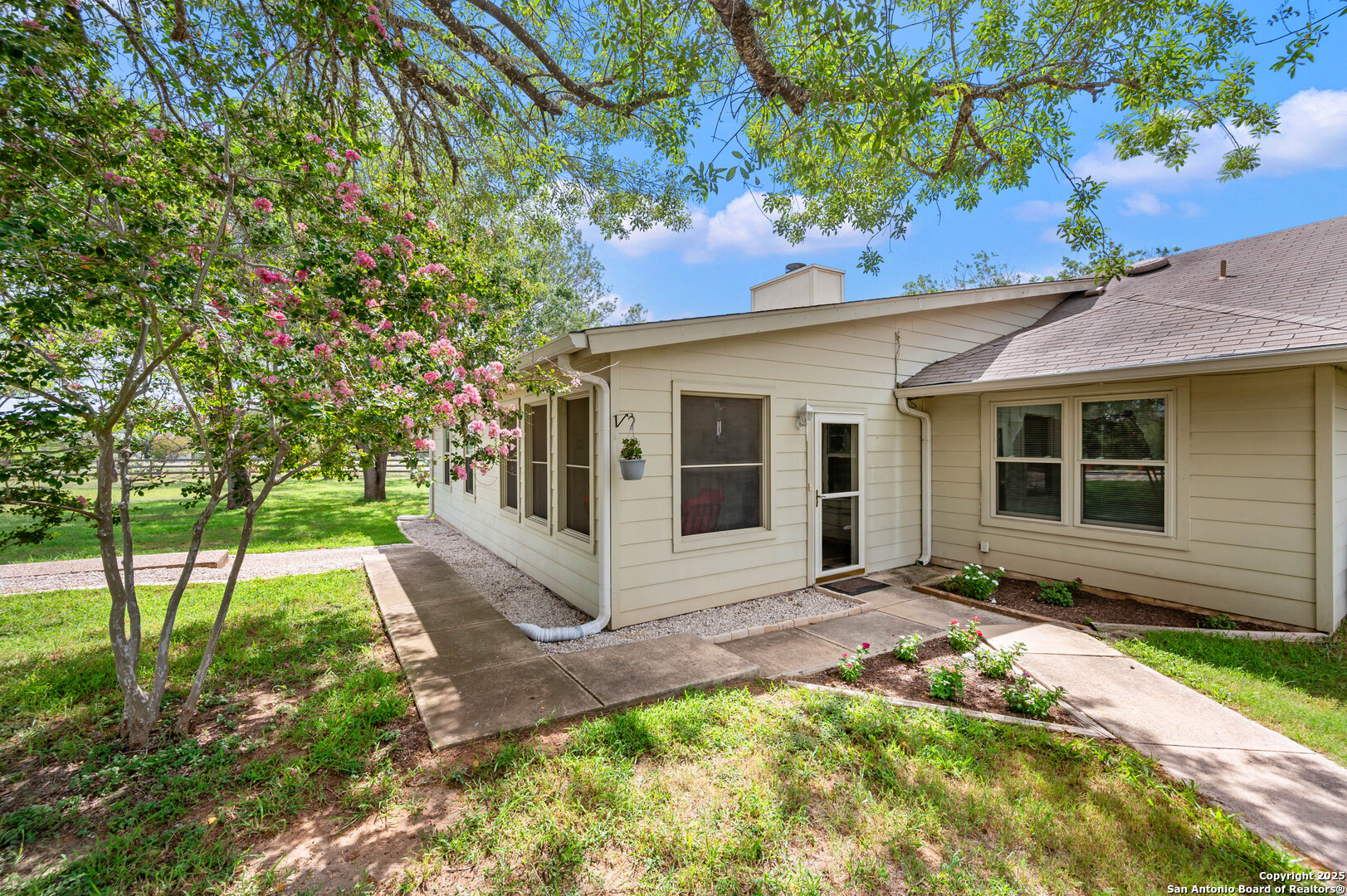 Charming Country Oasis with Pool & Guest Quarters on 3 Acres. Drive up a picturesque, tree-lined driveway to this well-maintained retreat. The main home offers a thoughtful split floor plan with two spacious primary suites on opposite ends, plus two additional bedrooms that share a full bath. Enjoy open-concept living with a roomy eat-in kitchen and a bonus room that overlooks the sparkling pool and backyard. A semi-furnished pool house adds even more versatility, complete with a kitchen and bath-perfect for guests, entertaining, or multi-generational living. The inviting pool is surrounded by generous patio space, ideal for relaxing or hosting gatherings day or night. Additional highlights include updated major systems, triple-pane windows throughout, a detached two-car garage, and a 30x50 workshop with concrete floors. Set on 3 fully fenced and cross-fenced acres with corral fencing, a wrought iron security gate, and mature trees, this private haven offers easy access to La Vernia, Floresville, and Stockdale while delivering serene, country living. This one-of-a-kind property is a must-see!