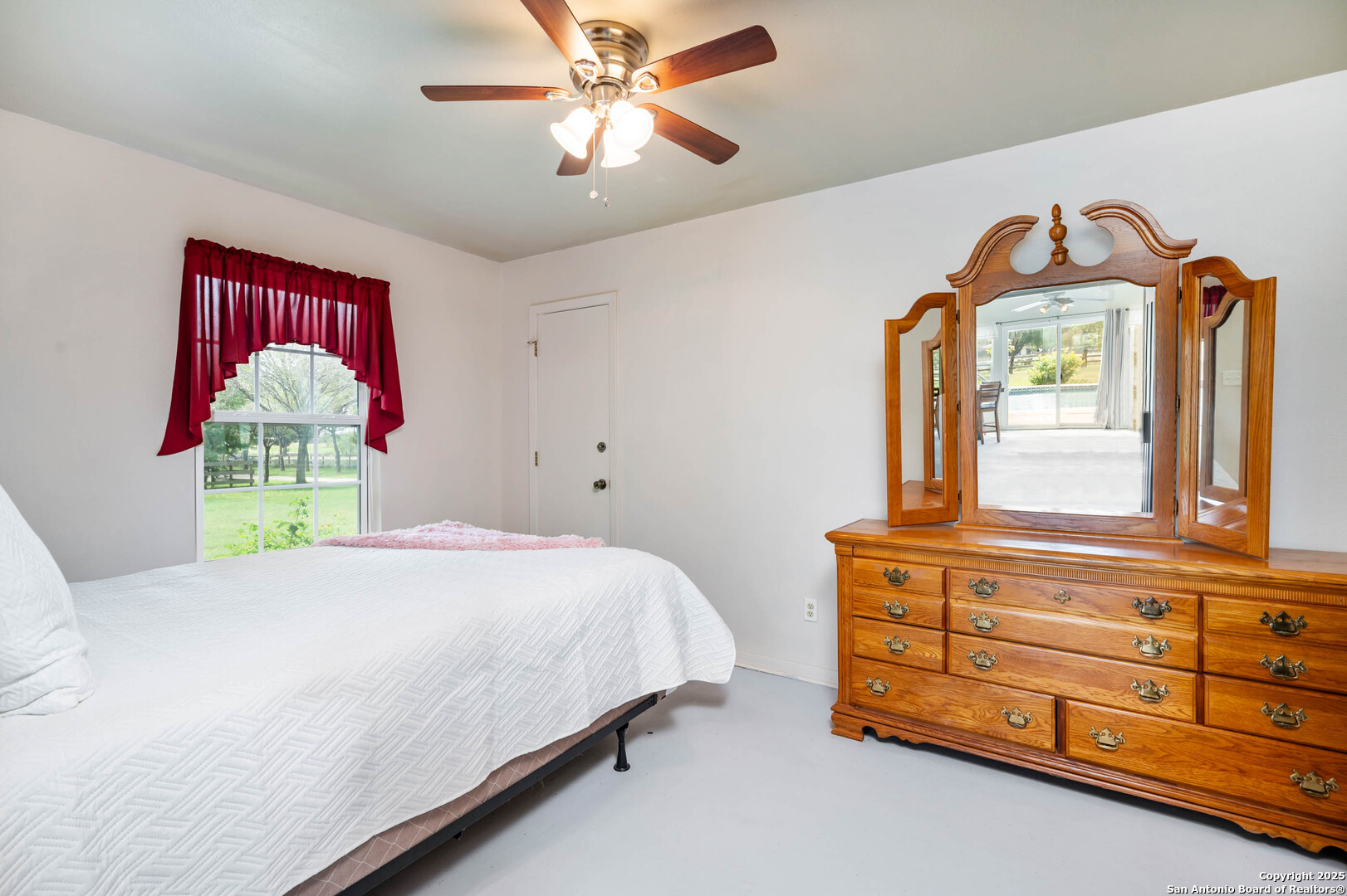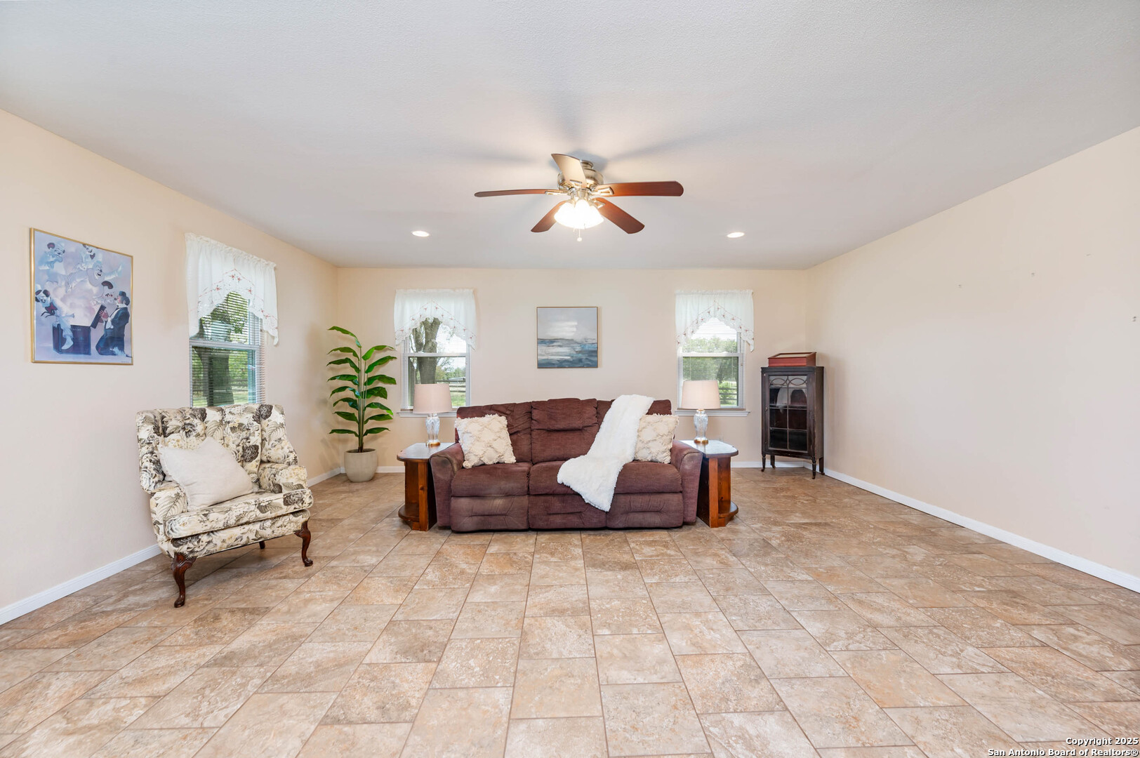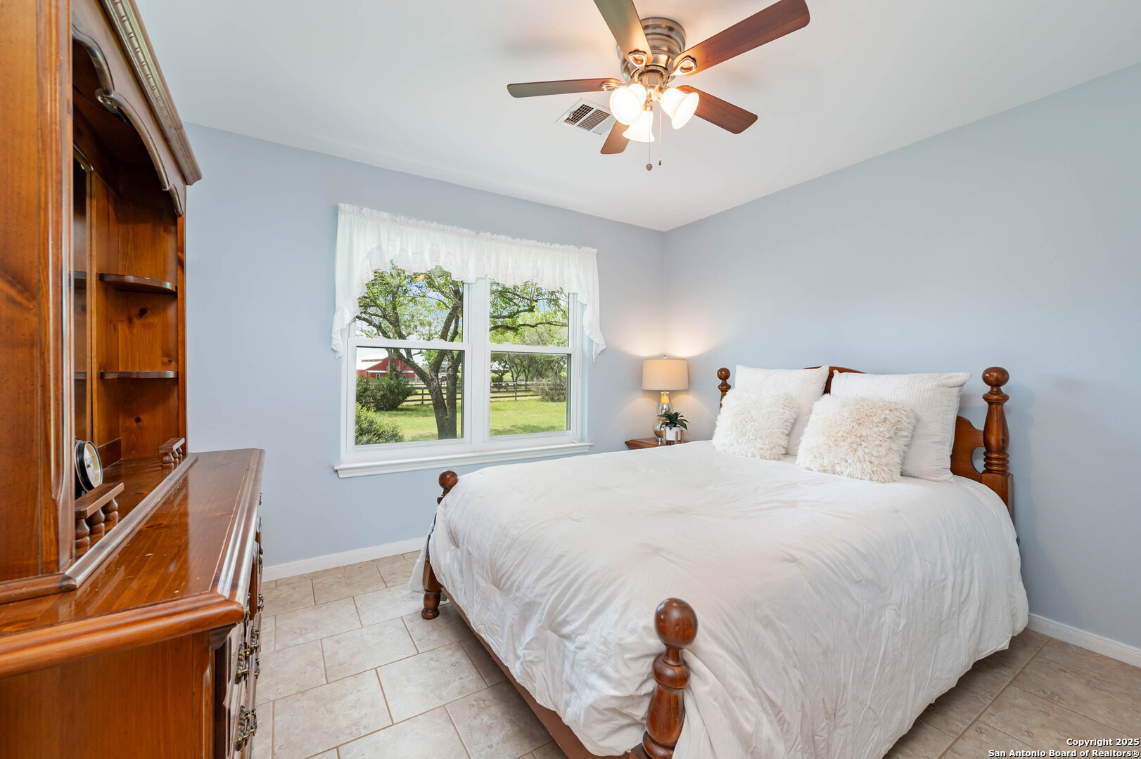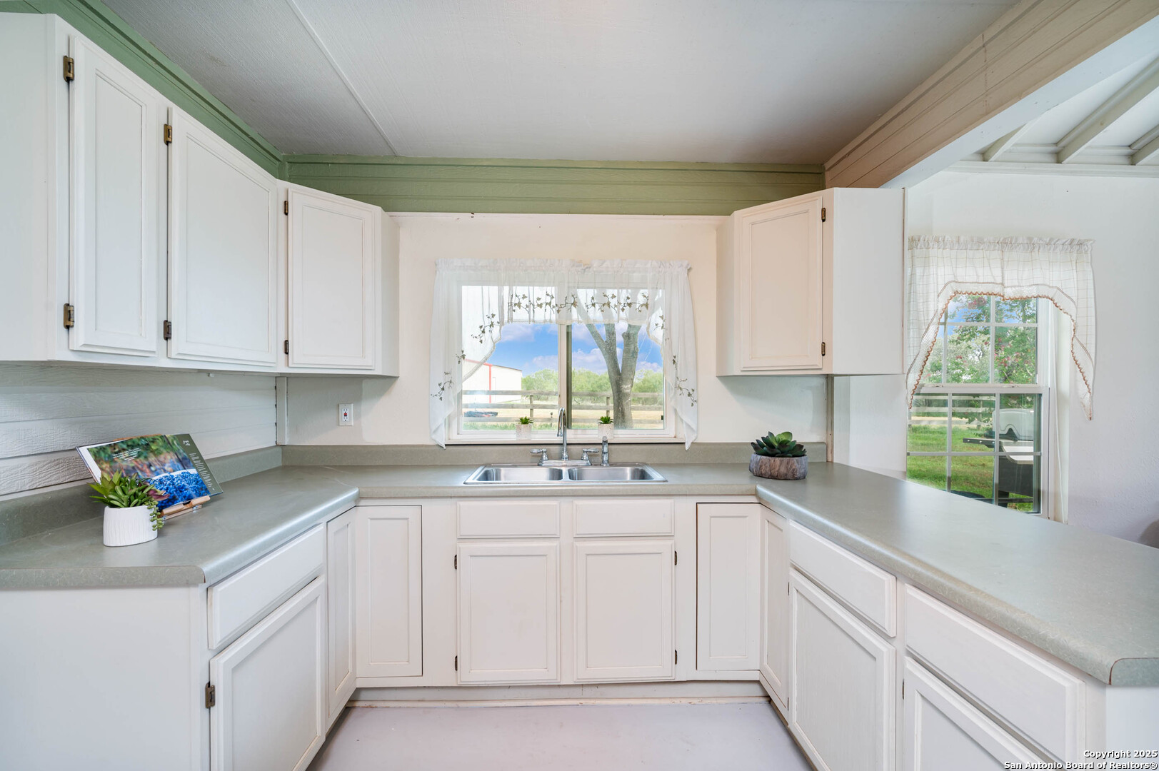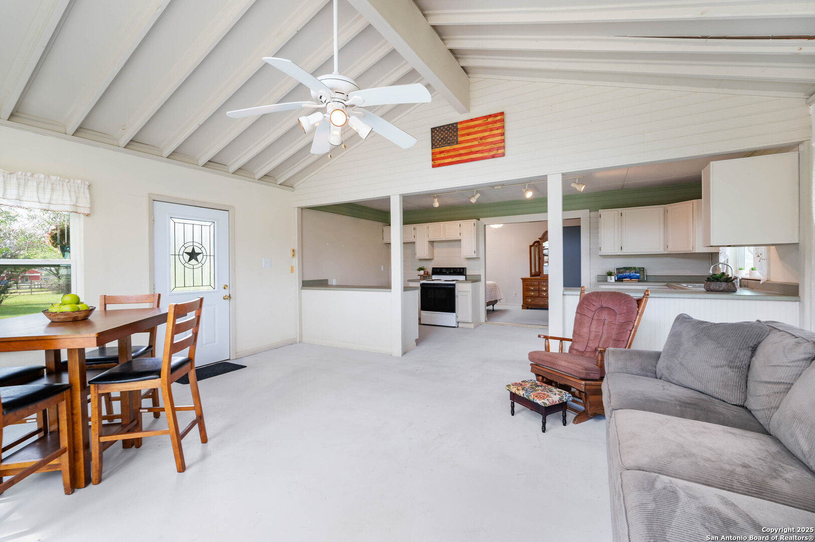 Charming Country Oasis with Pool & Guest Quarters on 3 Acres. Drive up a picturesque, tree-lined driveway to this well-maintained retreat. The main home offers a thoughtful split floor plan with two spacious primary suites on opposite ends, plus two additional bedrooms that share a full bath. Enjoy open-concept living with a roomy eat-in kitchen and a bonus room that overlooks the sparkling pool and backyard. A semi-furnished pool house adds even more versatility, complete with a kitchen and bath-perfect for guests, entertaining, or multi-generational living. The inviting pool is surrounded by generous patio space, ideal for relaxing or hosting gatherings day or night. Additional highlights include updated major systems, triple-pane windows throughout, a detached two-car garage, and a 30x50 workshop with concrete floors. Set on 3 fully fenced and cross-fenced acres with corral fencing, a wrought iron security gate, and mature trees, this private haven offers easy access to La Vernia, Floresville, and Stockdale while delivering serene, country living. This one-of-a-kind property is a must-see!