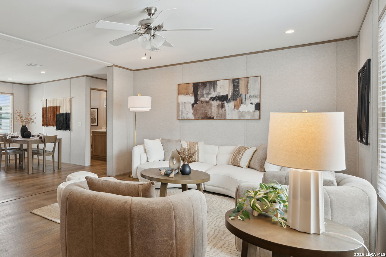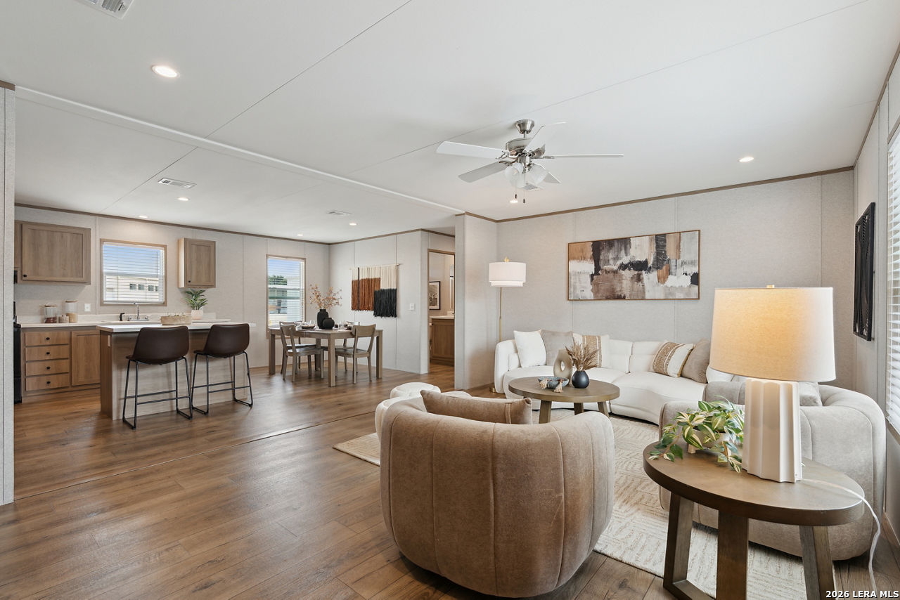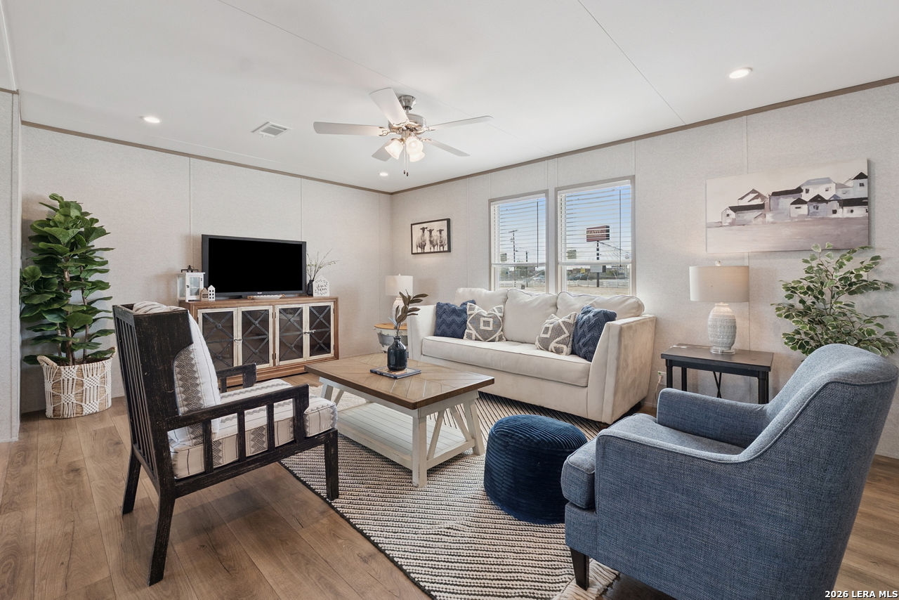 Brand-New Modular Home on 8.3 Acres - Under $320,000! Take advantage of this rare opportunity to own a new construction "to-be-built" modular home in a rural location, yet inside Loop 1604 - an ideal blend of country living with nearby conveniences! The home can be built on a concrete foundation and qualifies for FHA, VA, and Conventional financing. Enjoy the peace of mind that comes with all-new utilities, systems, and upgrades, paired with the freedom of living on a generously sized property. Custom finishes available - see examples in photos! Buyers still have the chance to select interior finishes and personalize the home to their taste. This listing price is land and home only. Buyer has the option to install & connect utilities or add that to the total sales price. The 8.3 Acres of land is ideal for country living and has space for your "mini farm", with a seasonal creek that renders some of the acreage in the 100-year flood plain. Home renderings and photos are for inspirational purposes only and are from similar nearby project. Final home placement, orientation, and features may vary.