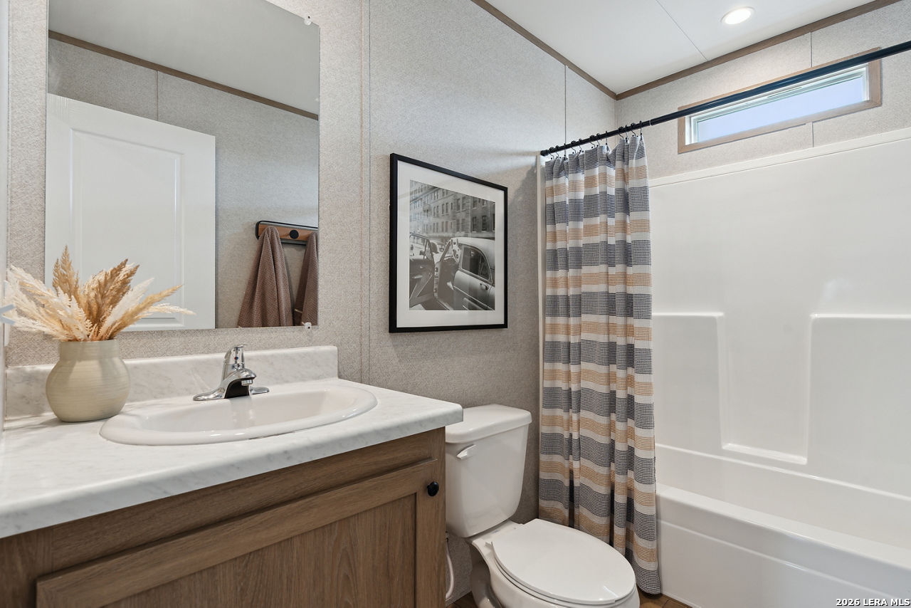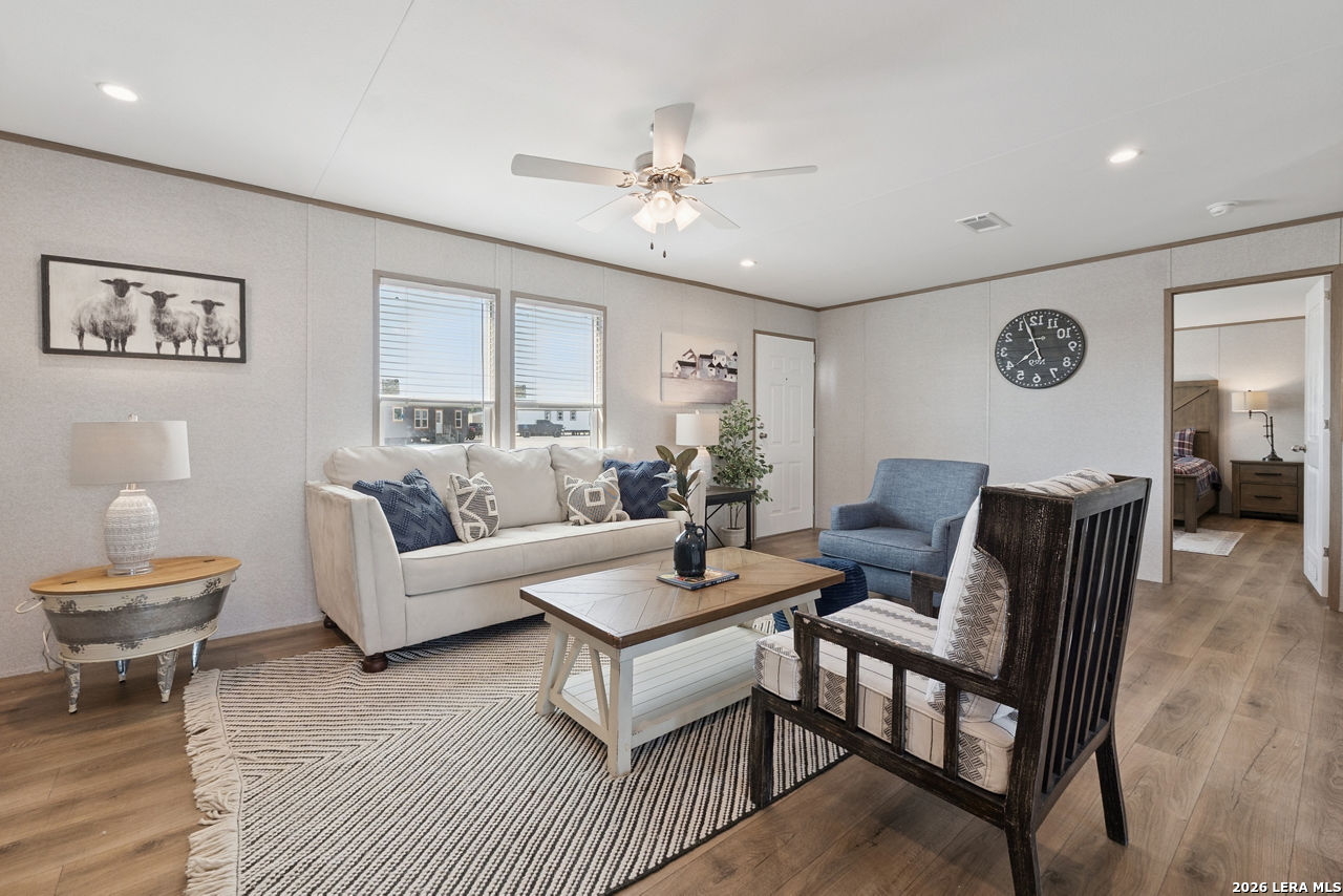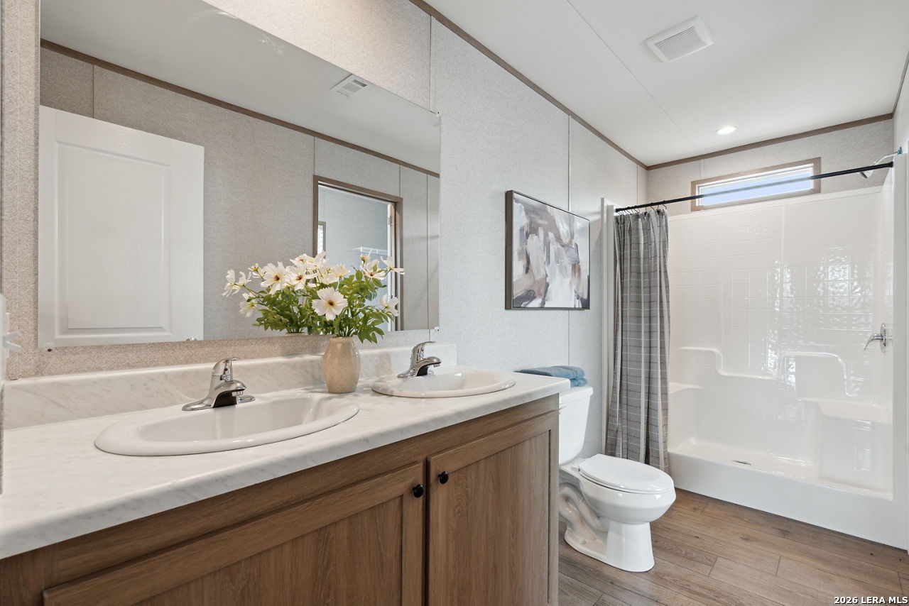 Brand-New Modular Home on 8.3 Acres - Under $320,000! Take advantage of this rare opportunity to own a new construction "to-be-built" modular home in a rural location, yet inside Loop 1604 - an ideal blend of country living with nearby conveniences! The home can be built on a concrete foundation and qualifies for FHA, VA, and Conventional financing. Enjoy the peace of mind that comes with all-new utilities, systems, and upgrades, paired with the freedom of living on a generously sized property. Custom finishes available - see examples in photos! Buyers still have the chance to select interior finishes and personalize the home to their taste. This listing price is land and home only. Buyer has the option to install & connect utilities or add that to the total sales price. The 8.3 Acres of land is ideal for country living and has space for your "mini farm", with a seasonal creek that renders some of the acreage in the 100-year flood plain. Home renderings and photos are for inspirational purposes only and are from similar nearby project. Final home placement, orientation, and features may vary.