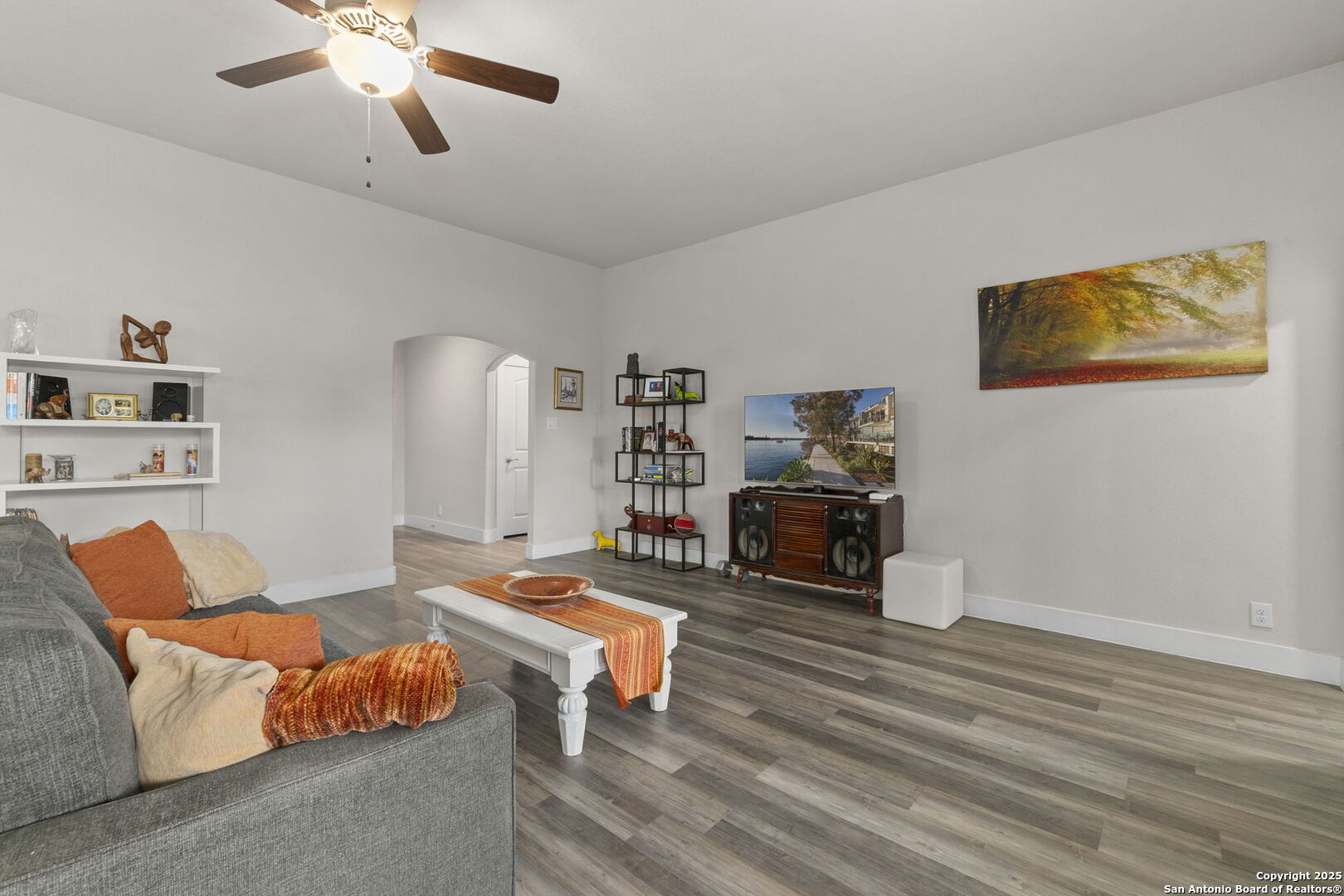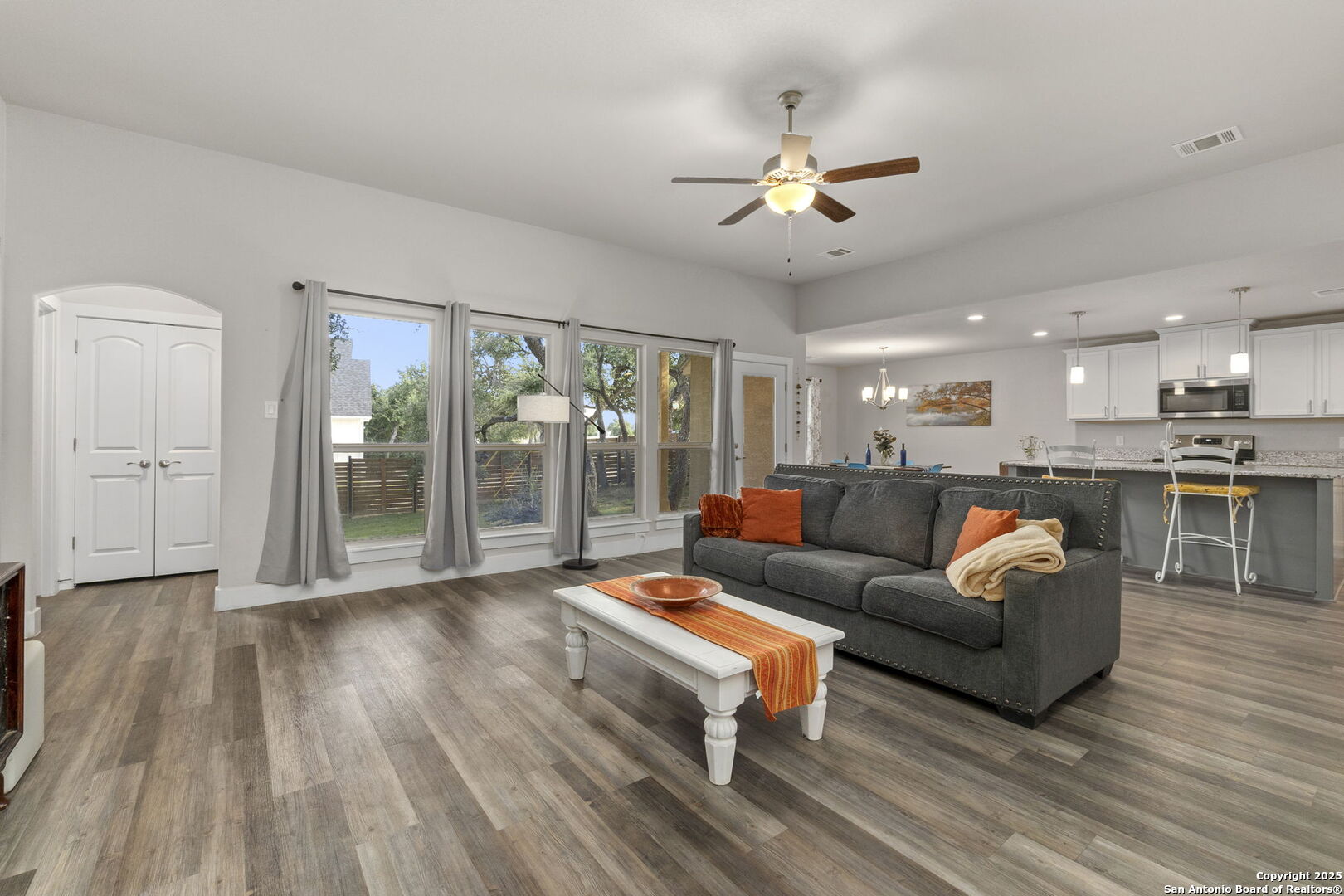 Nestled in the sought-after Rockin J Ranch golf community, this inviting home offers the perfect blend of comfort and convenience. Set on a spacious lot, the property captures the natural beauty of the Hill Country while providing modern amenities that make everyday living easy. The open-concept floor plan is bright and functional, creating a welcoming space for both relaxation and entertaining. A well-appointed kitchen anchors the main living area, while the primary suite serves as a quiet retreat with its private bath and ample closet space. Step outside and enjoy the peaceful setting, complete with mature trees and room for outdoor gatherings. As a Rockin J Ranch homeowner, you'll receive three free rounds of golf each month at Vaaler Creek Golf Club, along with access to the community pool, pavilion, pond, and walking trails. Just minutes from the clubhouse and putting green, and within an hour of San Antonio, Austin airports, and the Fredericksburg wine trail, this home makes it easy to enjoy the best of Texas living.