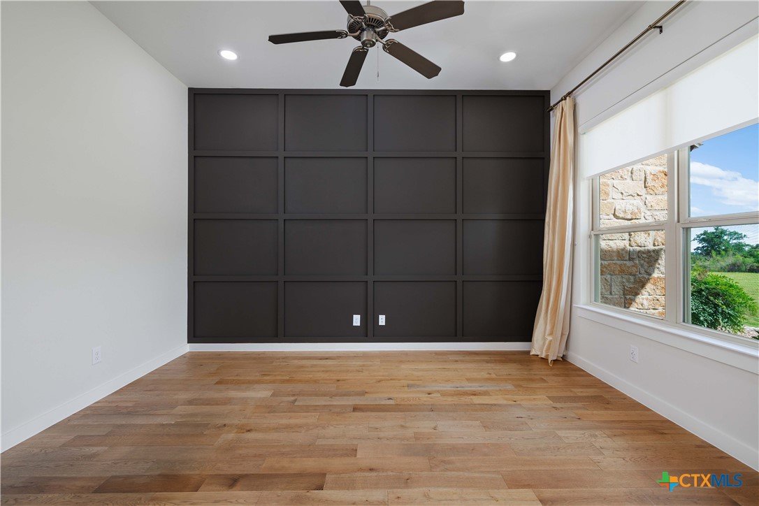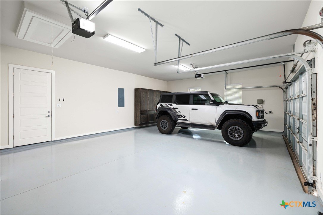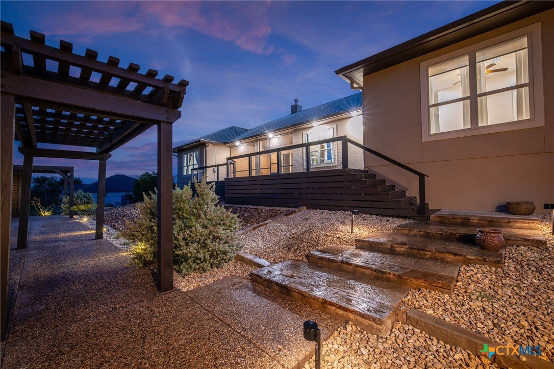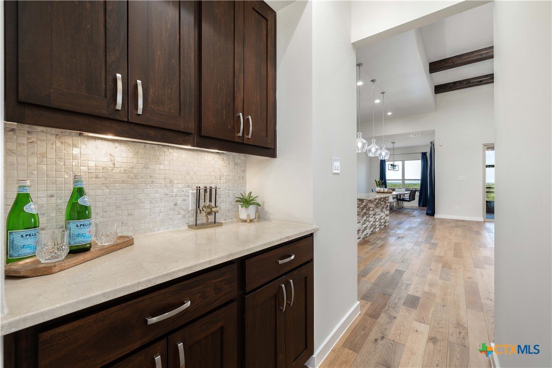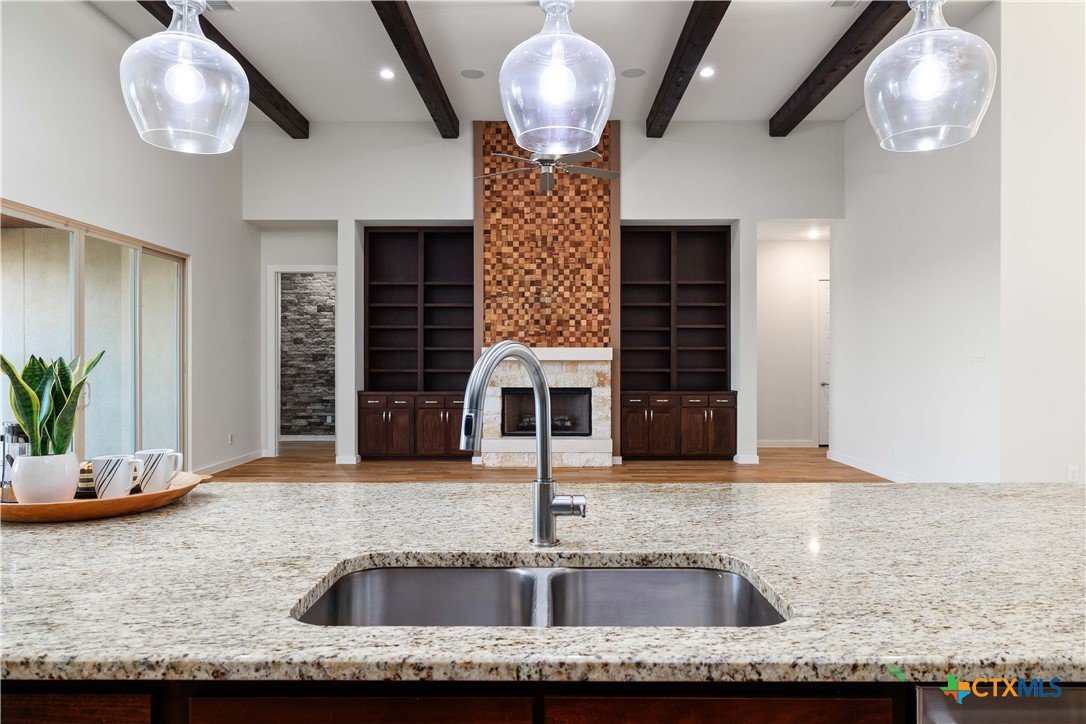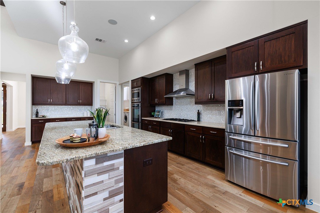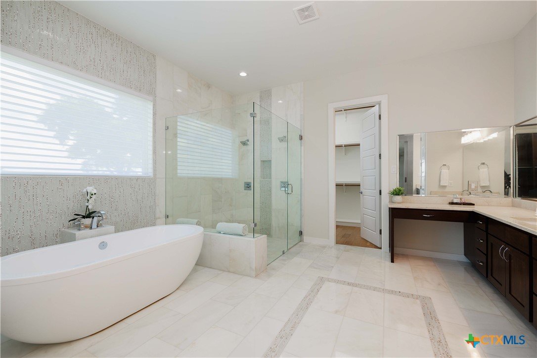Discover unparalleled luxury in the exclusive Ramble Ridge community on 1.3 acres. This exquisite 4-bedroom, 4-bathroom home epitomizes sophistication, offering a meticulously designed layout perfect for modern living. The gourmet kitchen features an island with granite countertops, double ovens, a butler's pantry, a walk-in pantry, and Bosch stainless steel appliances. Adjacent is a charming breakfast nook, ideal for casual dining, and a formal dining room for more elaborate gatherings. The open-concept living areas boast high ceilings and a seamless flow; the living room, complete with built-in shelves and a floor-to-ceiling brick fireplace, overlooks the backyard oasis. The master bedroom features expansive windows with breathtaking Hill Country views, and the en-suite bath boasts his and hers closets, double vanities, a garden tub, and a double-headed walk-in shower. Each additional bedroom offers ultimate privacy and comfort, with its own en-suite bath. Outside, enjoy a private paradise with a stunning Keith Zars pool, an expansive deck, and a covered pergola. A screened-in patio allows year-round enjoyment of the outdoors. The home also features a dedicated media room, a well-appointed office, a large laundry room, and a mud area. With garages accommodating up to 5 vehicles, this property is designed for convenience and relaxation. Ideally situated between San Antonio and New Braunfels, with Austin just an hour away, this location offers a serene retreat with city access. Embrace luxurious living in this stunning residence!