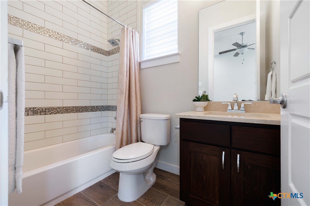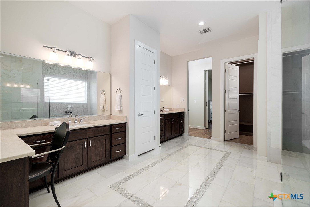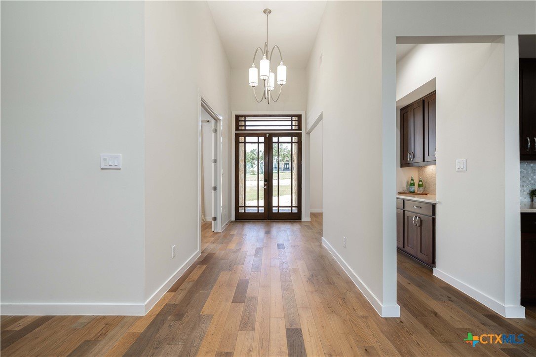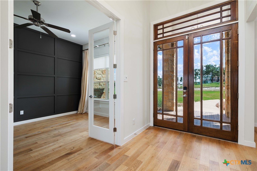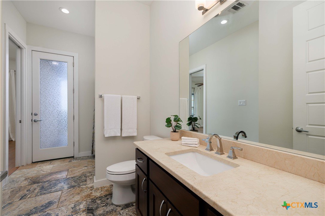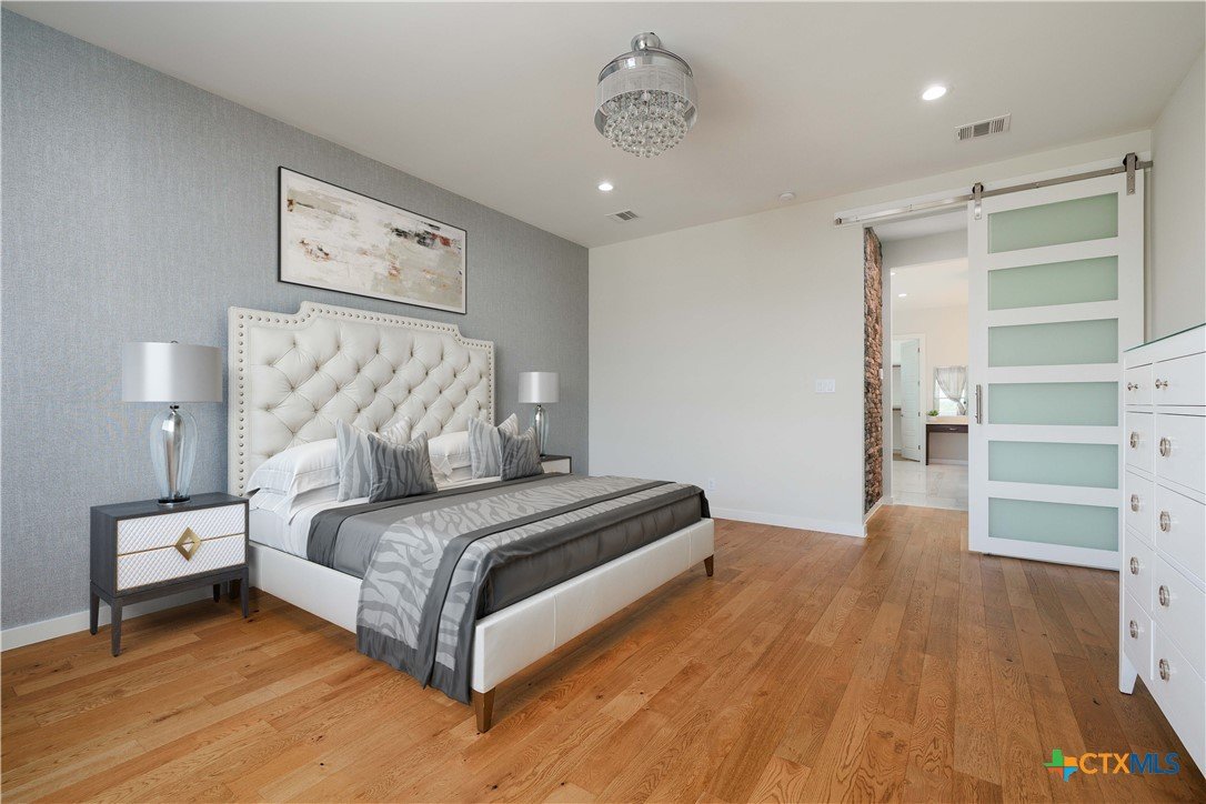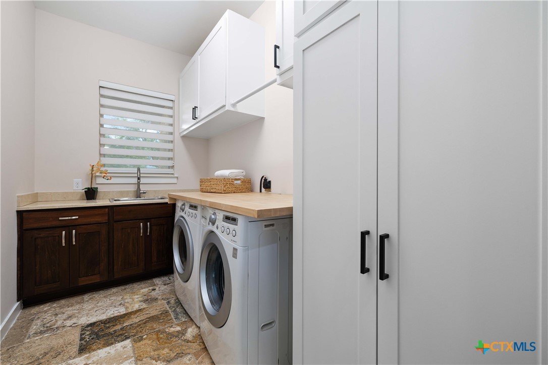Discover unparalleled luxury in the exclusive Ramble Ridge community on 1.3 acres. This exquisite 4-bedroom, 4-bathroom home epitomizes sophistication, offering a meticulously designed layout perfect for modern living. The gourmet kitchen features an island with granite countertops, double ovens, a butler's pantry, a walk-in pantry, and Bosch stainless steel appliances. Adjacent is a charming breakfast nook, ideal for casual dining, and a formal dining room for more elaborate gatherings. The open-concept living areas boast high ceilings and a seamless flow; the living room, complete with built-in shelves and a floor-to-ceiling brick fireplace, overlooks the backyard oasis. The master bedroom features expansive windows with breathtaking Hill Country views, and the en-suite bath boasts his and hers closets, double vanities, a garden tub, and a double-headed walk-in shower. Each additional bedroom offers ultimate privacy and comfort, with its own en-suite bath. Outside, enjoy a private paradise with a stunning Keith Zars pool, an expansive deck, and a covered pergola. A screened-in patio allows year-round enjoyment of the outdoors. The home also features a dedicated media room, a well-appointed office, a large laundry room, and a mud area. With garages accommodating up to 5 vehicles, this property is designed for convenience and relaxation. Ideally situated between San Antonio and New Braunfels, with Austin just an hour away, this location offers a serene retreat with city access. Embrace luxurious living in this stunning residence!