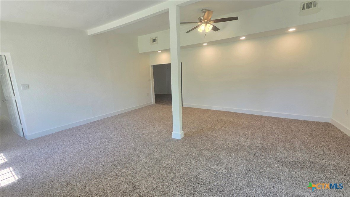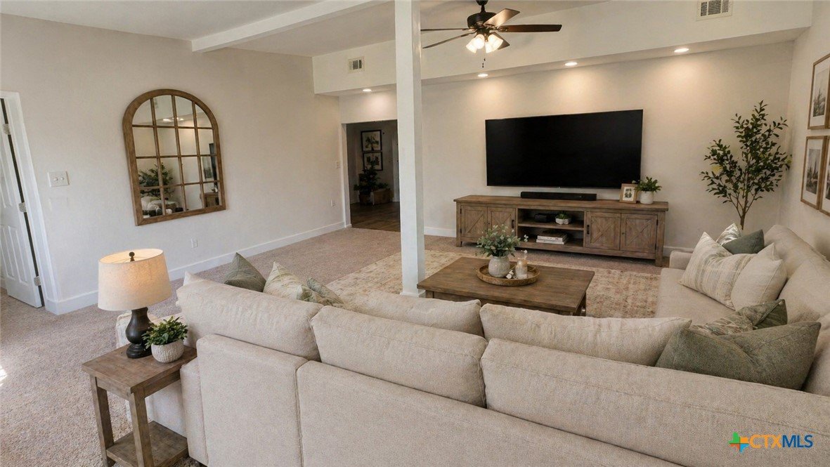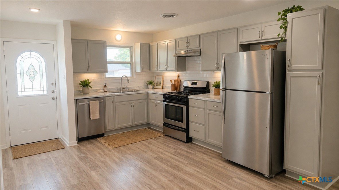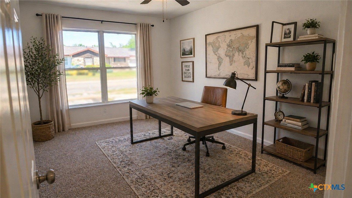 Recently remodeled 4-bedroom, 2.5-bath home offering over 2,200 square feet of living space with a dedicated office and a spacious, functional layout. The updated kitchen features brand-new cabinetry, new sink, vent hood, dishwasher, laminate granite-look countertops, and a refrigerator that conveys with the home. New laminate flooring runs throughout the kitchen, hallway, laundry, and secondary bedrooms, while the oversized living room, office, and primary bedroom feature brand-new carpet for added comfort. Fresh interior and exterior paint, a new roof, and brand-new siding on three sides give the home an updated feel and added exterior appeal. Large windows provide abundant natural light throughout, and the spacious living room offers plenty of room to gather and entertain. The oversized primary suite includes a private bath with separate tub and shower, while secondary bathrooms have also been refreshed with updated tile finishes. Most rooms include ceiling fans, and the large backyard provides ample outdoor space for relaxing, entertaining, wood working in the shop, or future customization. With recent updates, generous square footage, and a flexible floor plan, this home offers comfort, function, and opportunity for buyers looking for space and value.
