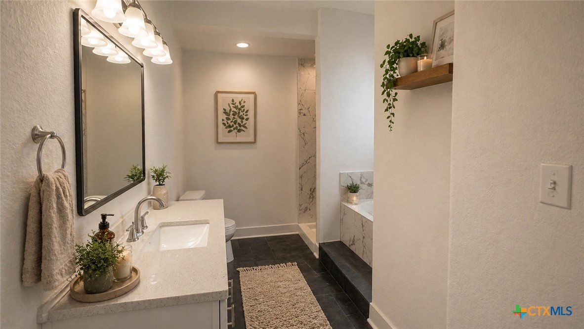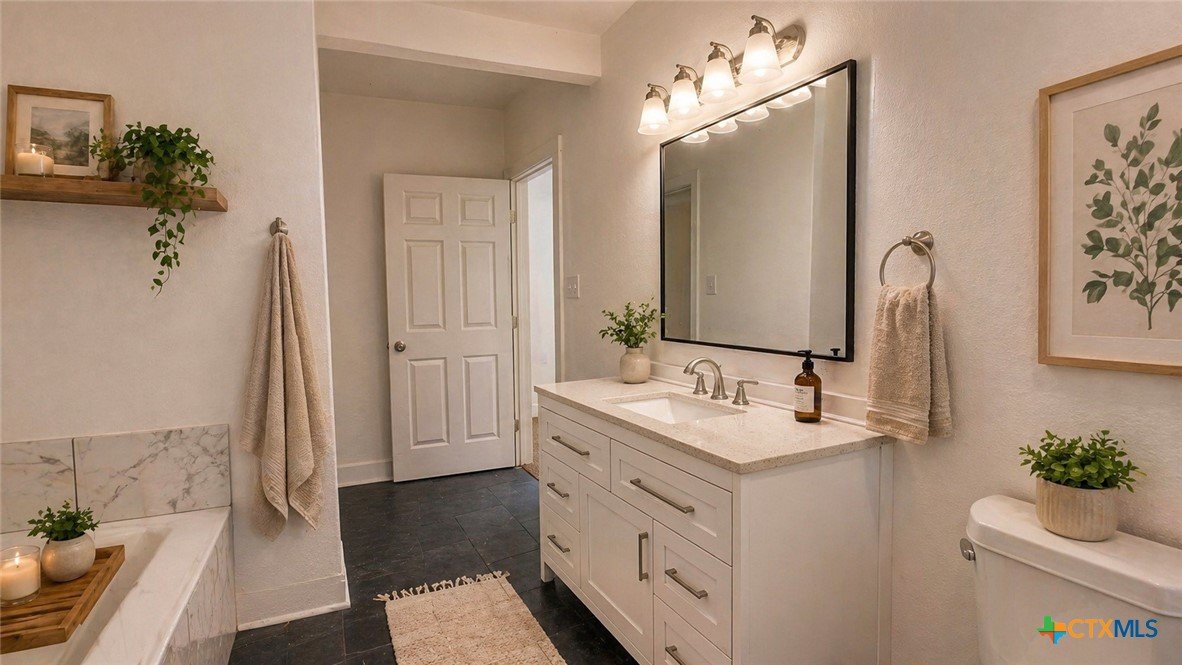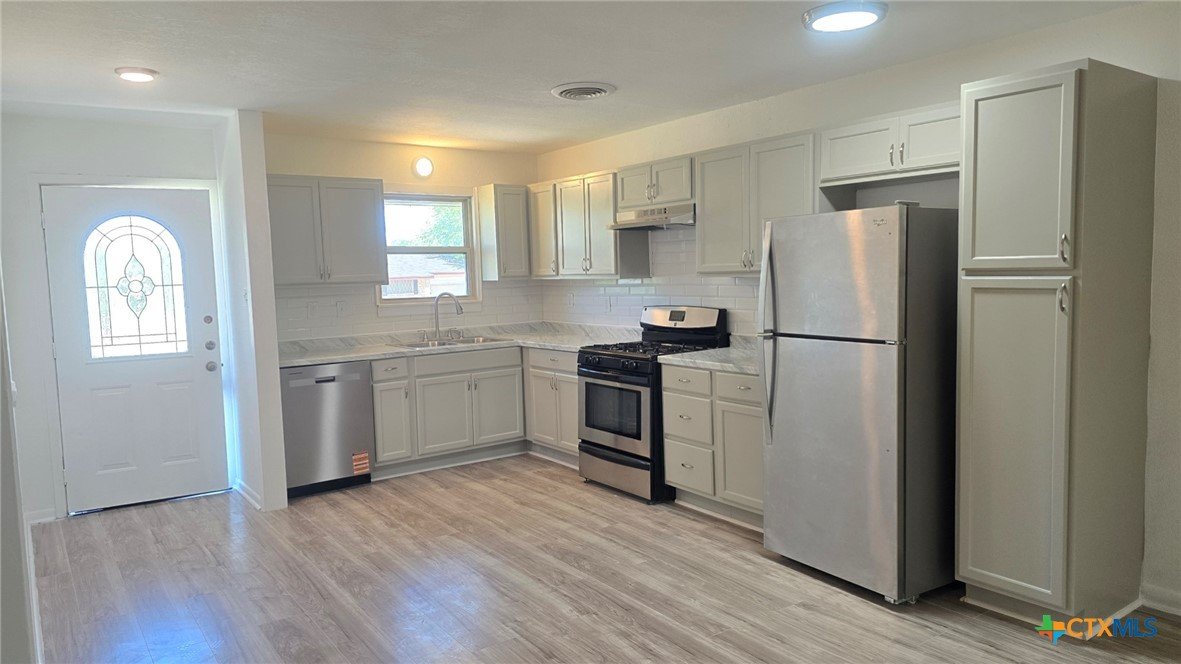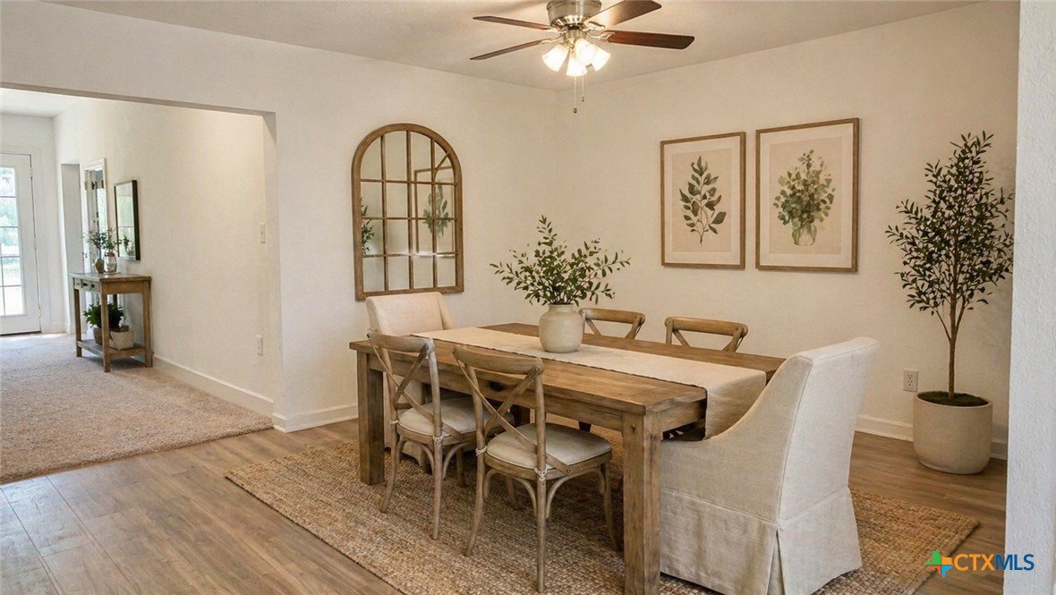 Recently remodeled 4-bedroom, 2.5-bath home offering over 2,200 square feet of living space with a dedicated office and a spacious, functional layout. The updated kitchen features brand-new cabinetry, new sink, vent hood, dishwasher, laminate granite-look countertops, and a refrigerator that conveys with the home. New laminate flooring runs throughout the kitchen, hallway, laundry, and secondary bedrooms, while the oversized living room, office, and primary bedroom feature brand-new carpet for added comfort. Fresh interior and exterior paint, a new roof, and brand-new siding on three sides give the home an updated feel and added exterior appeal. Large windows provide abundant natural light throughout, and the spacious living room offers plenty of room to gather and entertain. The oversized primary suite includes a private bath with separate tub and shower, while secondary bathrooms have also been refreshed with updated tile finishes. Most rooms include ceiling fans, and the large backyard provides ample outdoor space for relaxing, entertaining, wood working in the shop, or future customization. With recent updates, generous square footage, and a flexible floor plan, this home offers comfort, function, and opportunity for buyers looking for space and value.