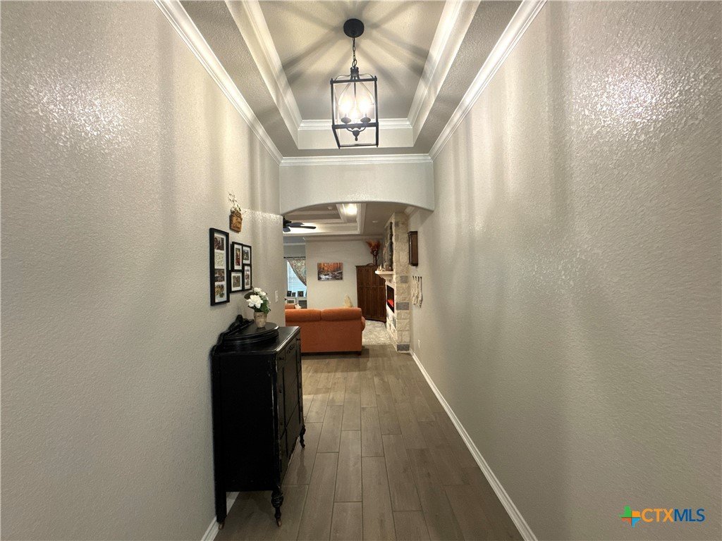 Stunning 4 bedroom, 3 bath with a spacious 3 car garage. Perfectly situated on an established cul-de-sac. Immaculatley maintained and less than three years old. This property blends modern comfort with thoughtful design. Interior features include all electric kitchen with quartz countertops, a large island and a breakfast bar with seating. The split bedroom layout is a great feature. All bedrooms have ceiling fans. The cozy great room opens seamlessly to the kitchen and dining area creating an inviting space. Other features include tray ceilings, crown molding, wood look ceramic tile throughout the house, ceiling fans, soft close cabinets and an automatic sprinkler system, water softener and gutters around the entire house. Located close to Salado schools, shopping and much more. The HOA provides a variety of recreational options including pickleball/basketball, and a swimming pool in a beautiful setting.