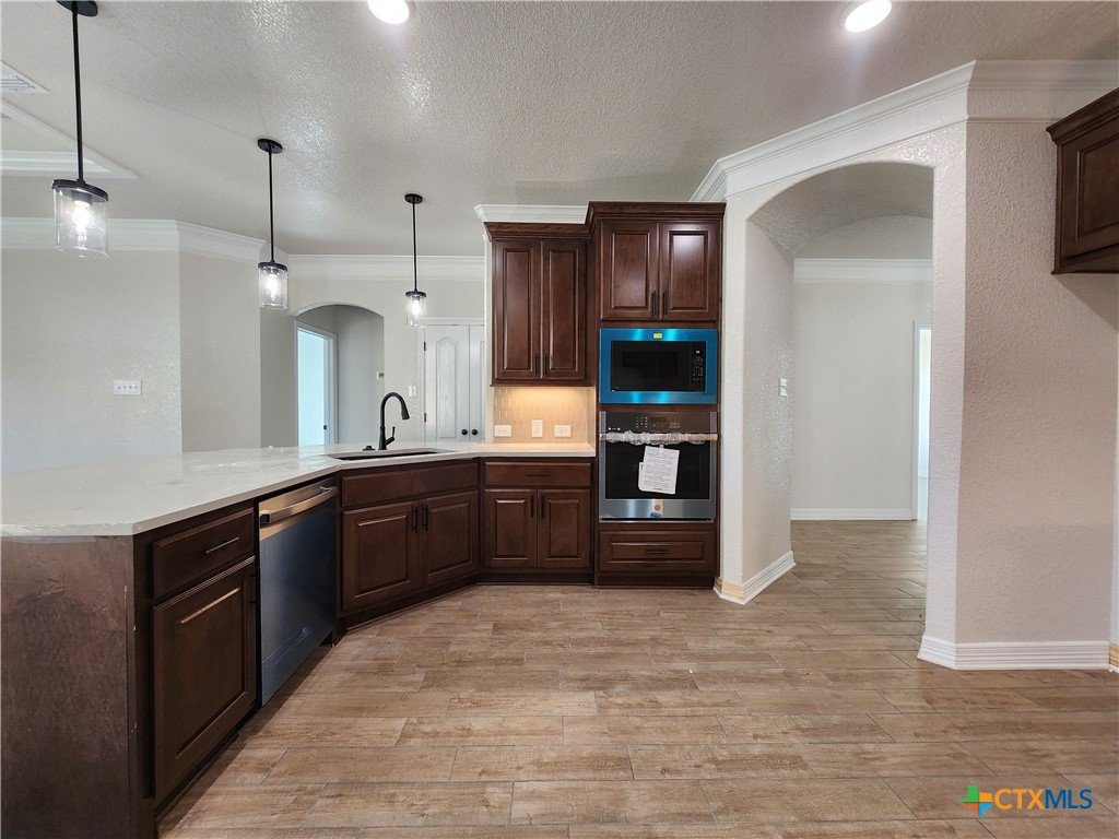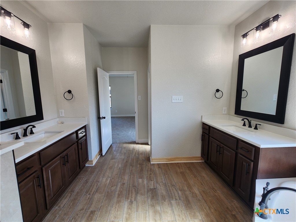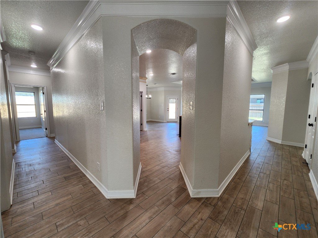 Experience unparalleled living and versatility with the Carothers Homes Rio floorplan. This exceptional home boasts an array of premium features, including a gourmet kitchen featuring a large butler’s pantry, and is equipped with granite countertops and upgraded appliances, including double ovens. The formal dining room is enhanced by elegant French doors, creating an inviting atmosphere for an elevated dining experience, while the oversized living room offers an ideal space for entertaining, featuring a beautiful linear fireplace, adding warmth and charm. The primary bedroom features a luxurious private bath with double vanities, a spacious walk-in shower, a large garden tub, and a generous walk-in closet, creating a true retreat. An in-law suite with an adjacent bath complete with a walk-in shower, makes a wonderful retreat for guests. The additional two bedrooms are designed to provide comfort and relaxation for everyone in your family. Additional features of this home, including a covered patio, privacy fence, front and back sod, and a sprinkler system, are standard with every Carothers Home. Eagle Heights offers a community pool and Pickleball Court, close proximity to schools, shopping, and restaurants, and easy access to I-35.